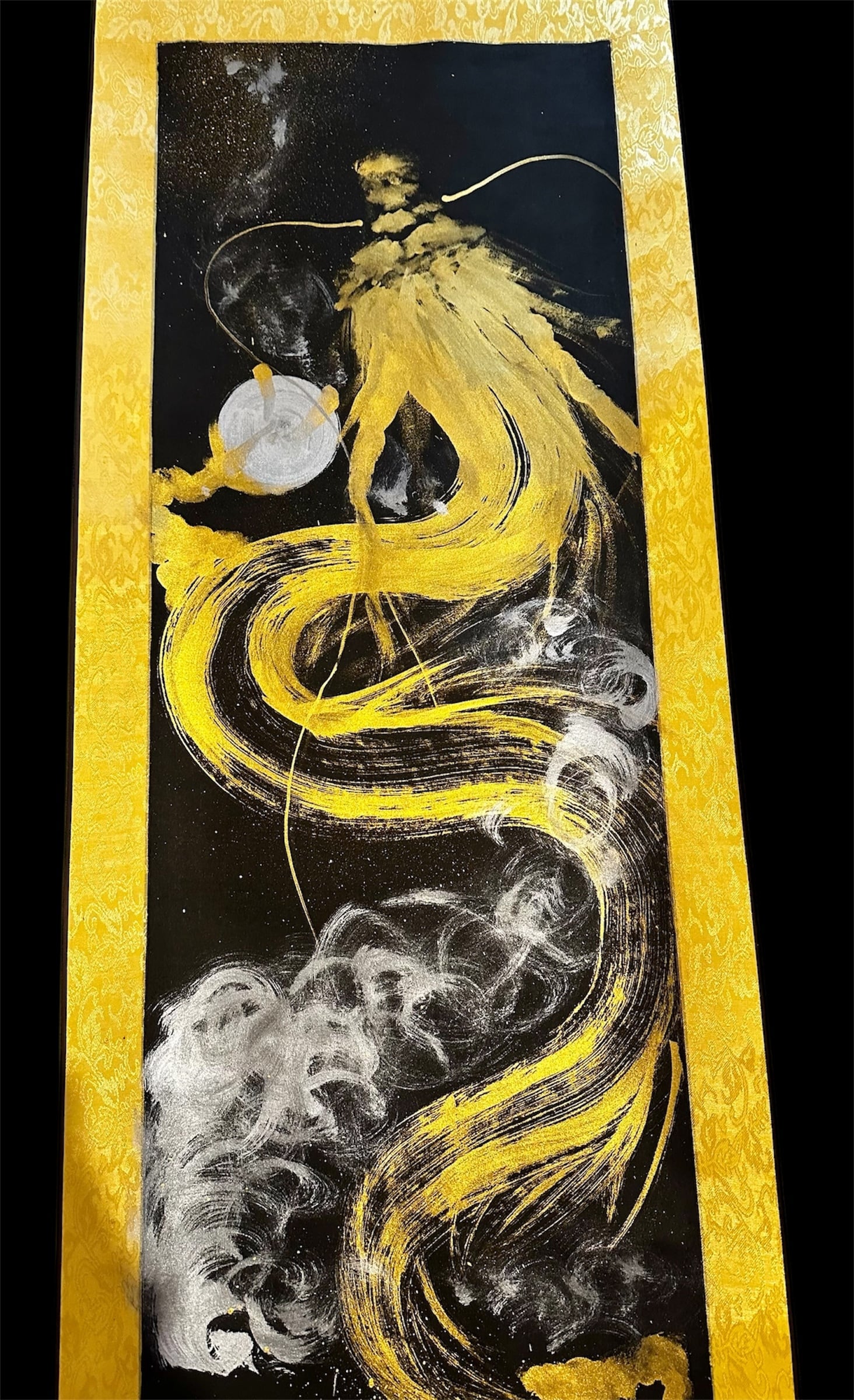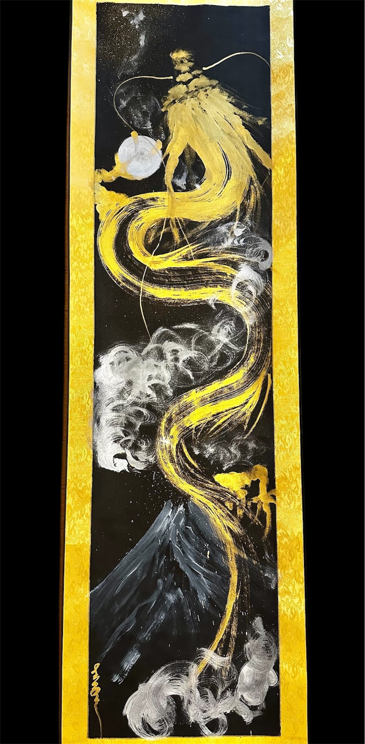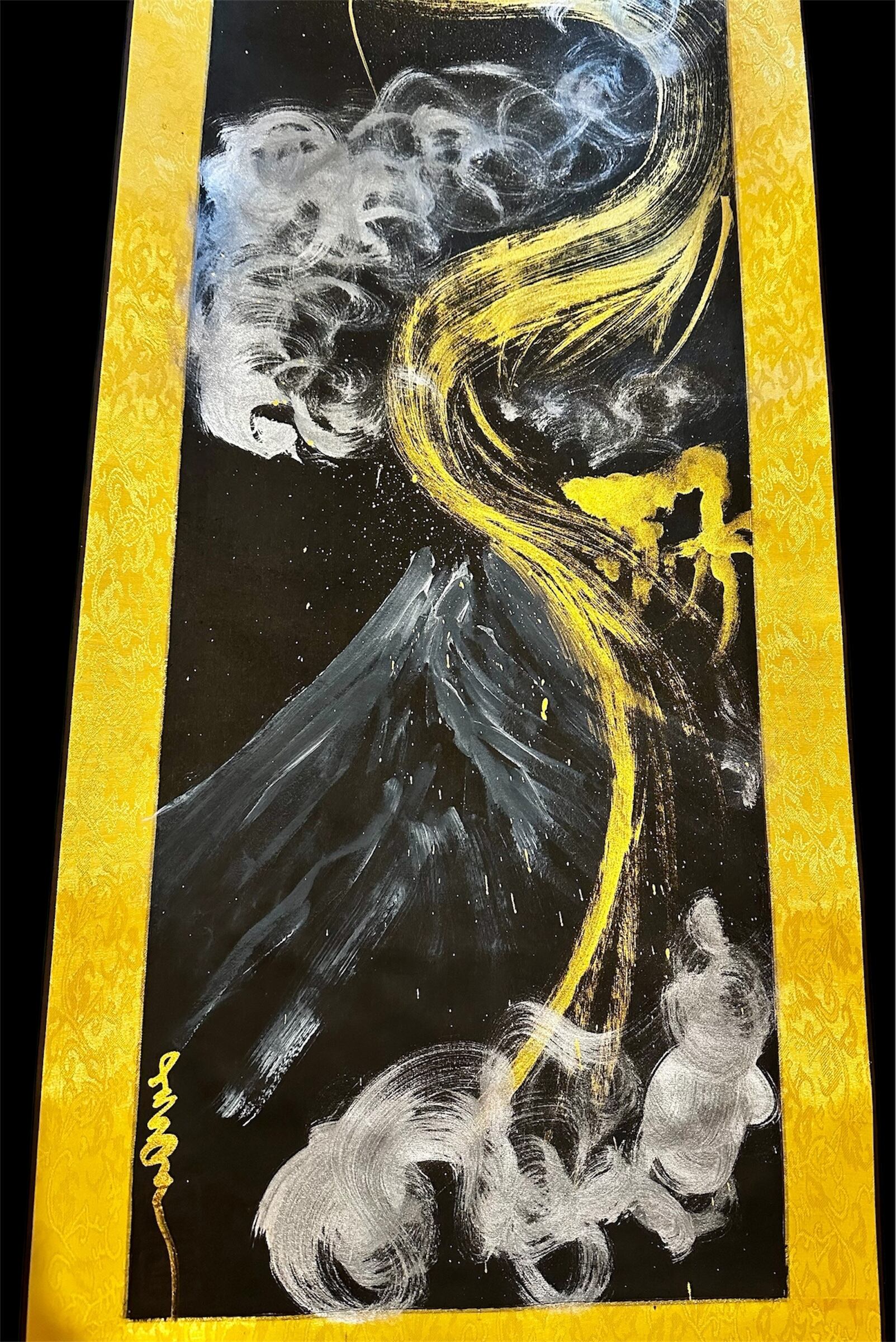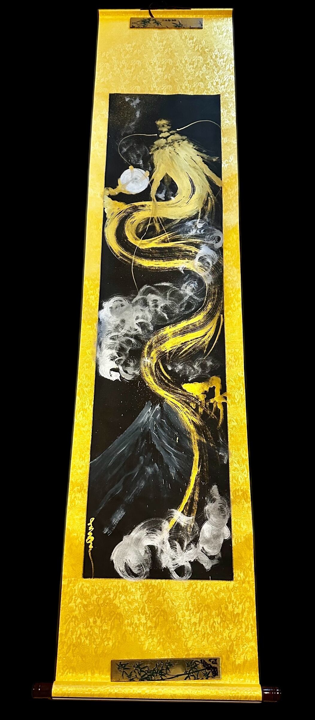 オーストラリアシドニー スペシャル価格ライブペインテイング 金龍と富士山 掛け軸