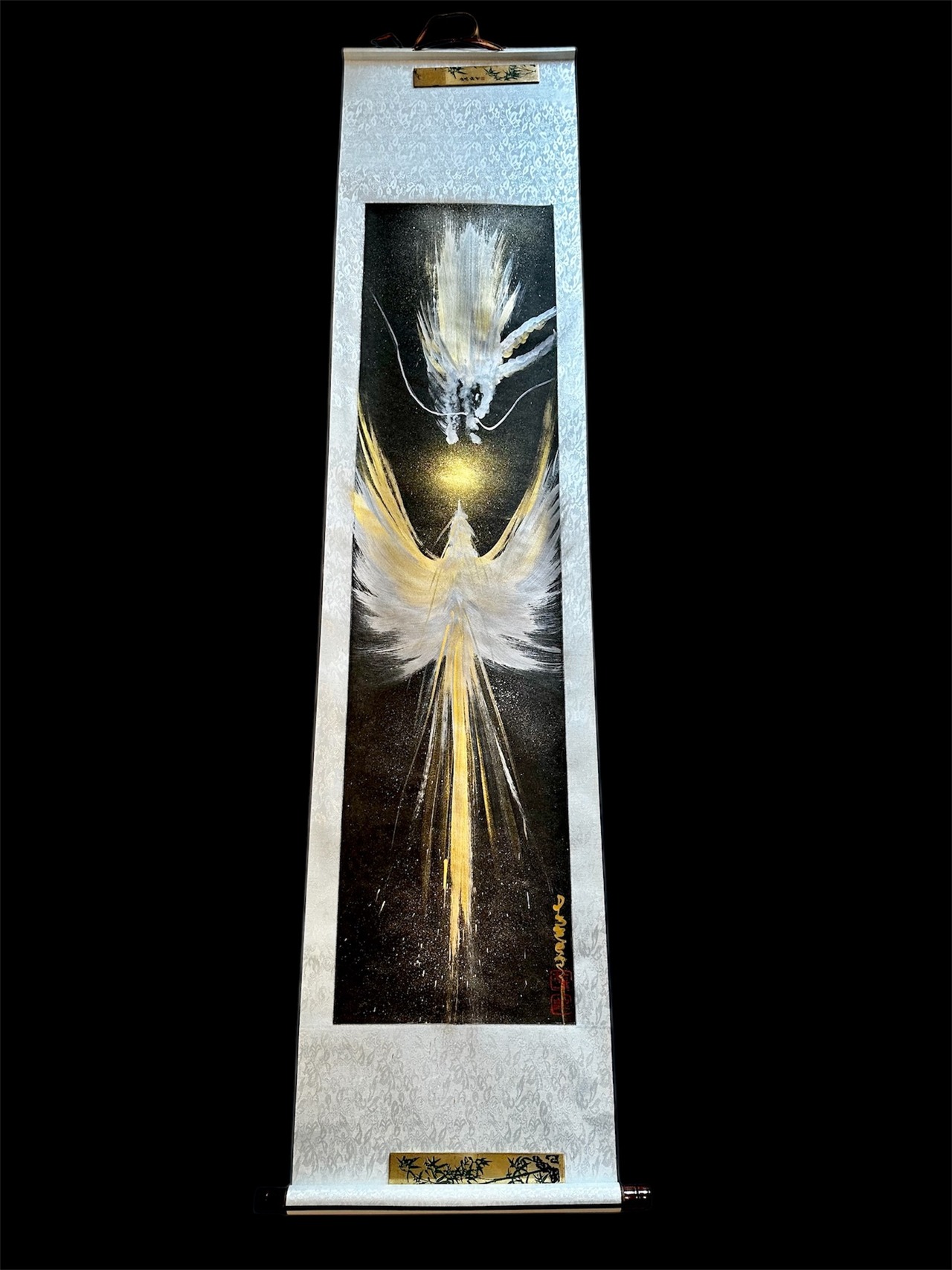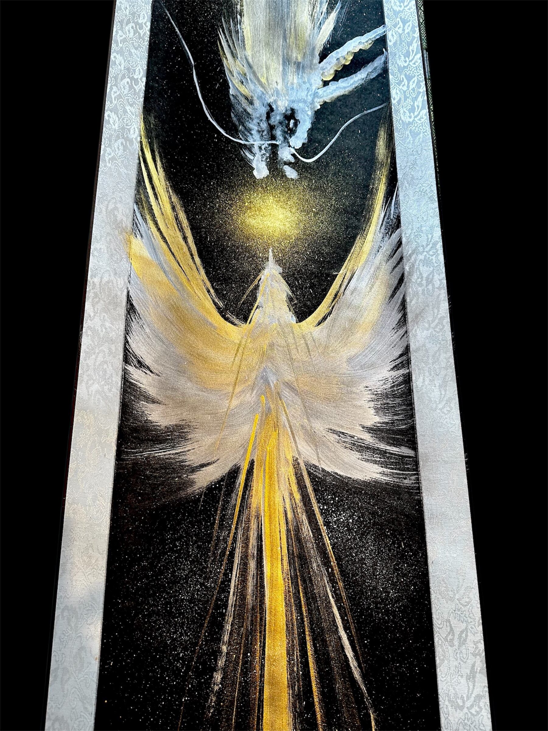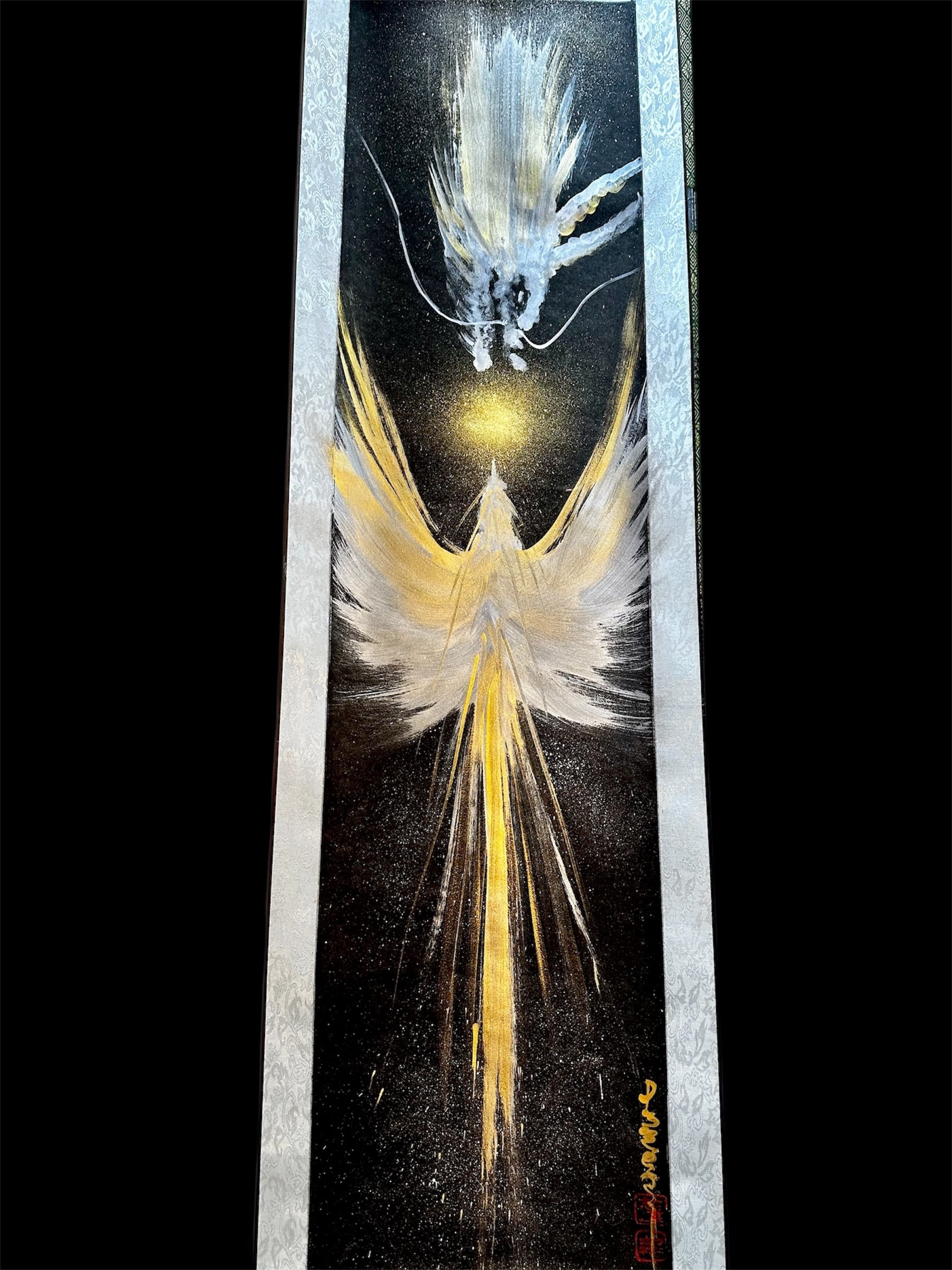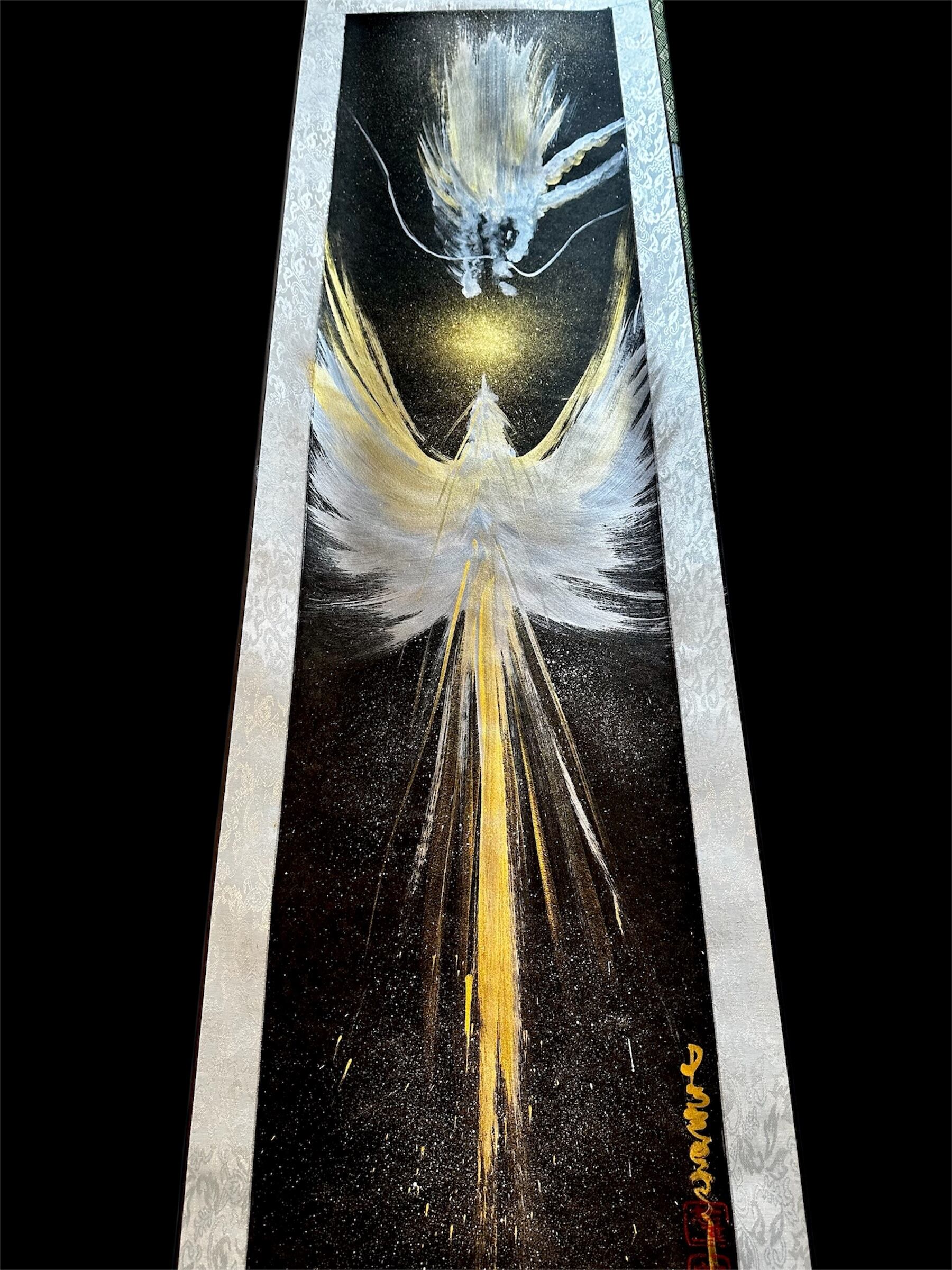 宇宙の龍と鳳凰の出逢い 新潟ライブペインテイング掛け軸