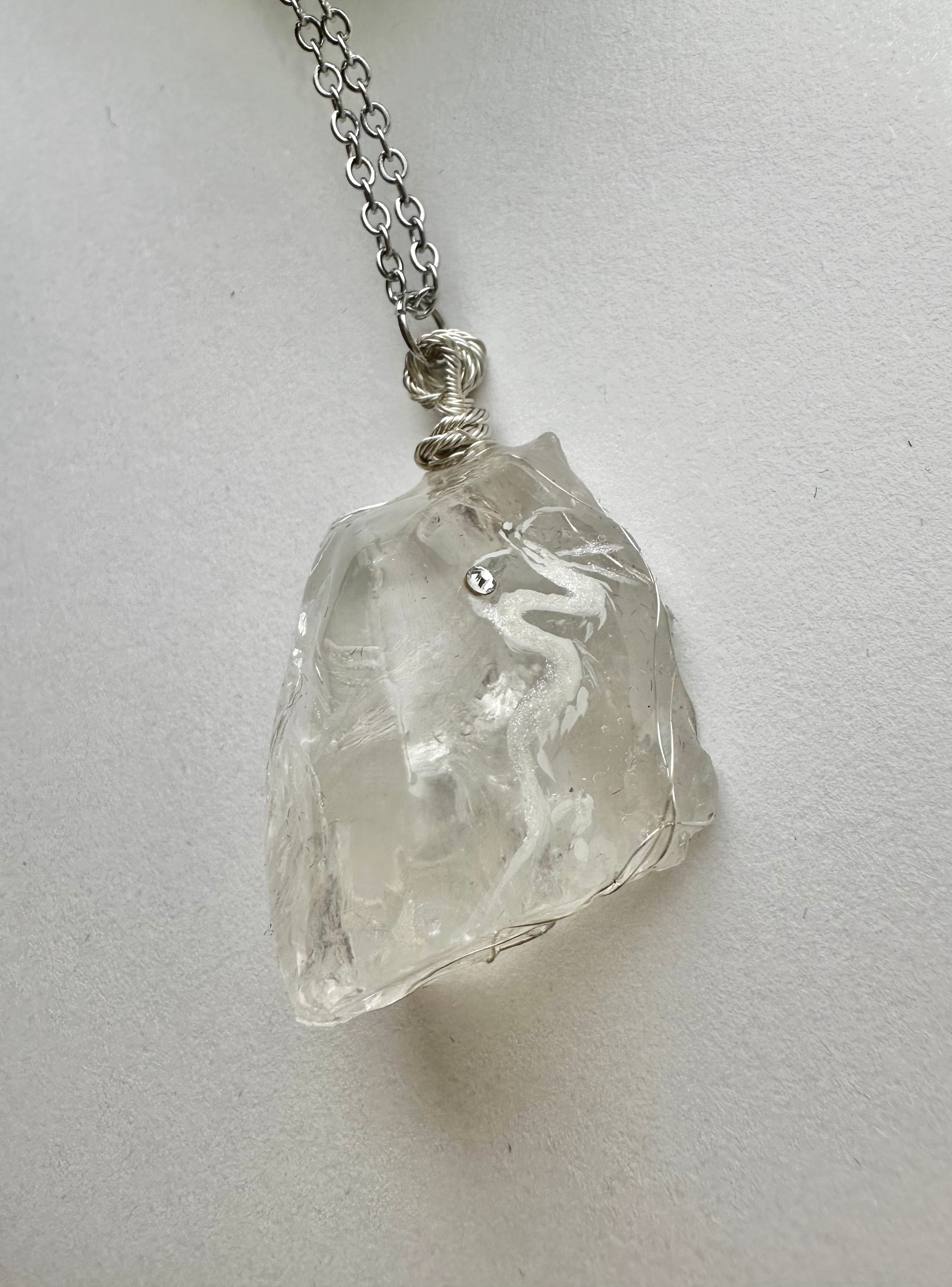 天然石水晶原石 白龍&白鳳凰ネックレス