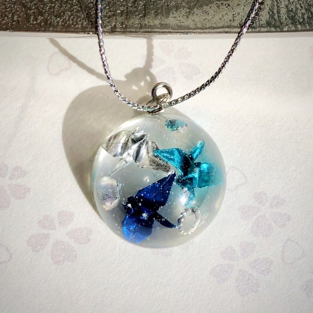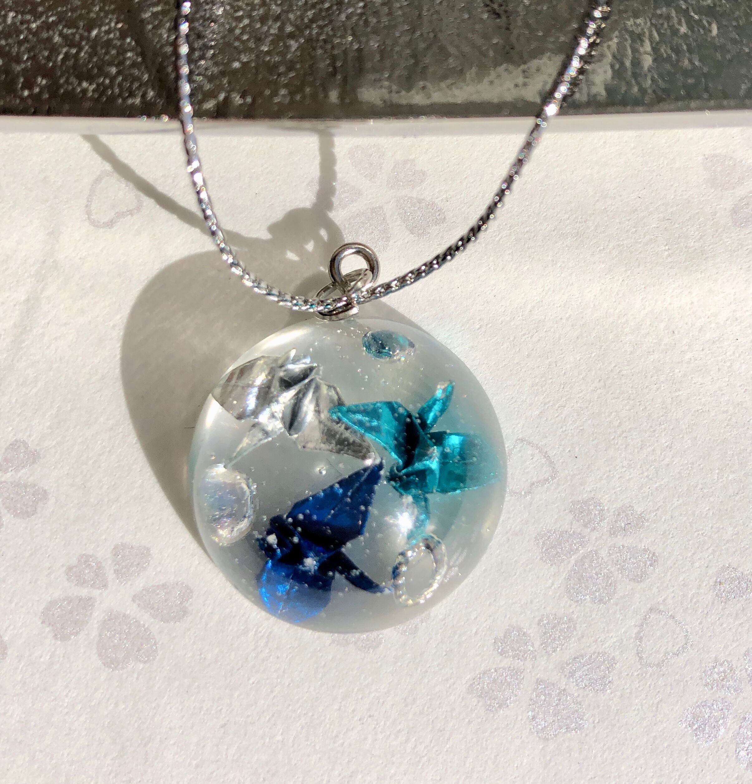 和風クリスタルドームネックレス きらめく折り鶴とシルバースワロフスキーの輝き Japanese style crystal dome Orizuru and Swarovski
