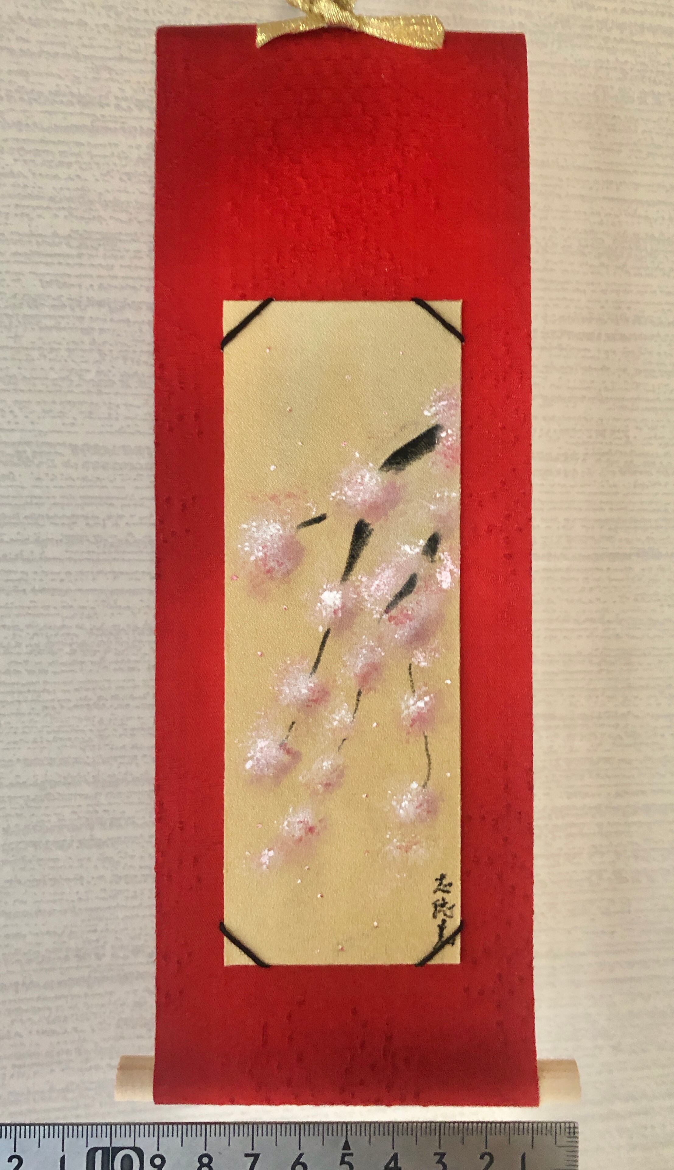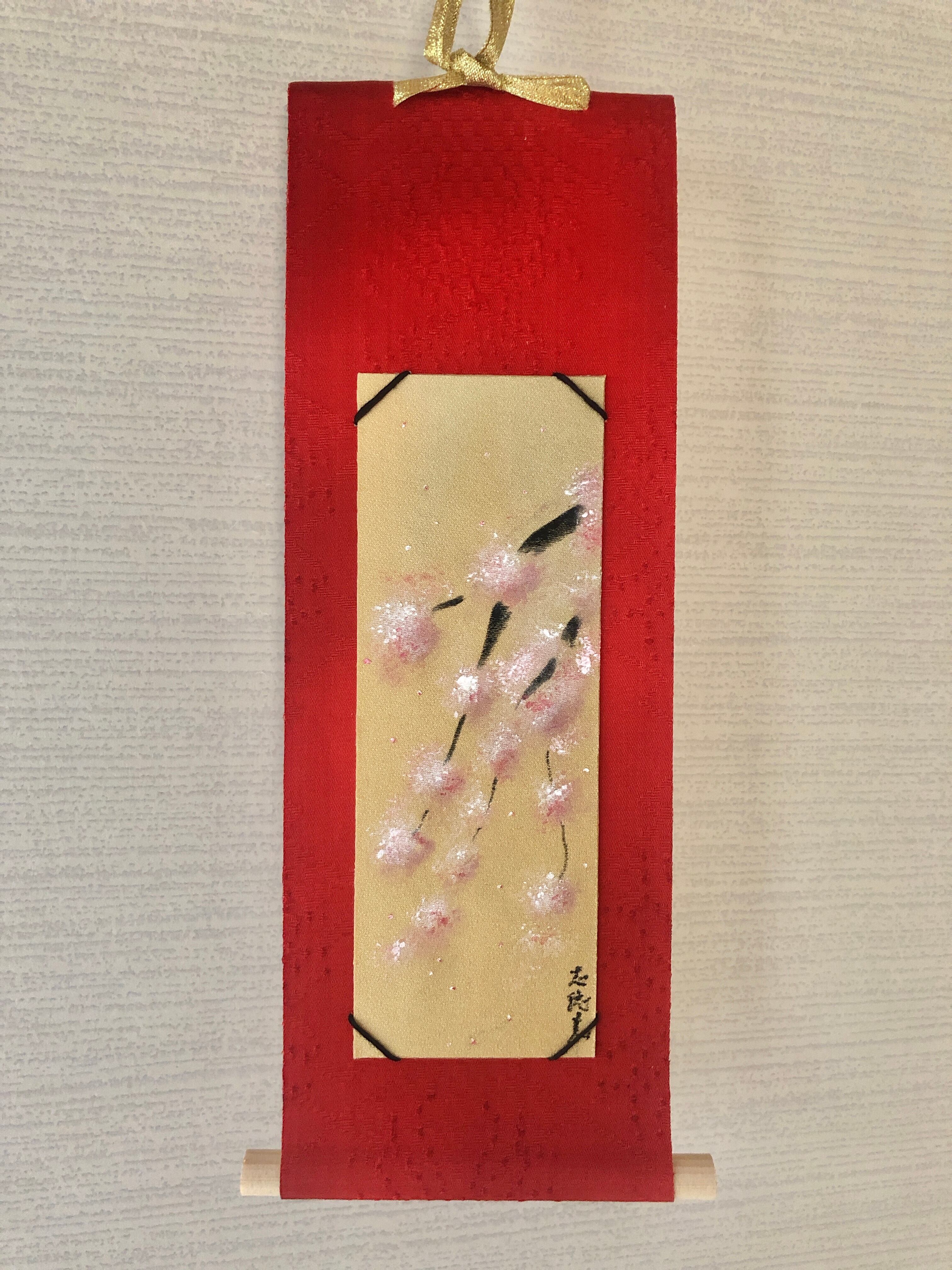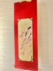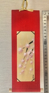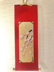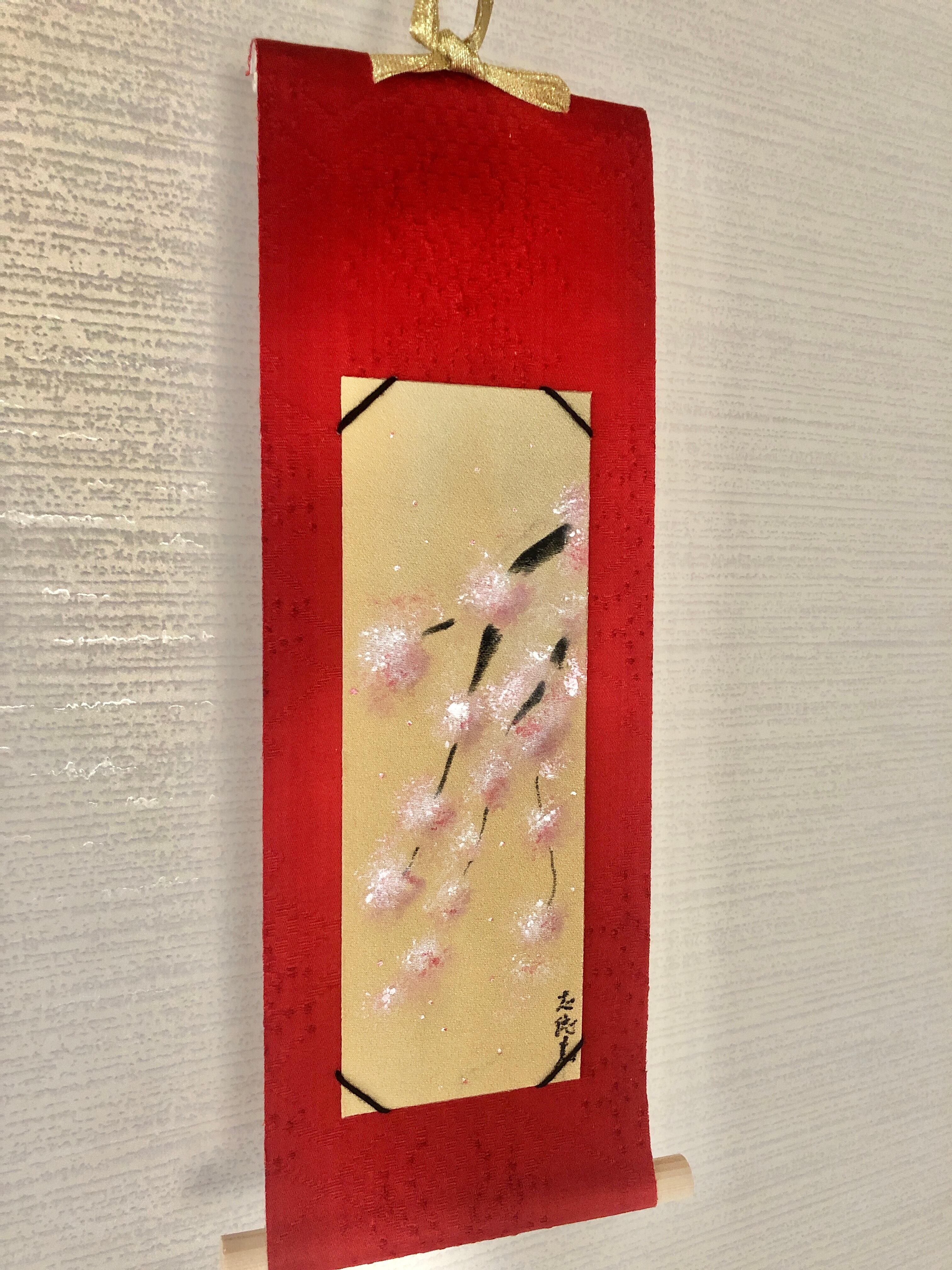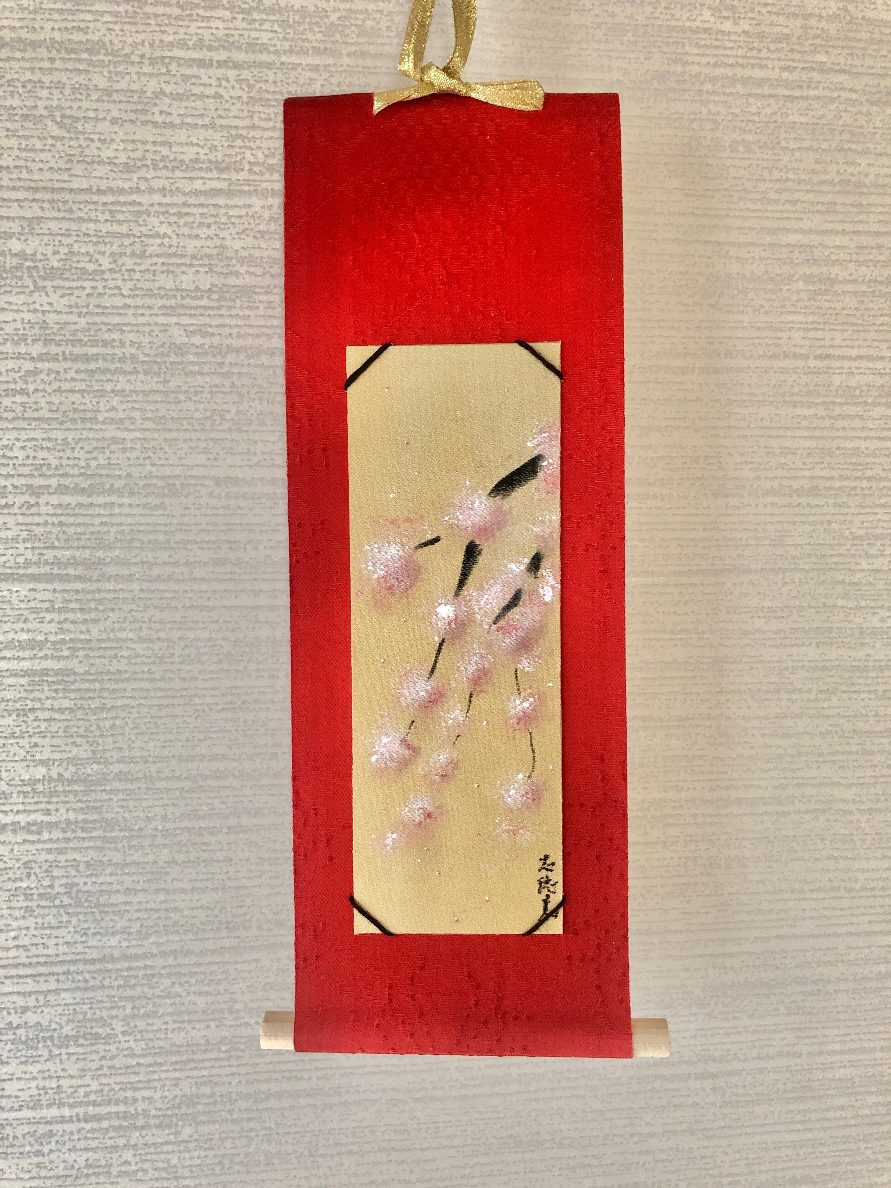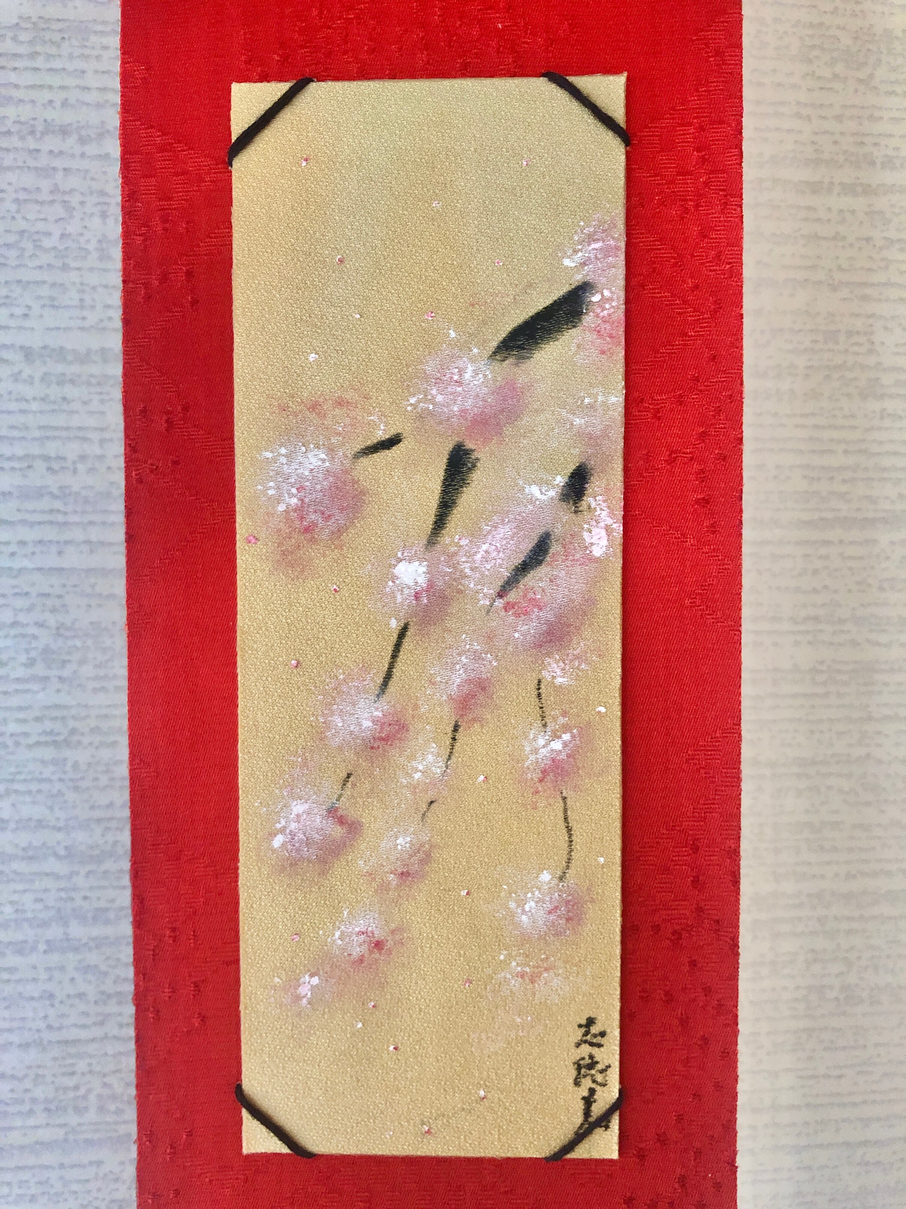 着物の絹の手書きミニ掛け軸〜桜。