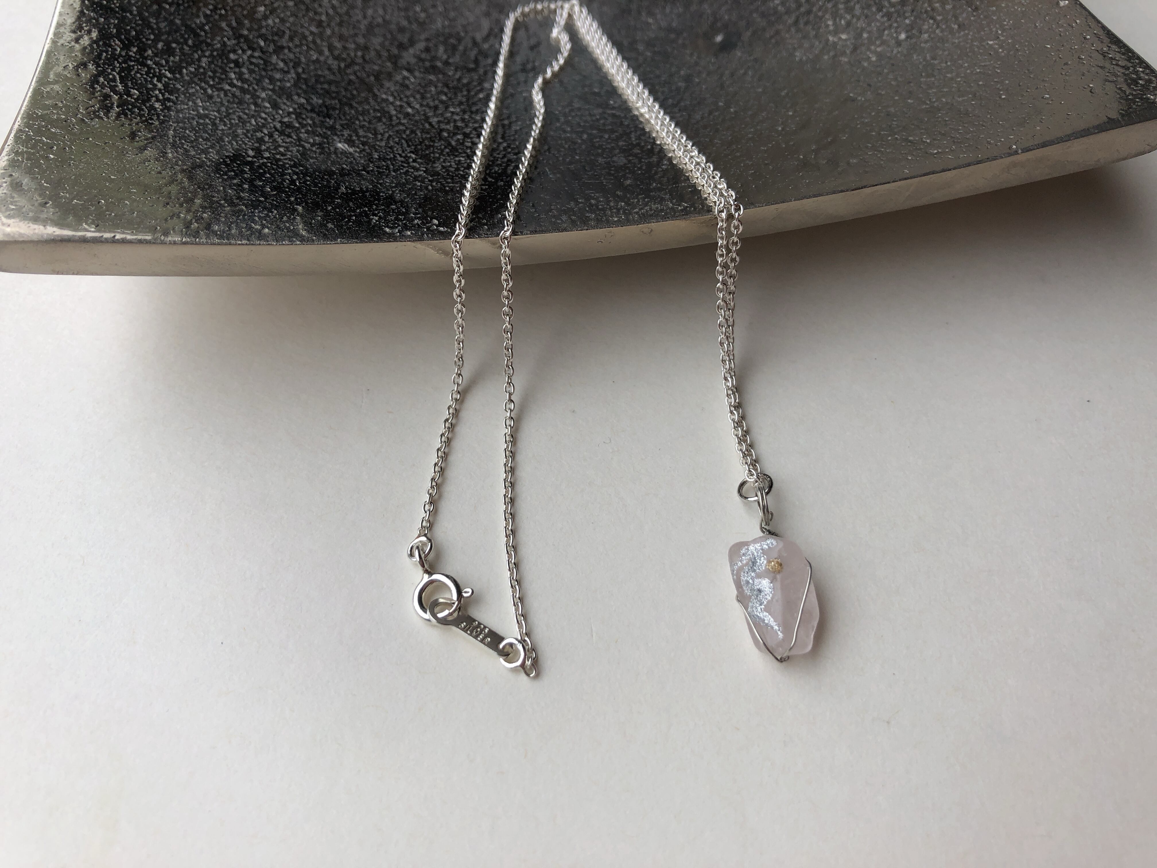 天然石 ローズクォーツ龍神ネックレス SV 925