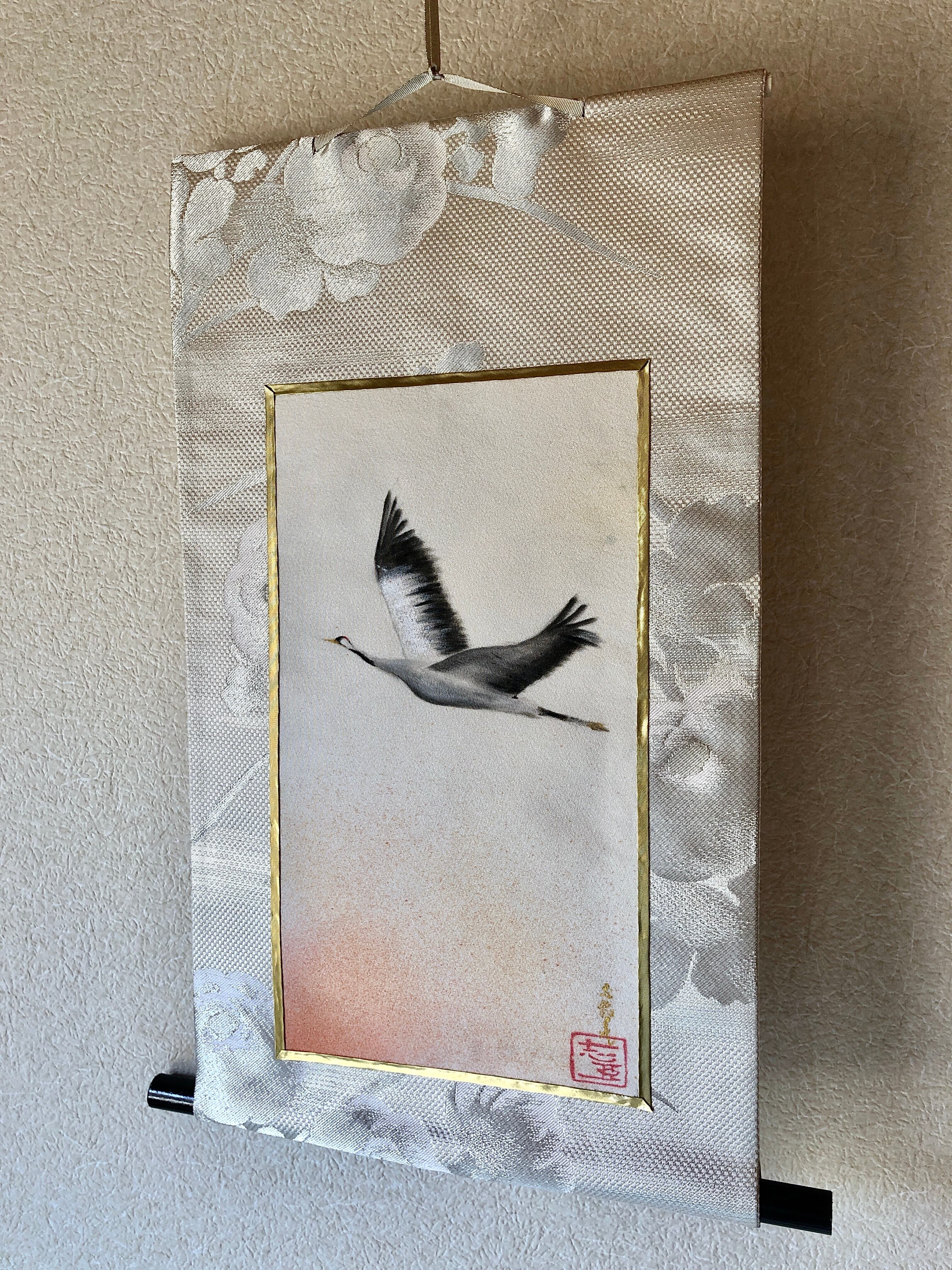 丹頂鶴 絹掛け軸