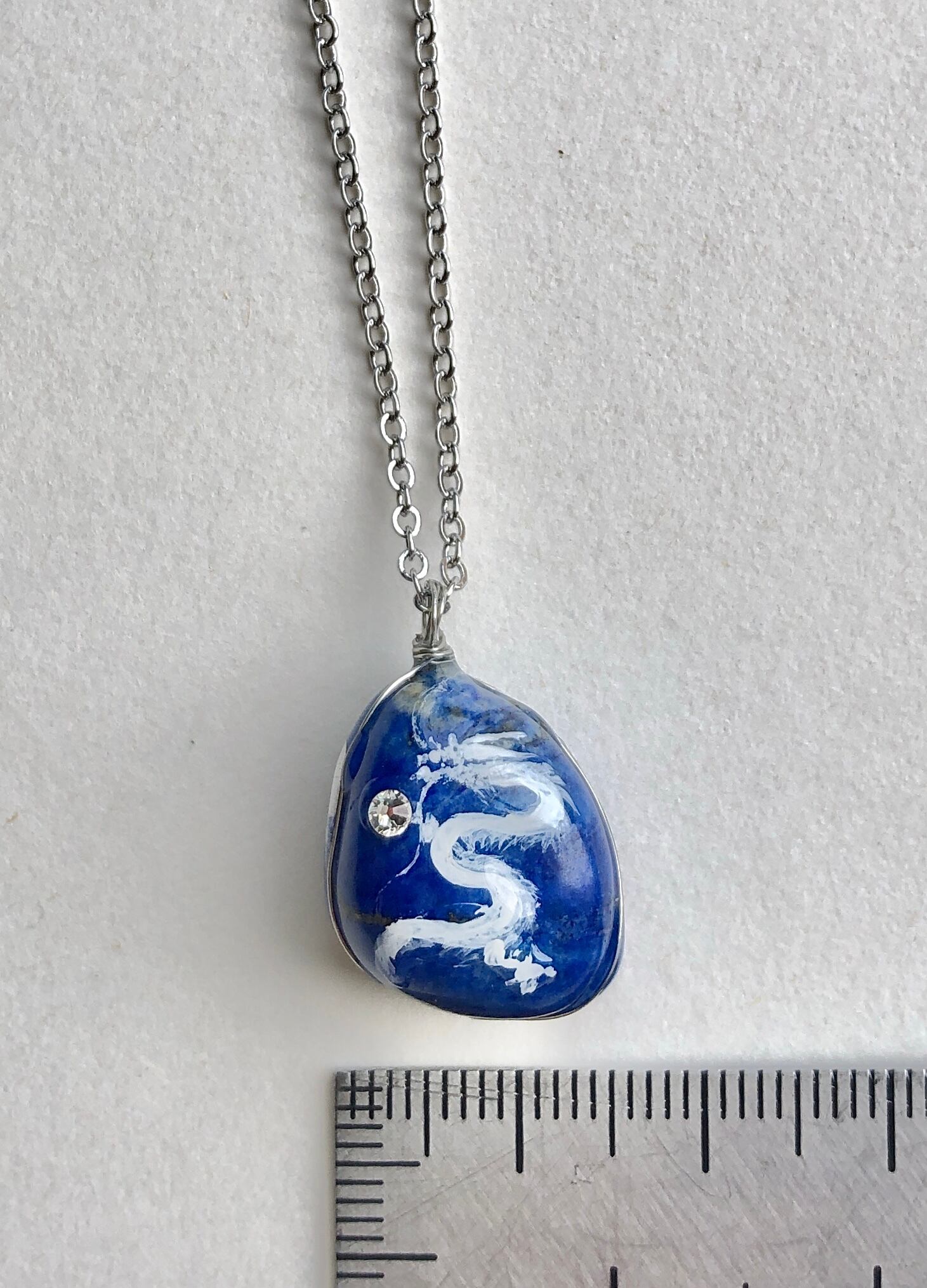 天然石 ラピスラズリ 白龍ネックレス (写真で左向きの龍)。