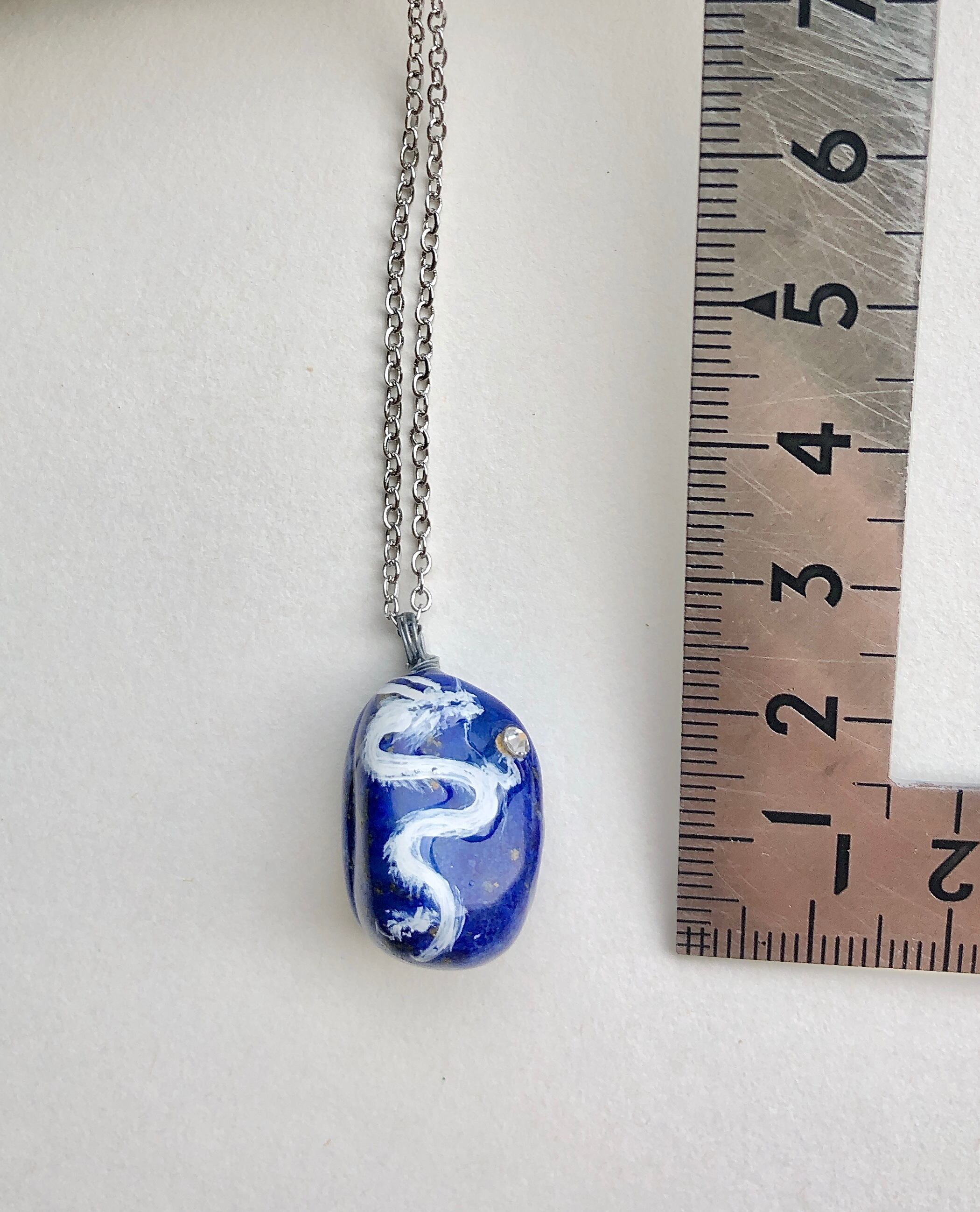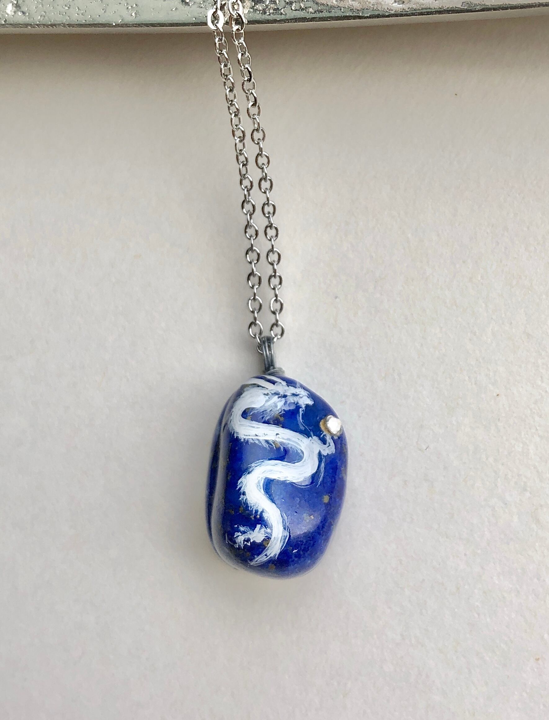 天然石 ラピスラズリ 白龍ネックレス。(写真で右向きの龍)