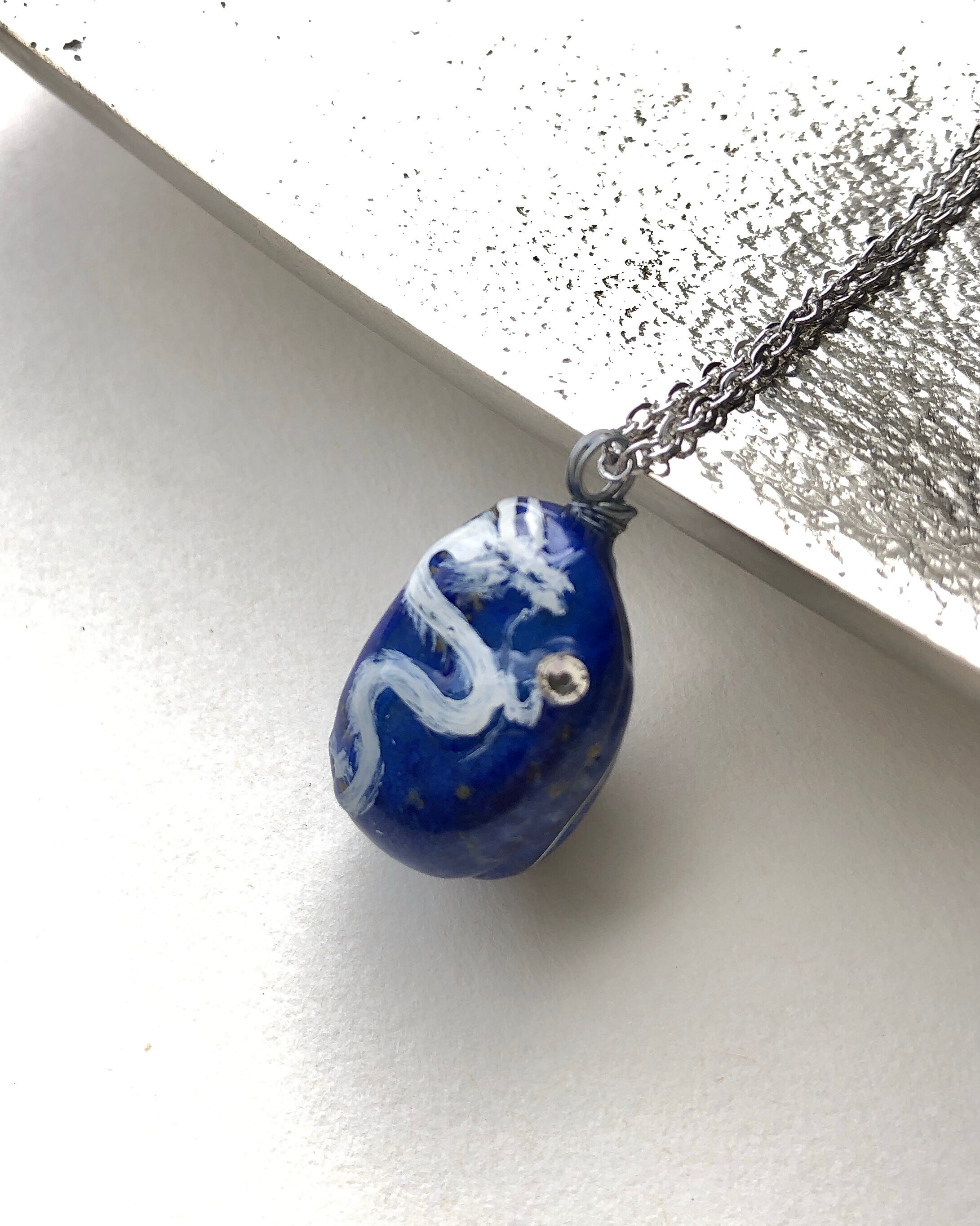 そんな美しいブルーのラピスラズリに描かれた白龍。