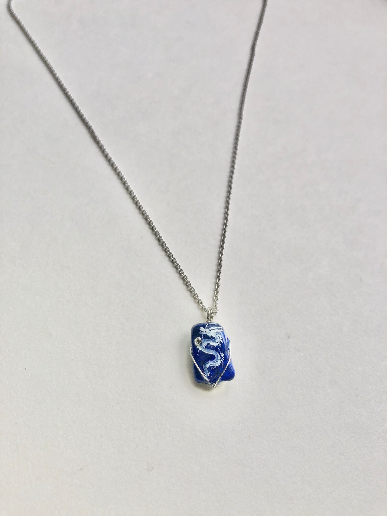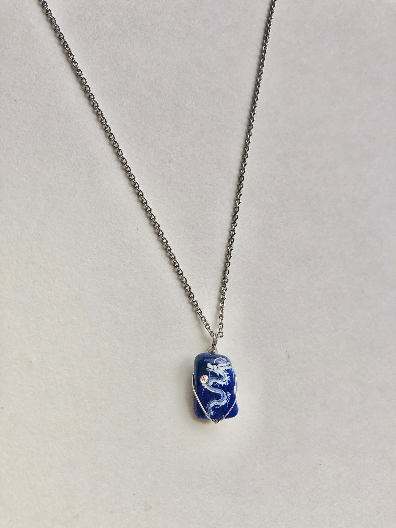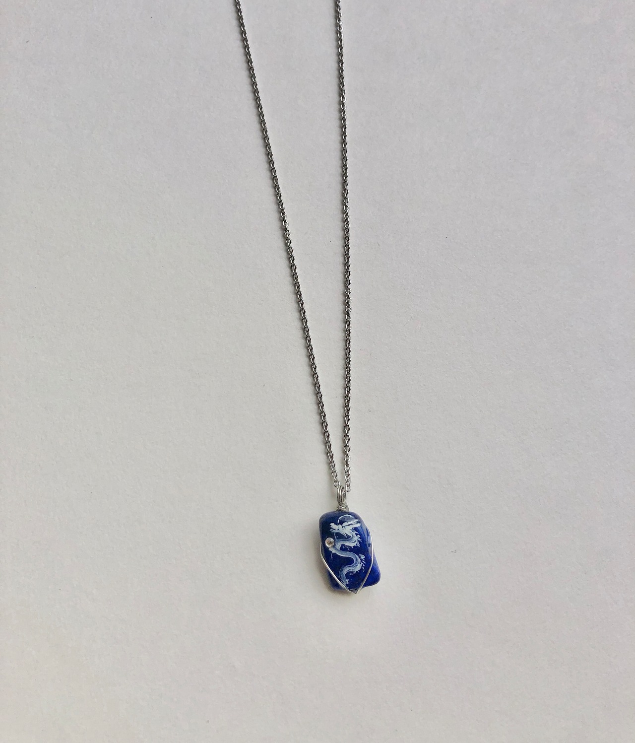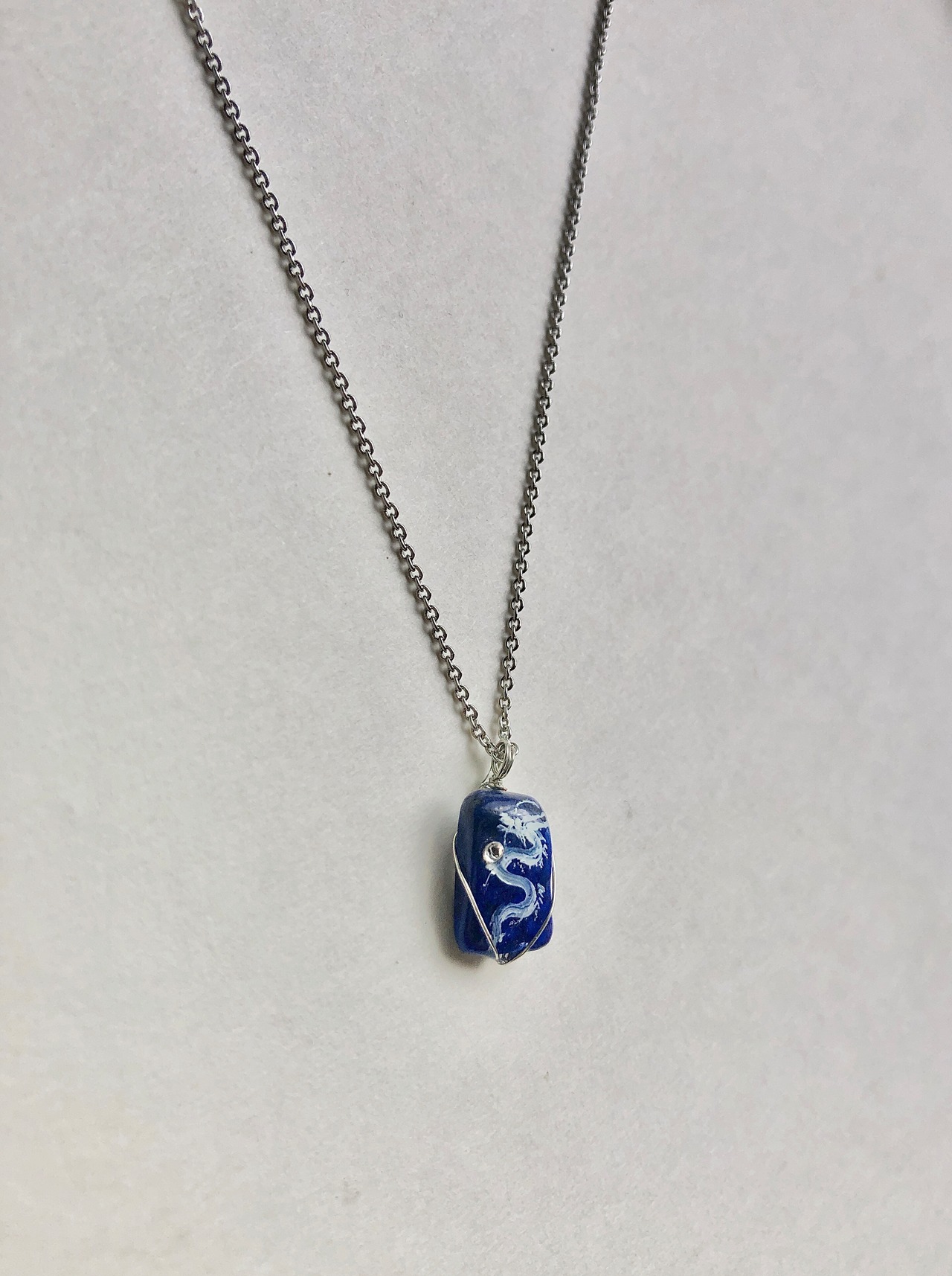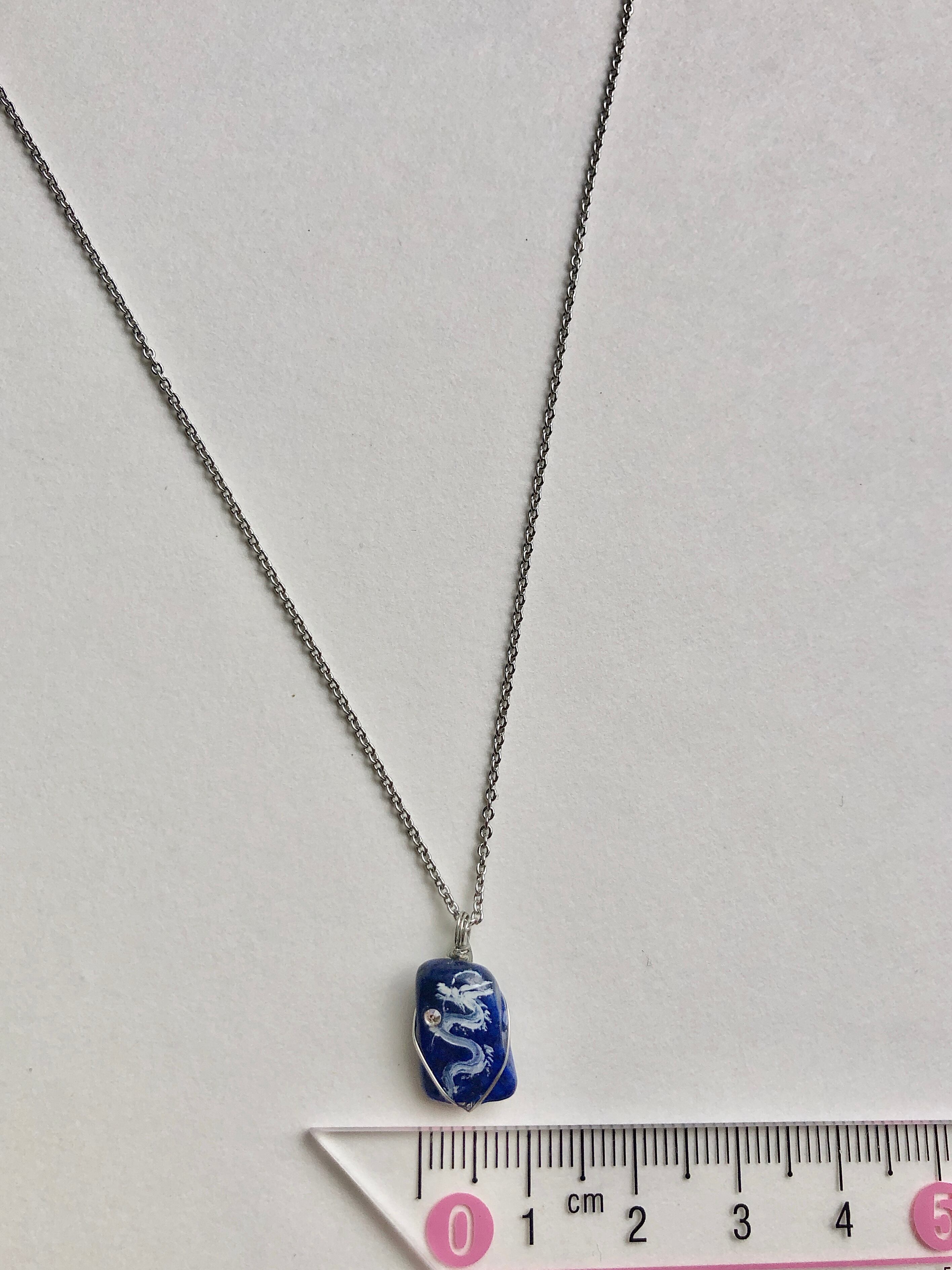 小天然石 ラピスラズリ 白龍ネックレス。