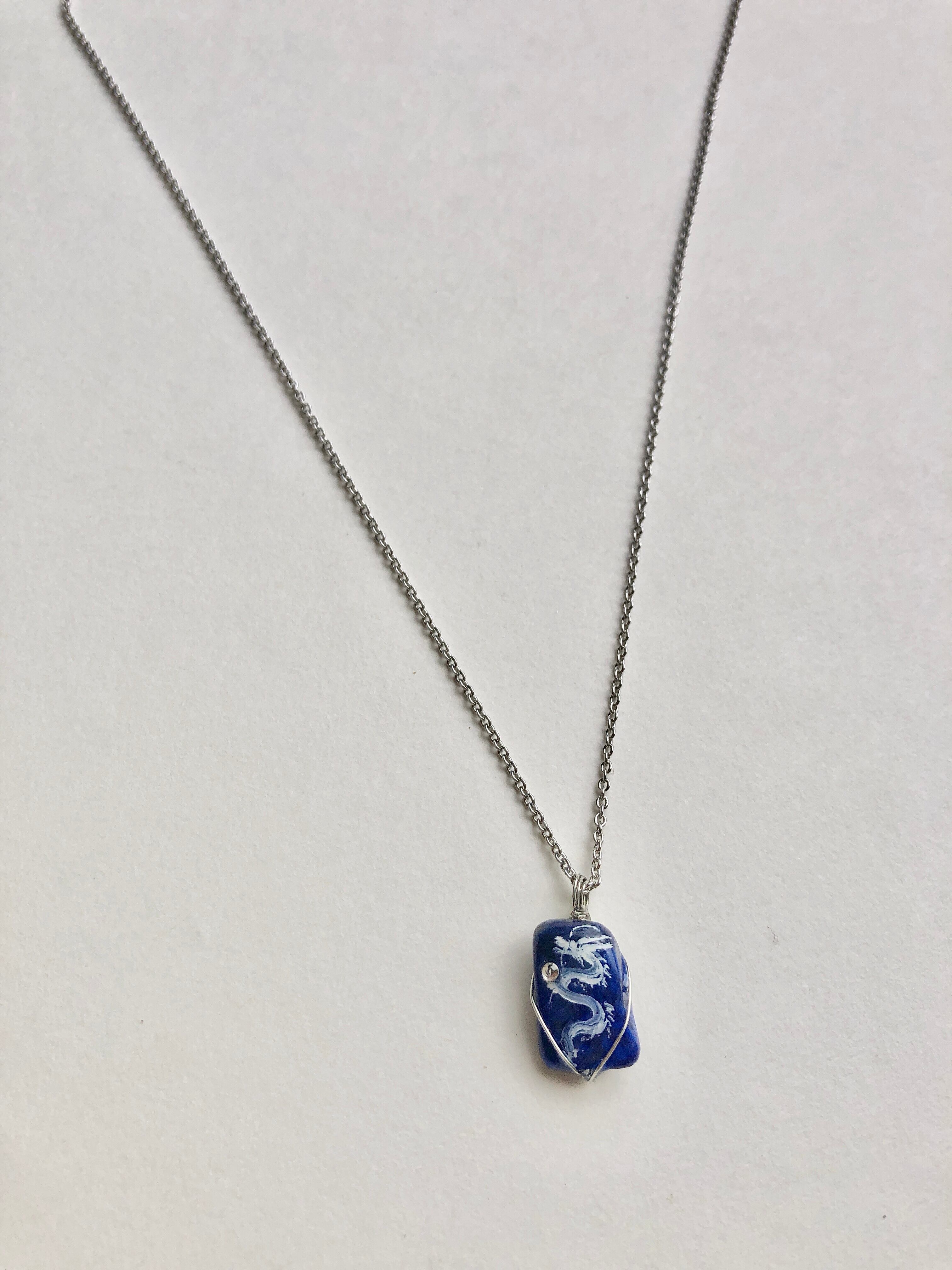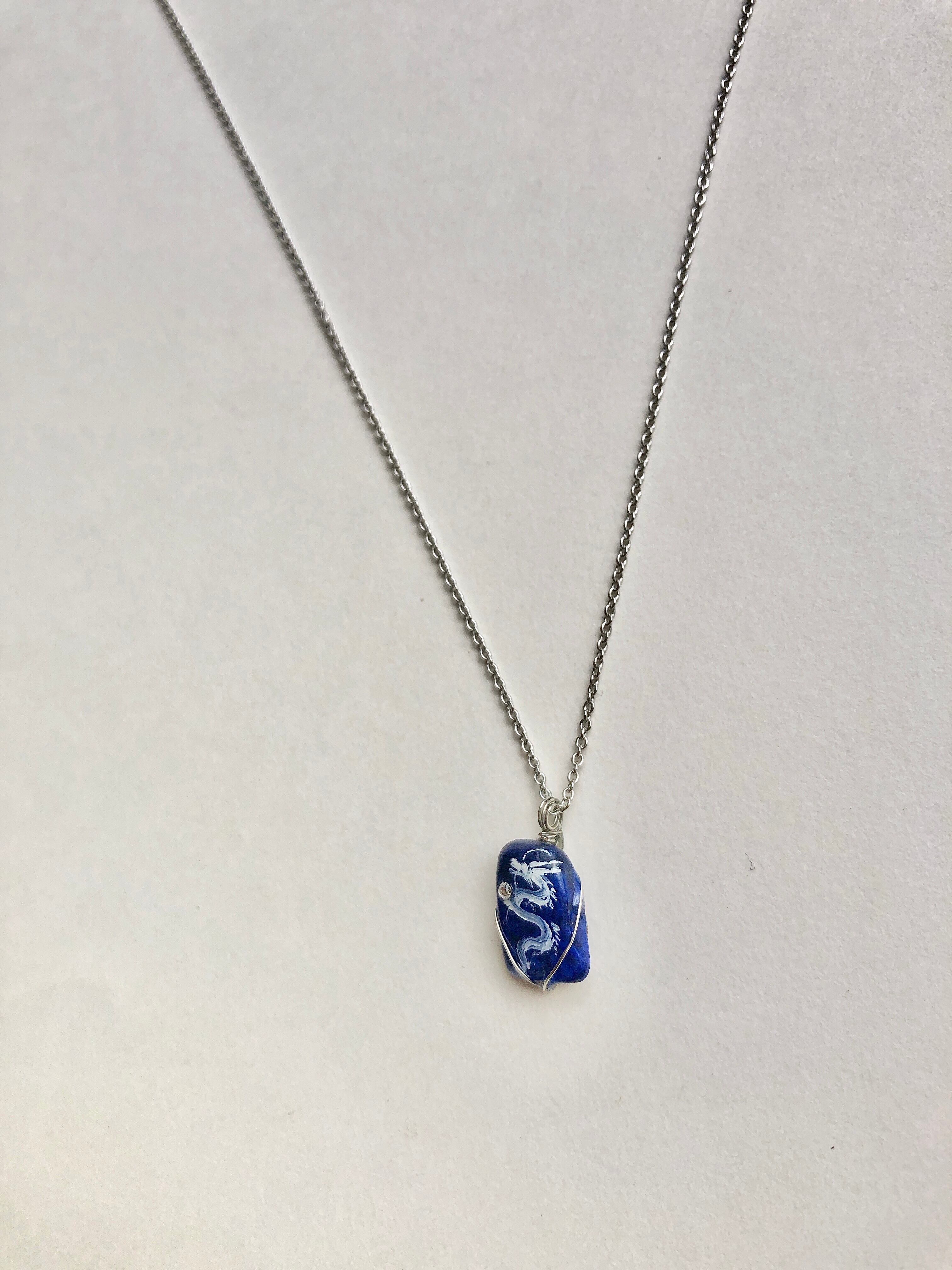 小 ラピスラズリ天然石 白龍ネックレス