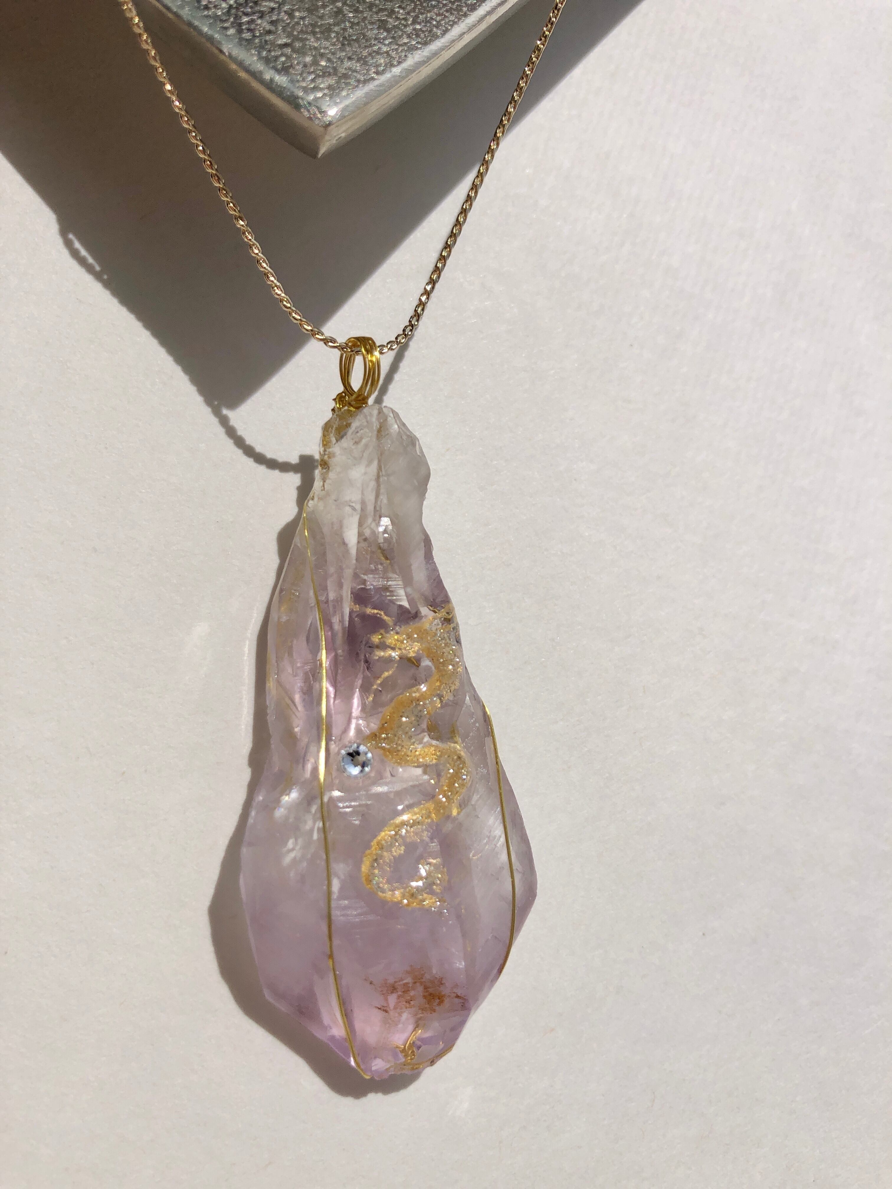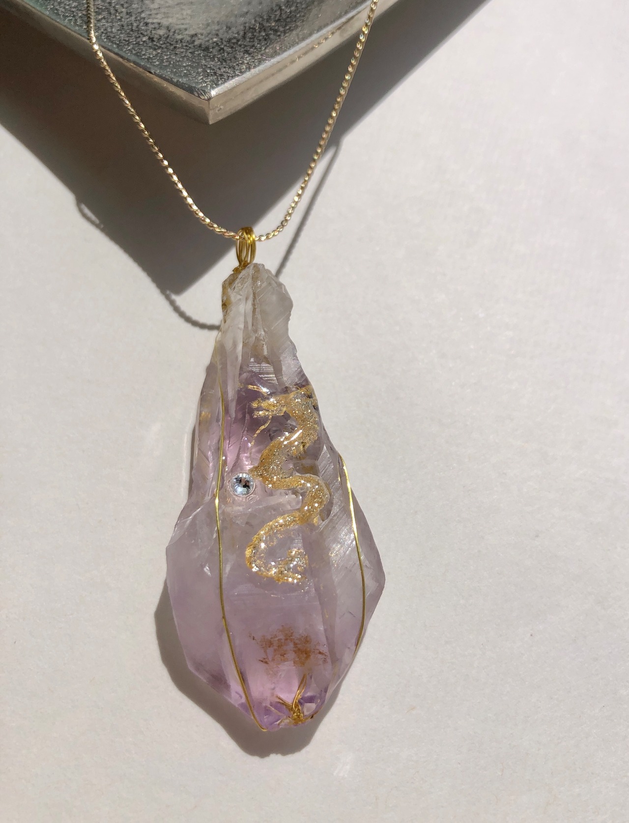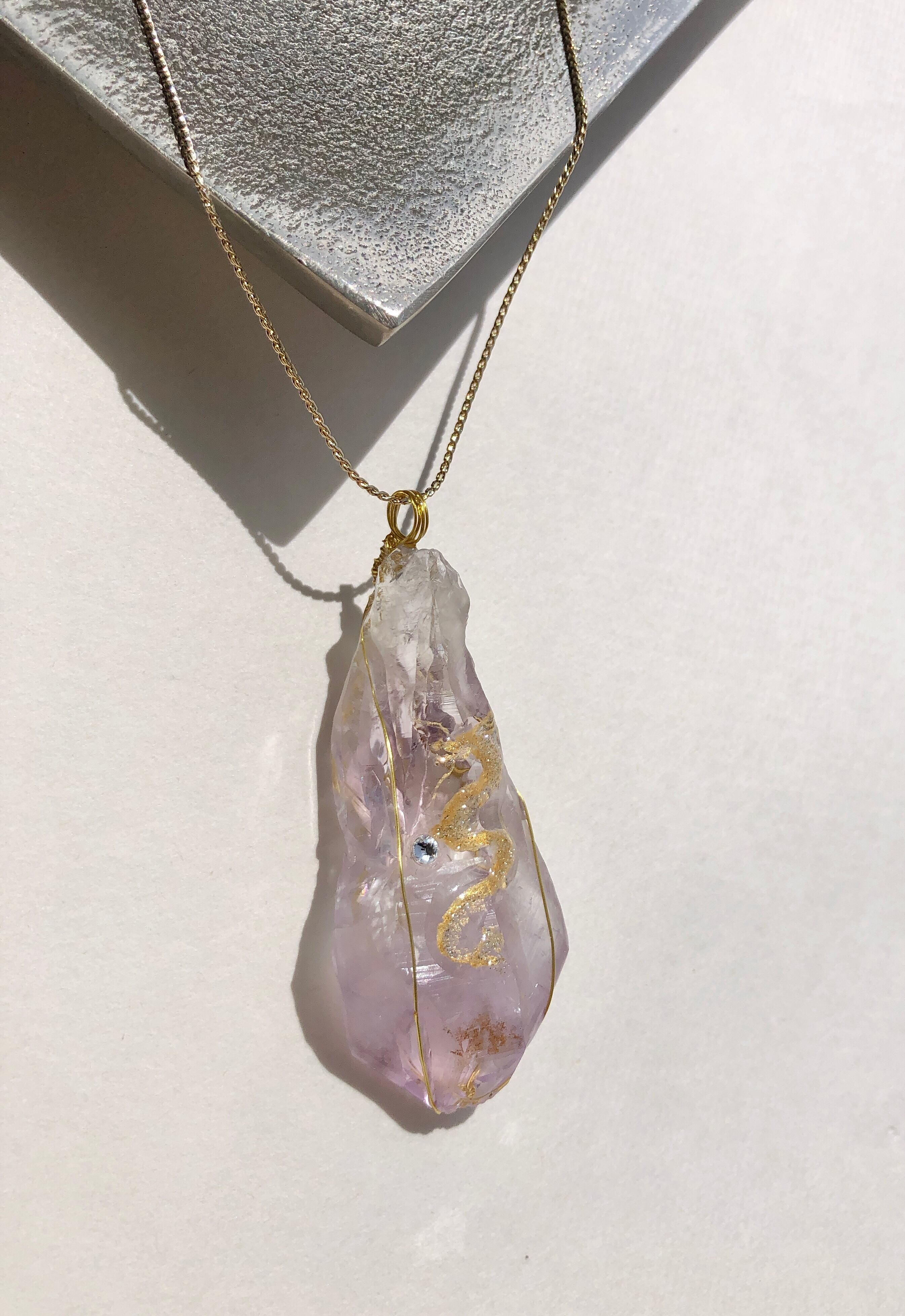 そんなパワフルなアメジストの大きな原石に描かれた金の龍神。