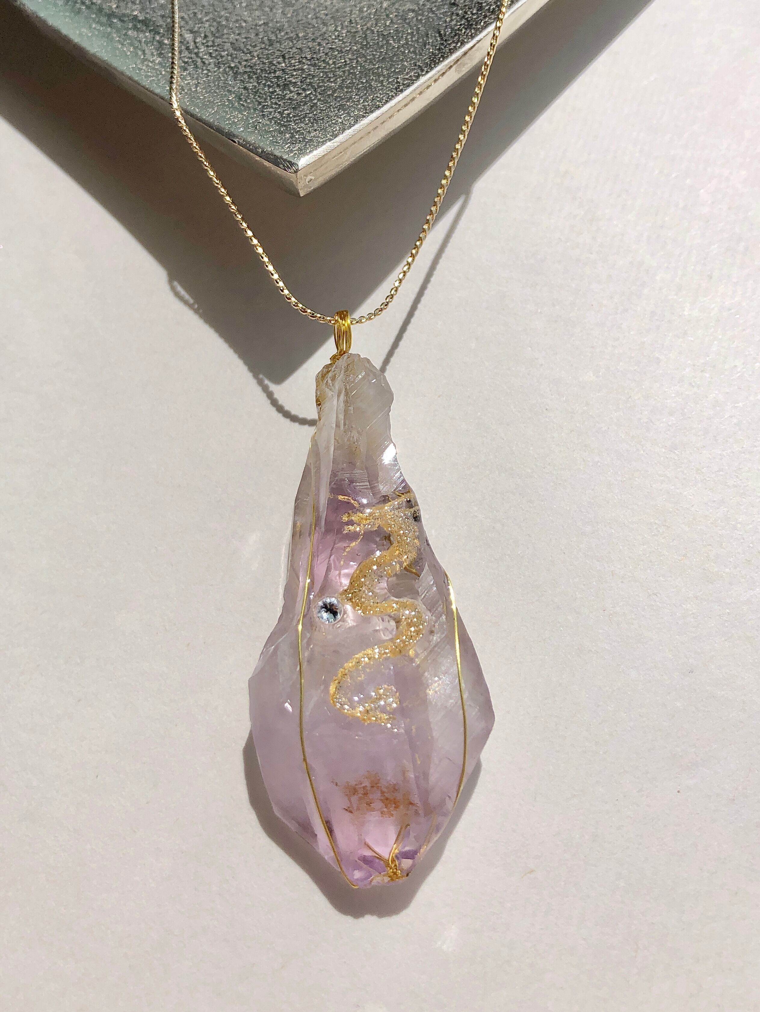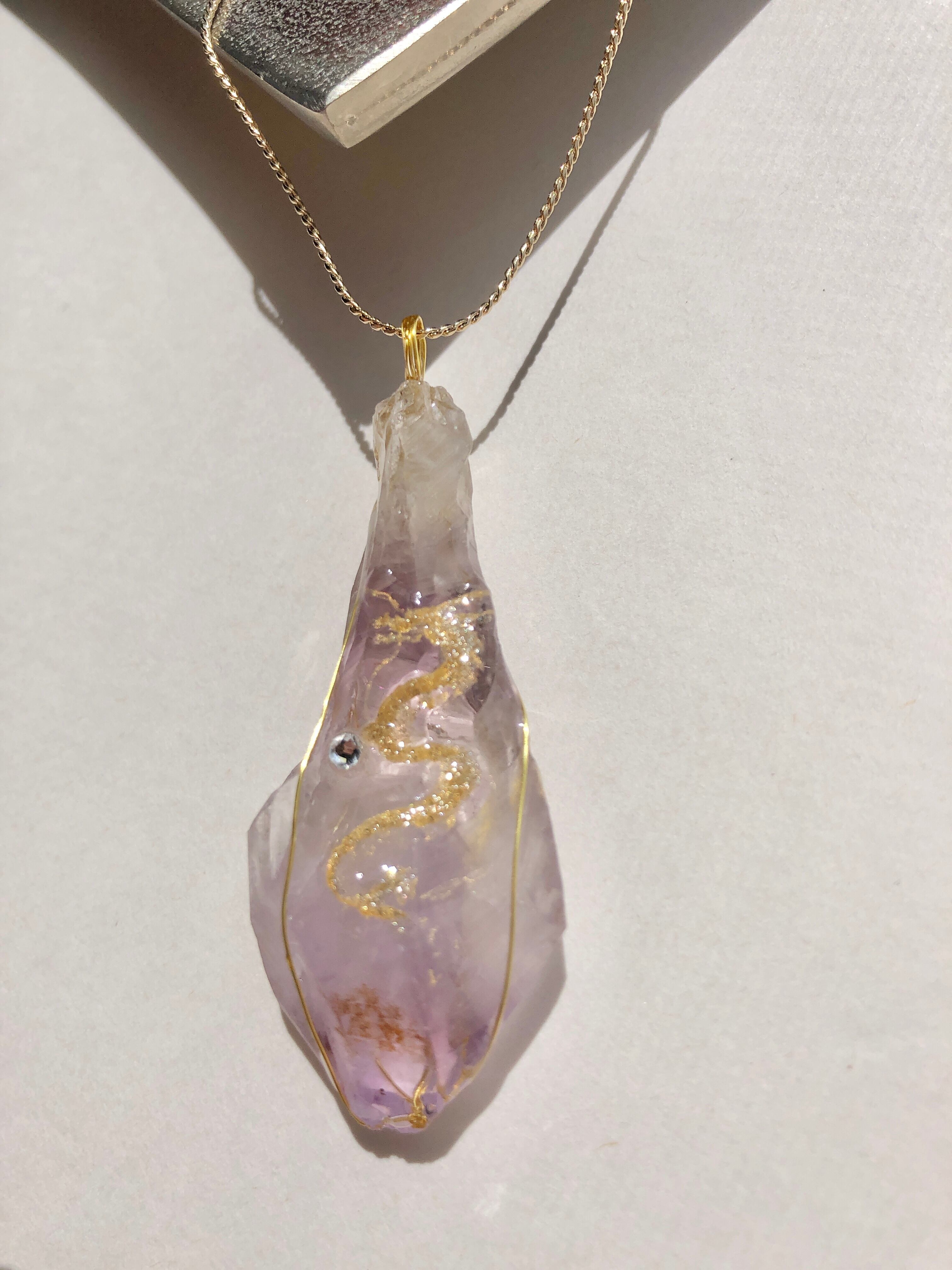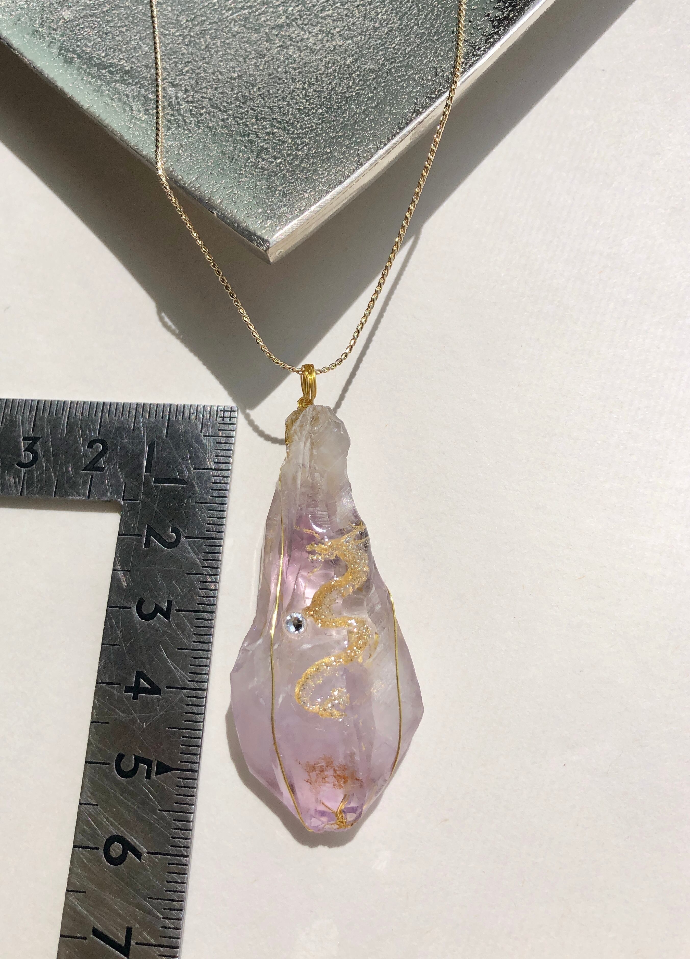 天然石 大 アメジスト(紫水晶)原石 金龍神ネックレス
