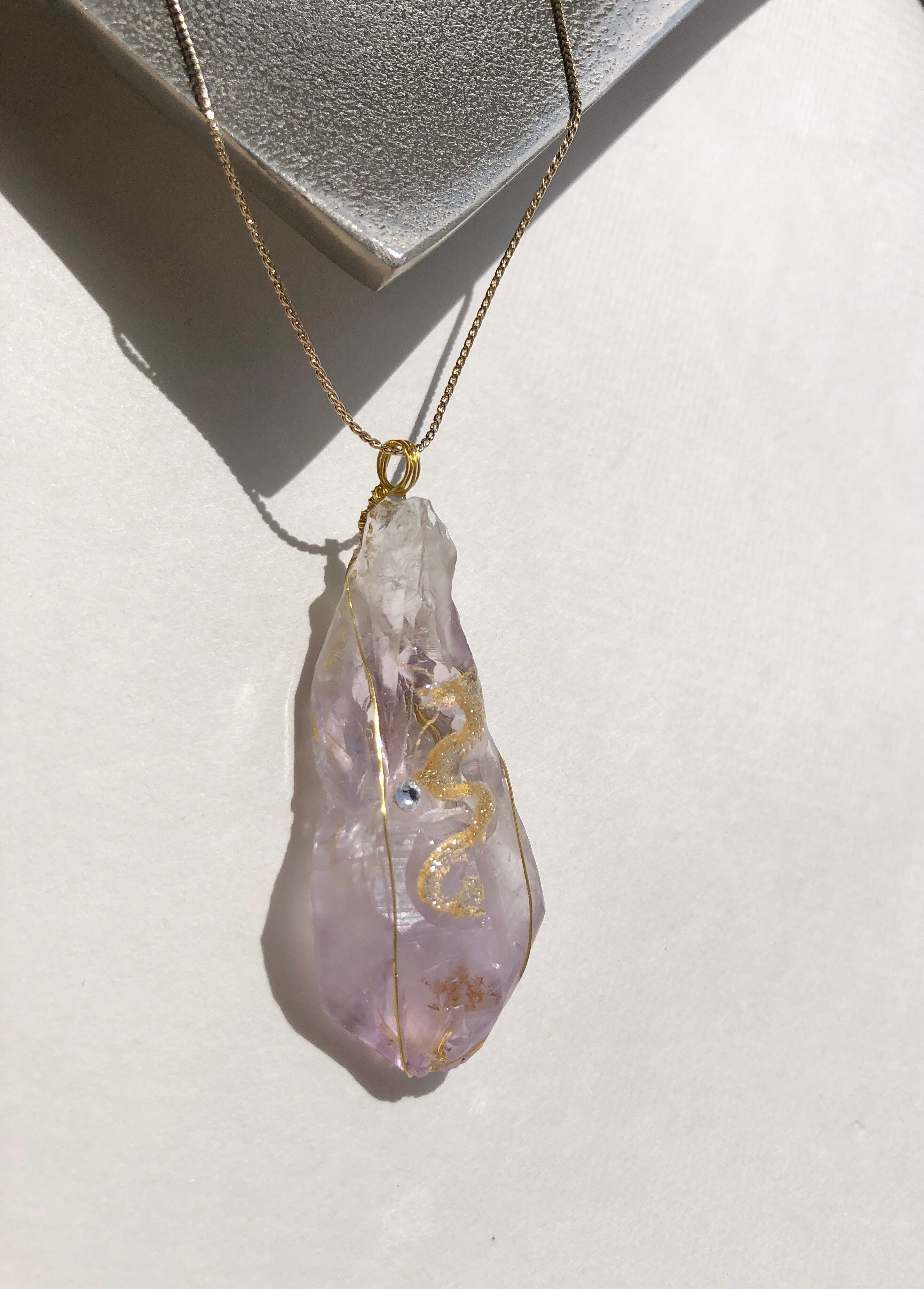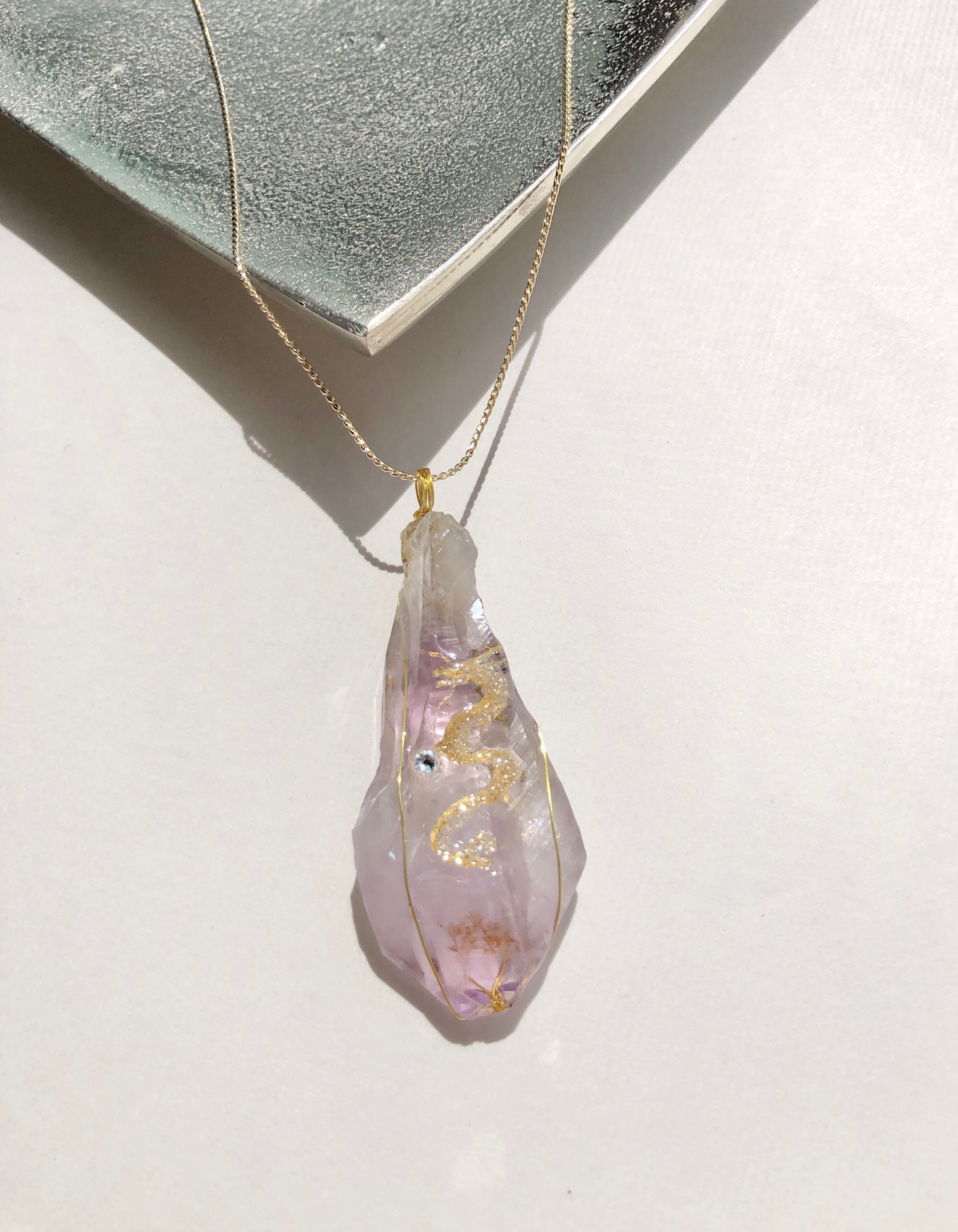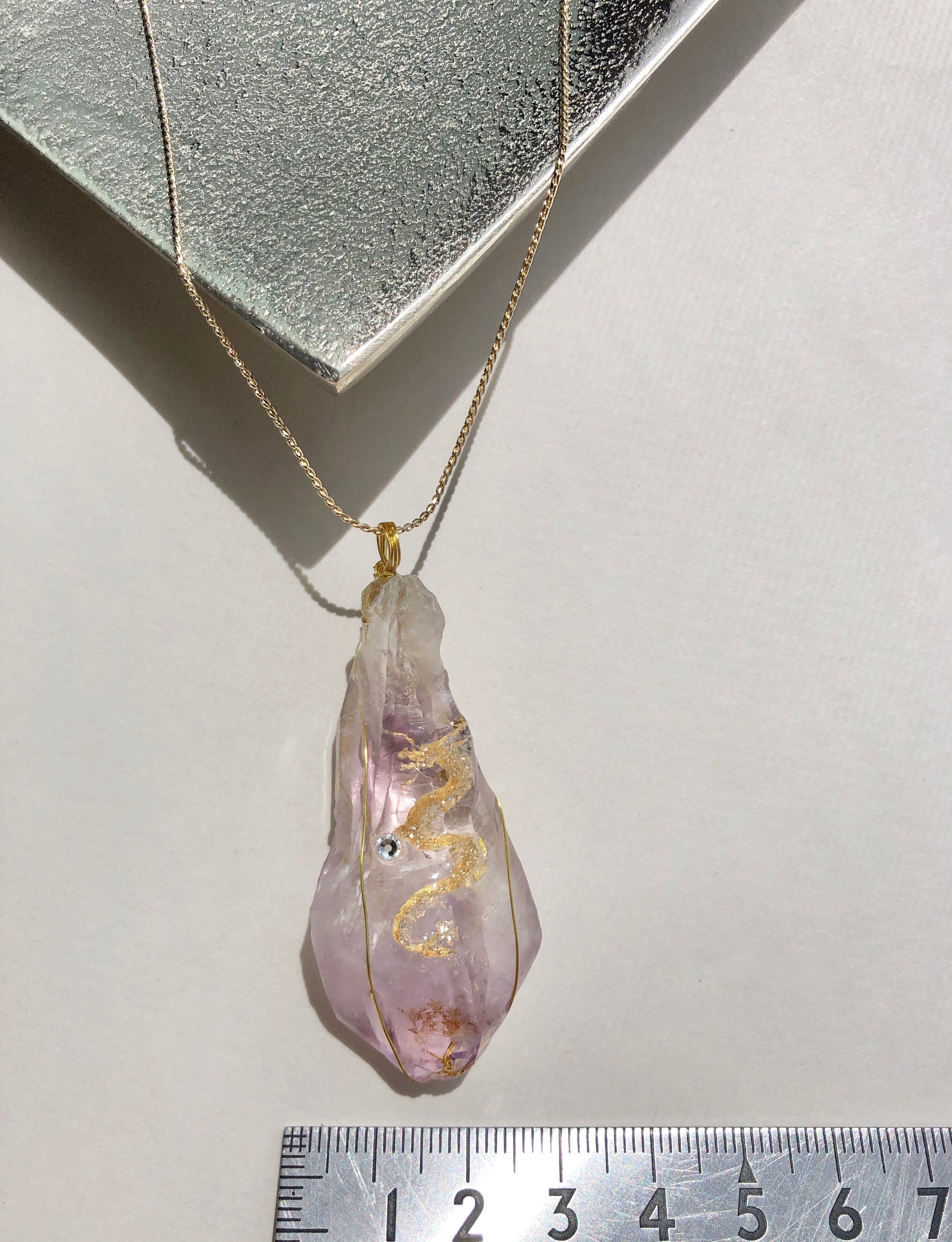 天然石 大 アメジスト(紫水晶)原石 金龍神ネックレス
