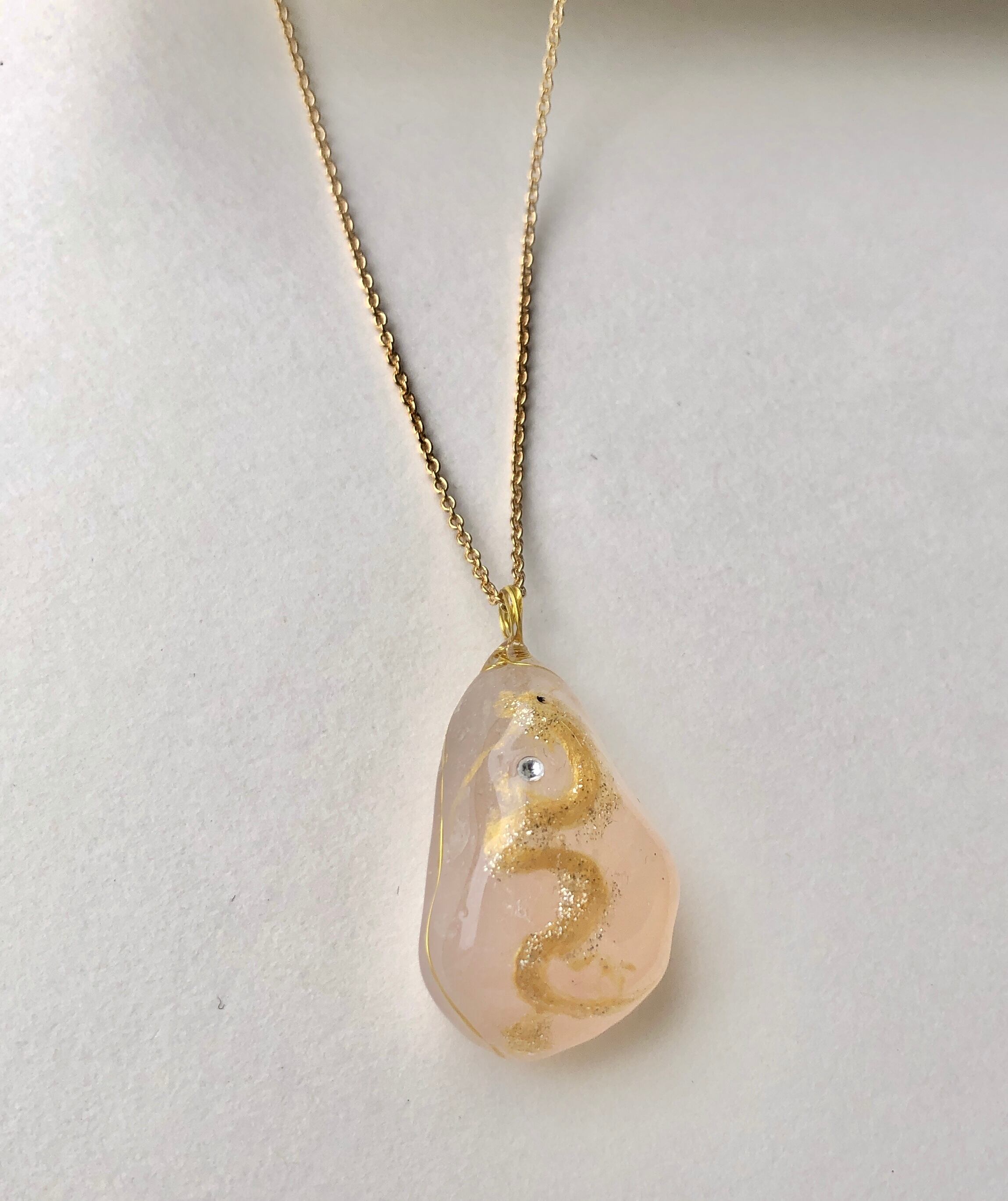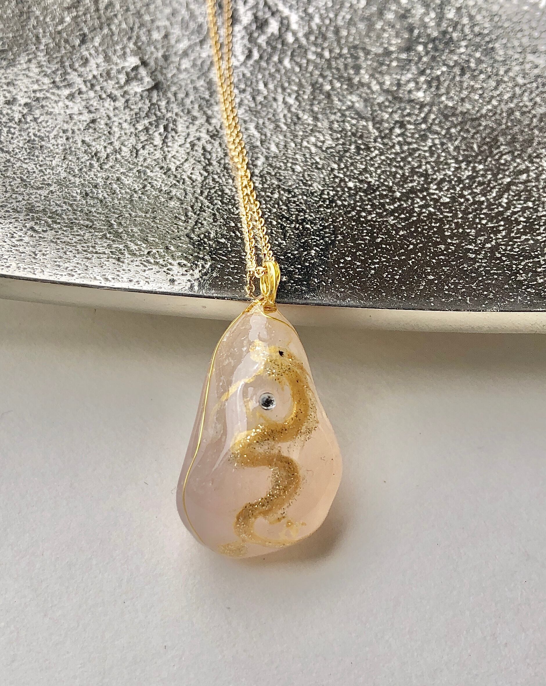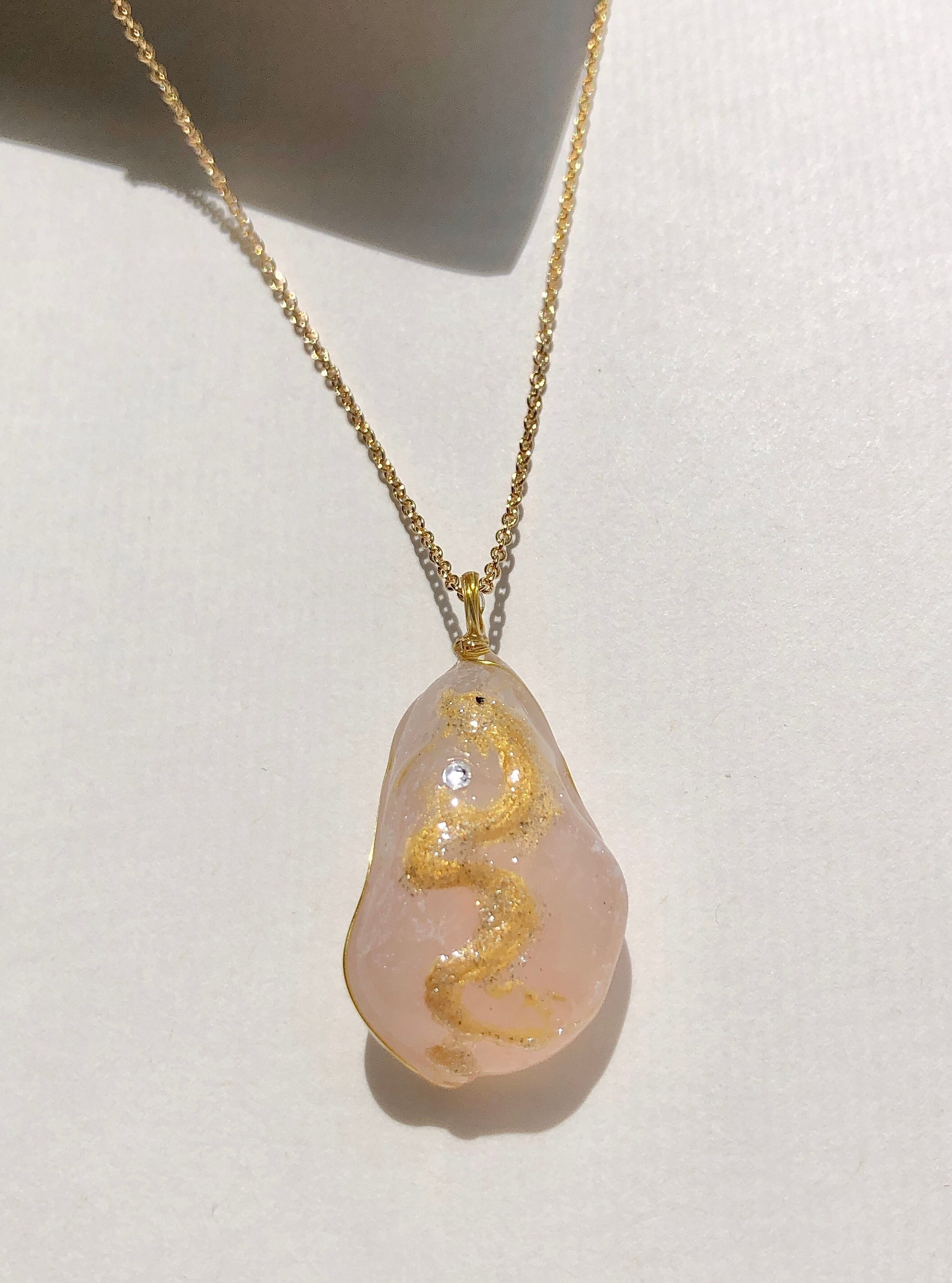 そんな淡い優しいピンクのローズクォーツに描かれた金色に輝く金龍。