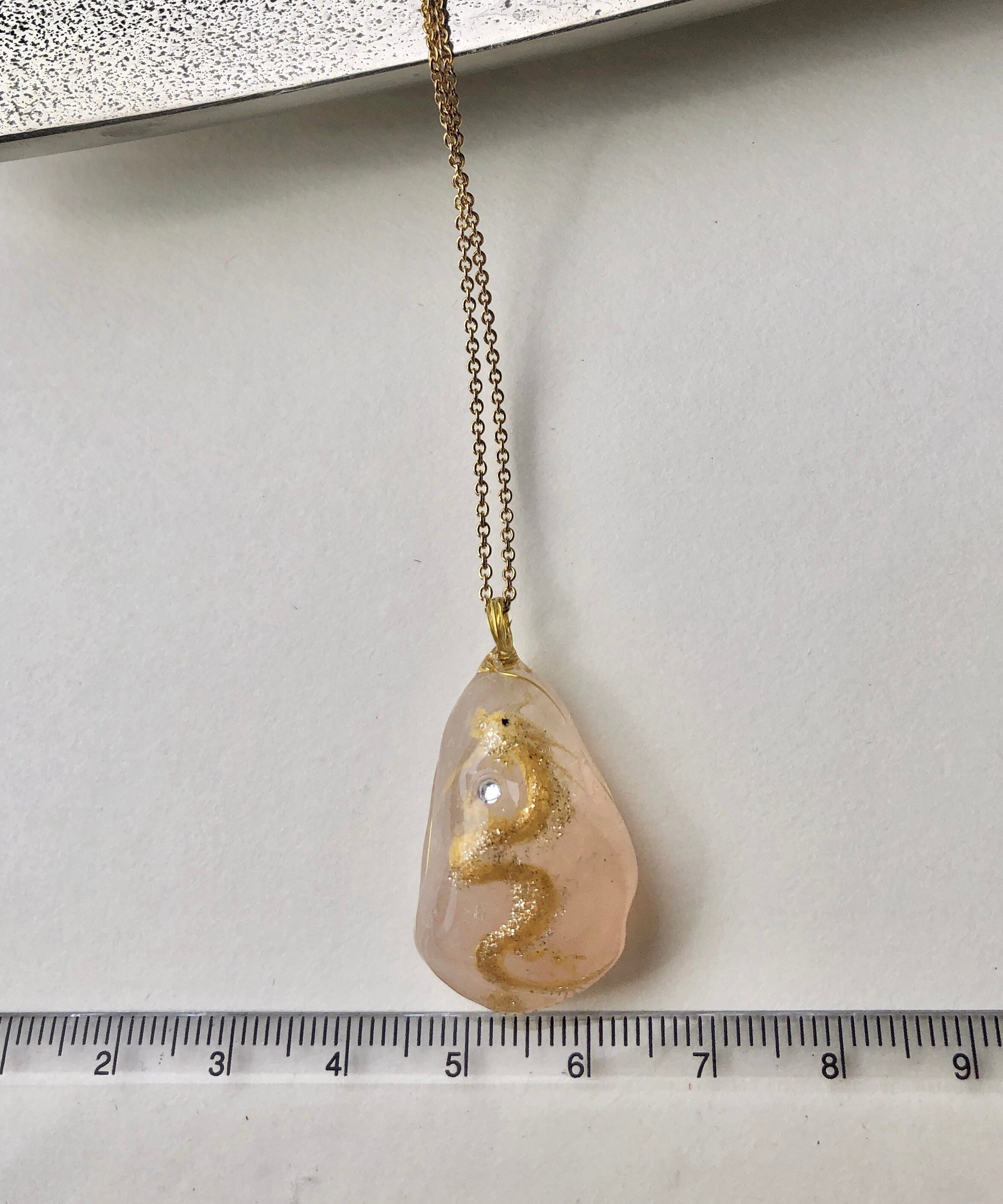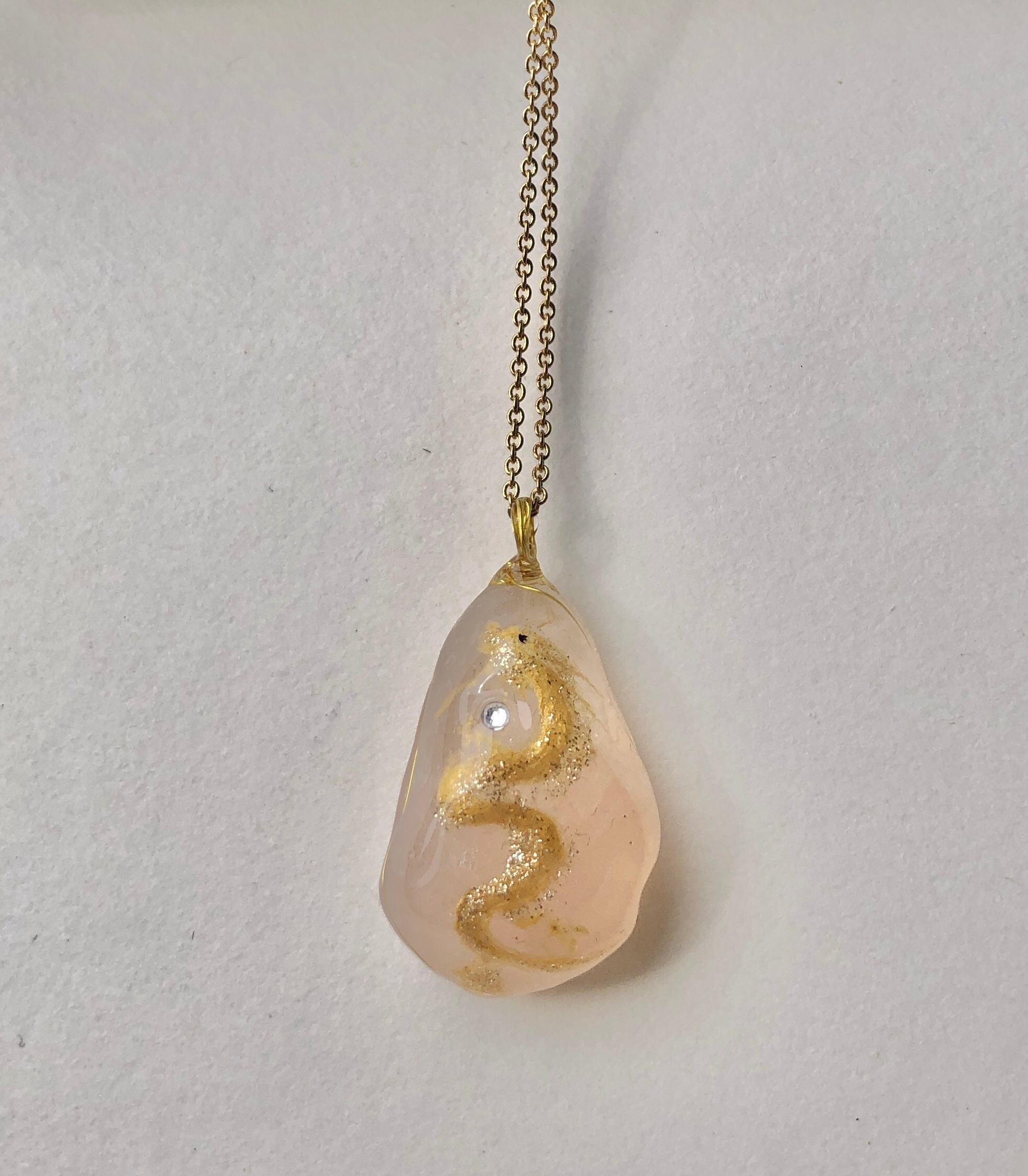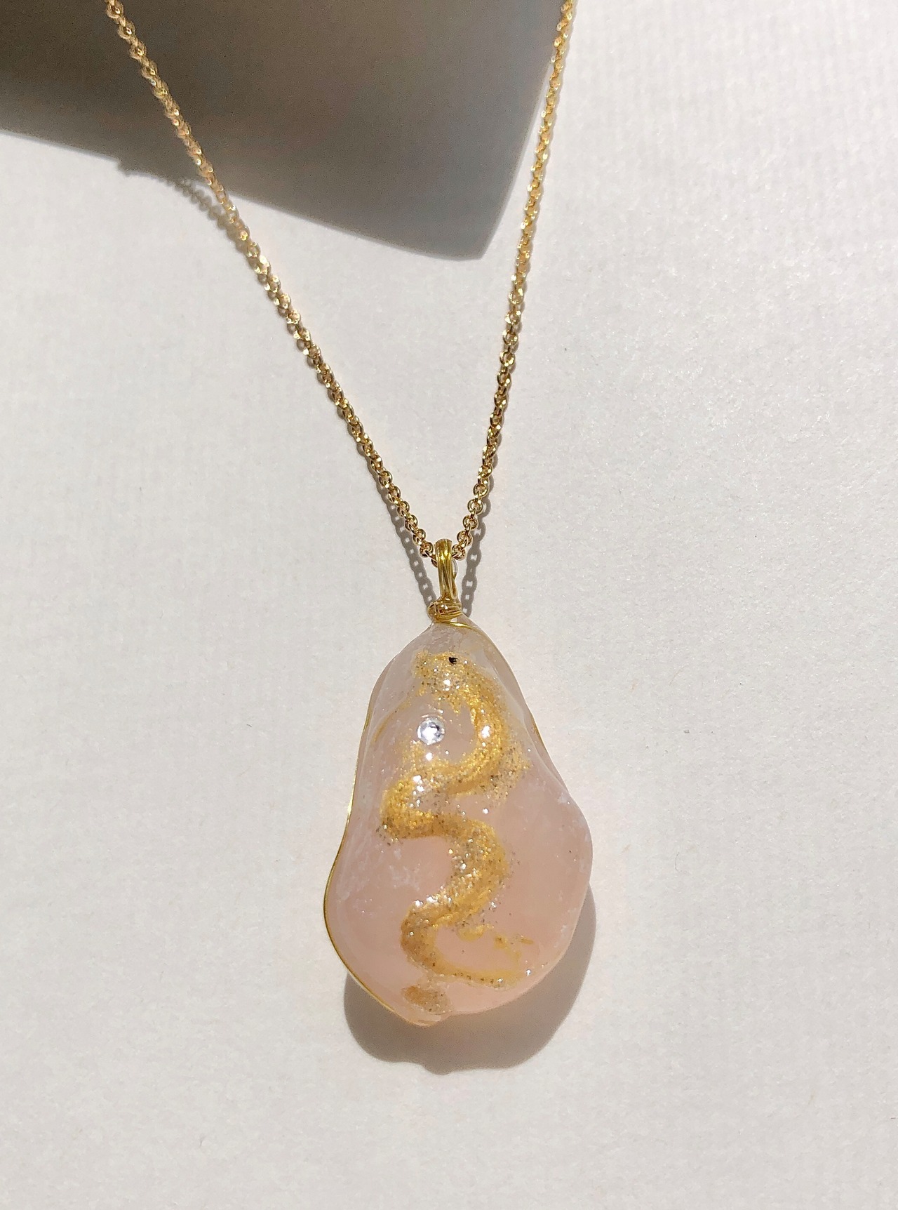 そんな淡い優しいピンクのローズクォーツに描かれた金色に輝く金龍。