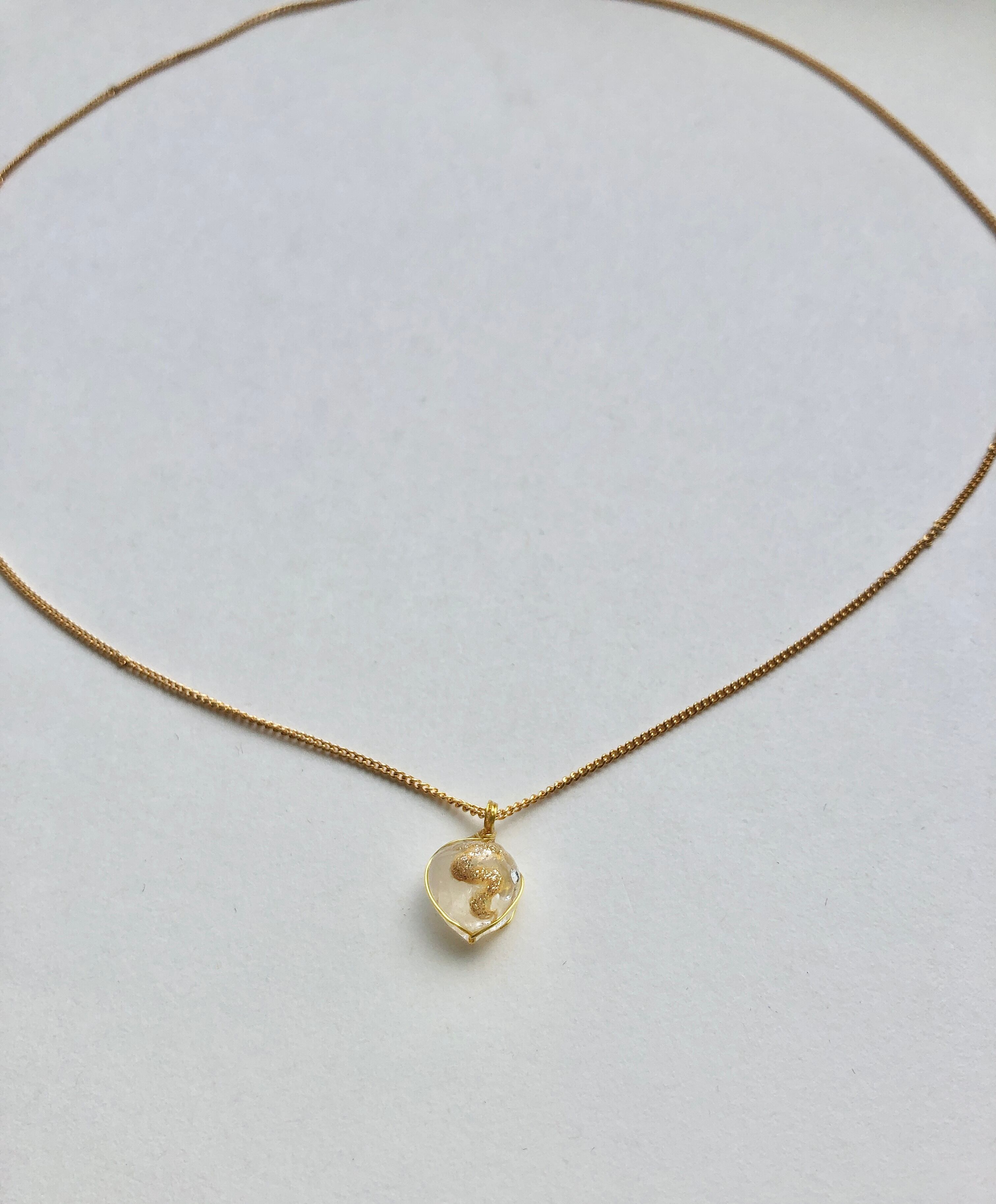 小 天然石 水晶 金龍ネックレス丸