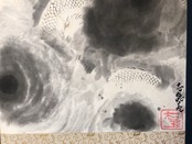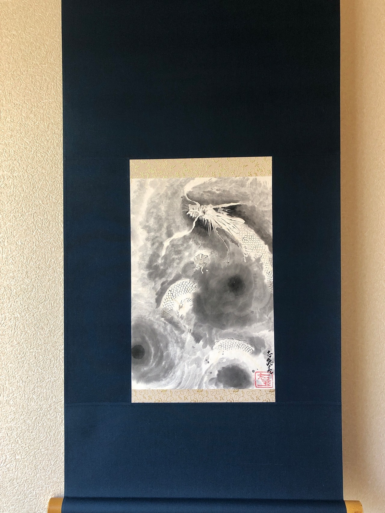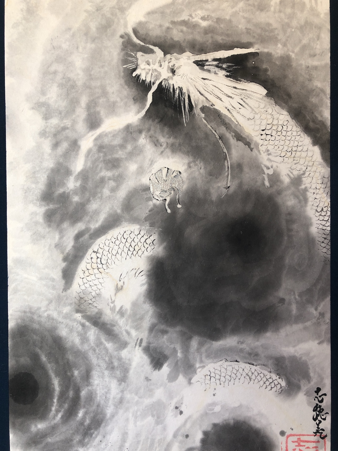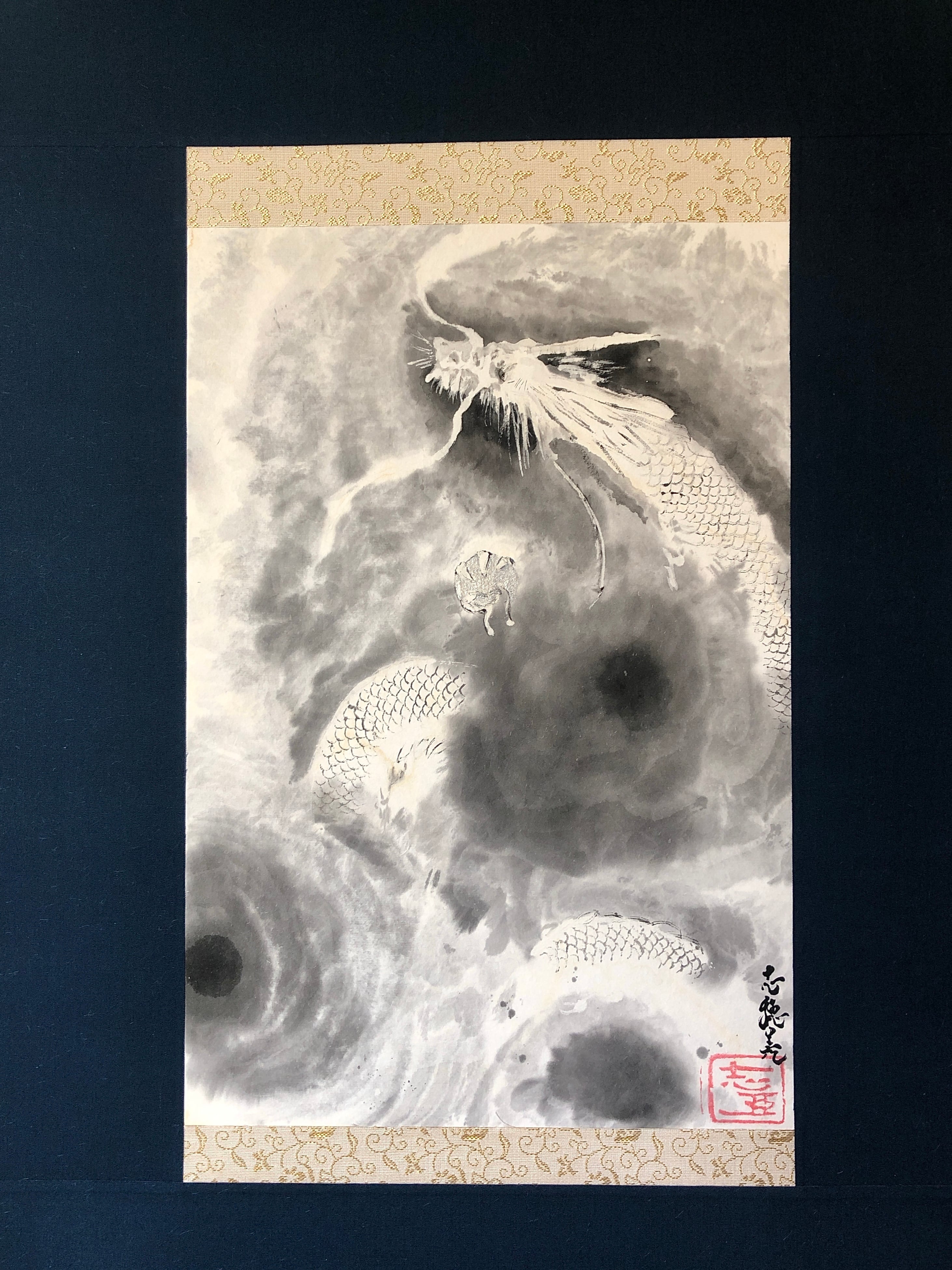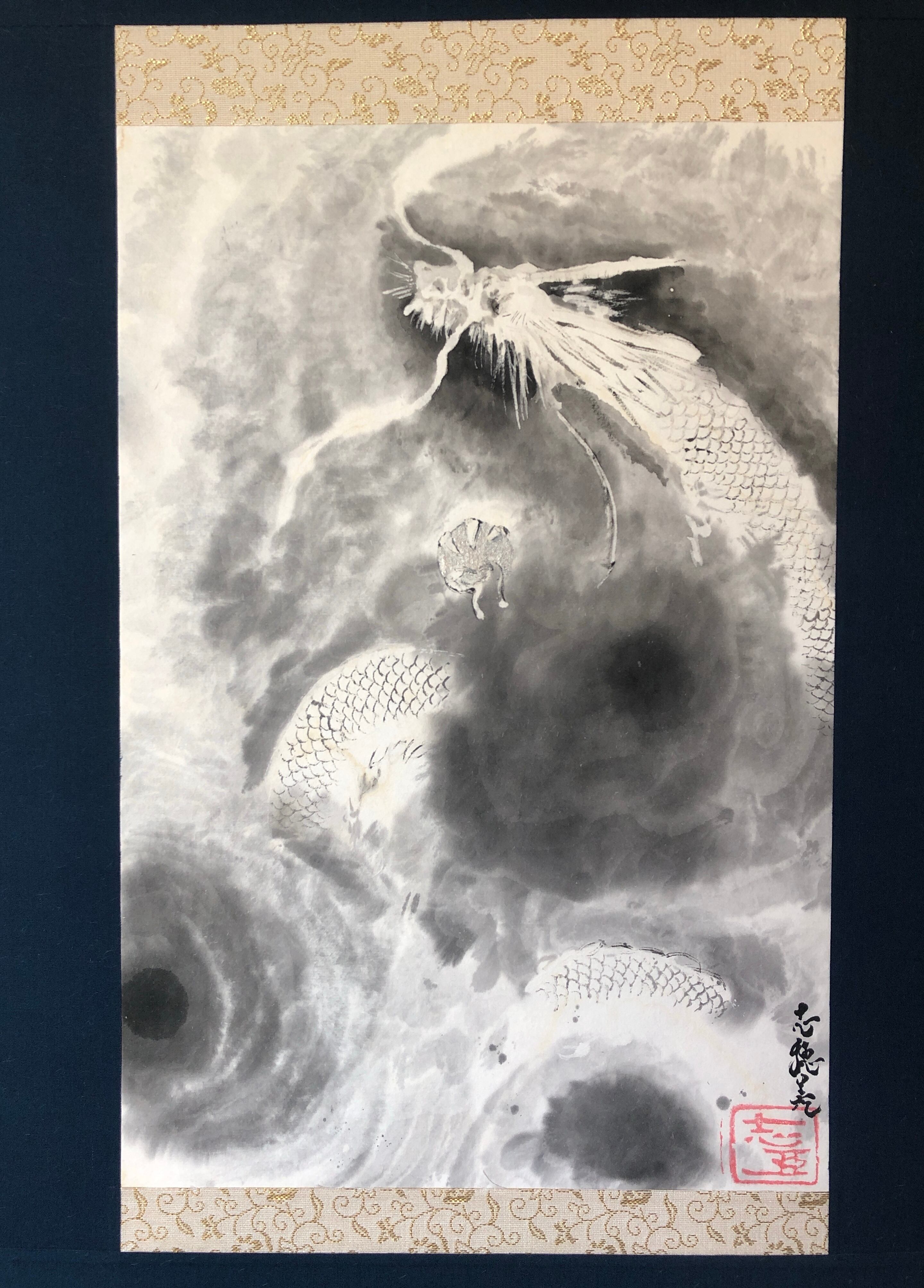 龍と渦巻く龍雲を、水墨の濃淡で表現しています。