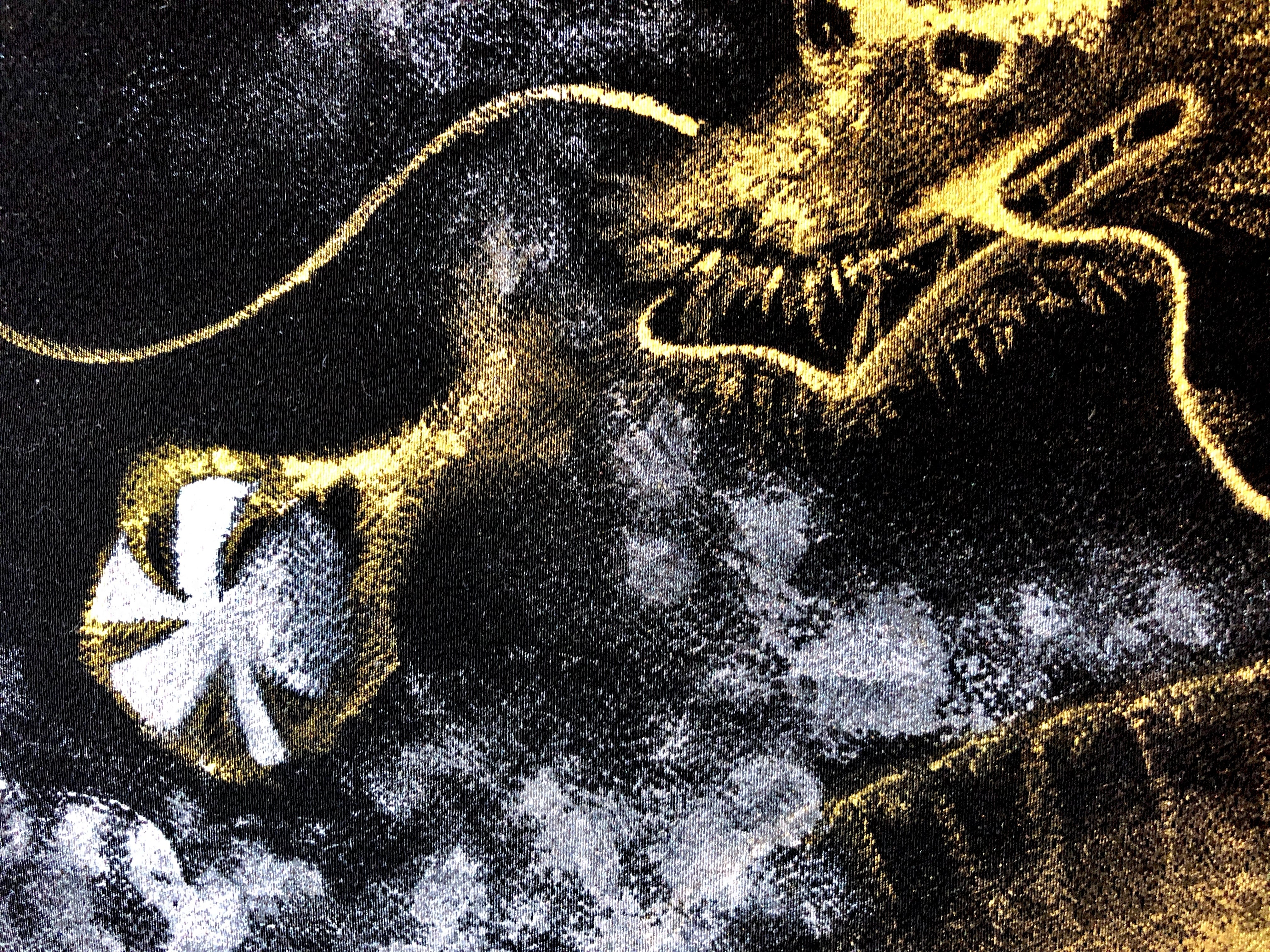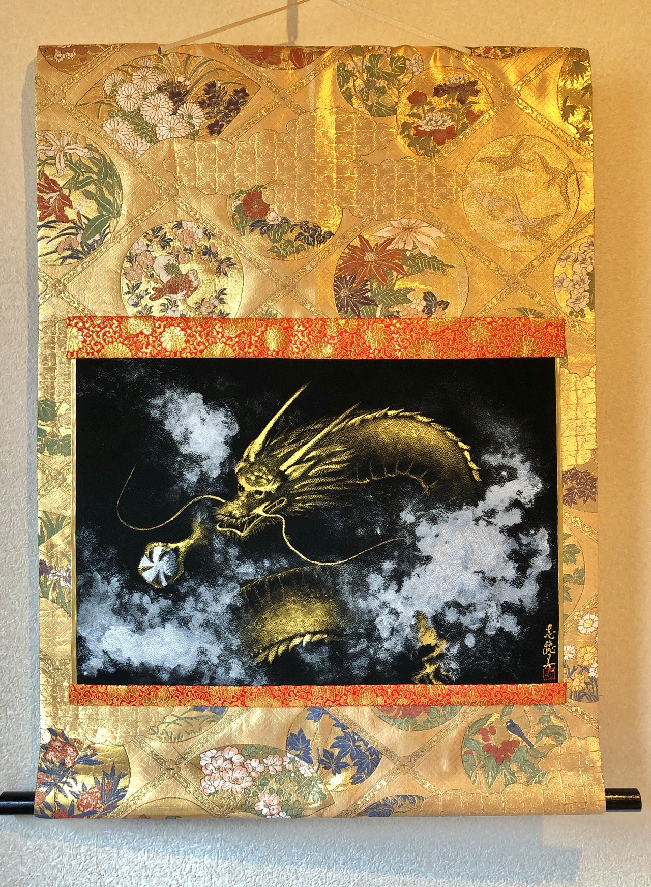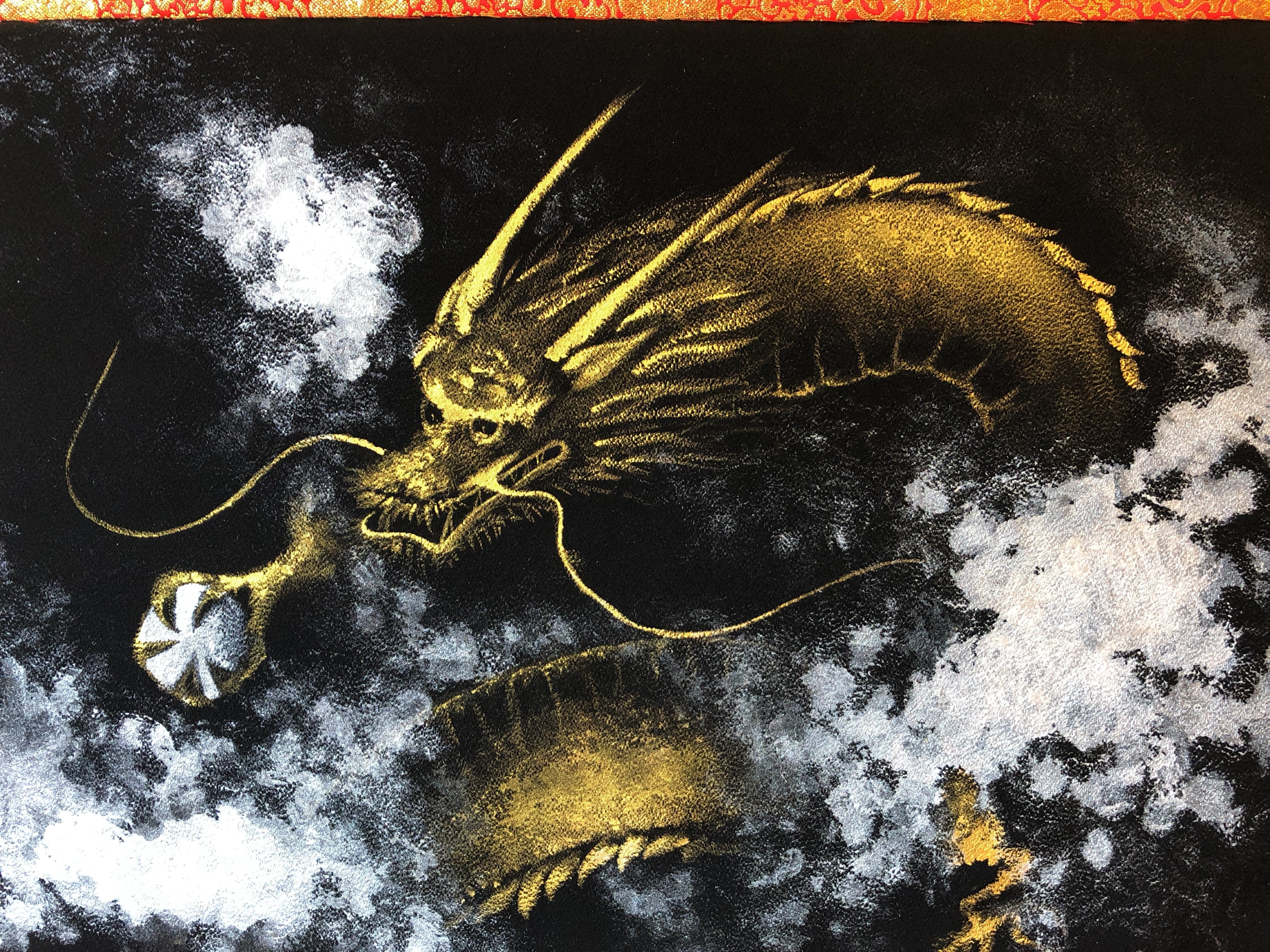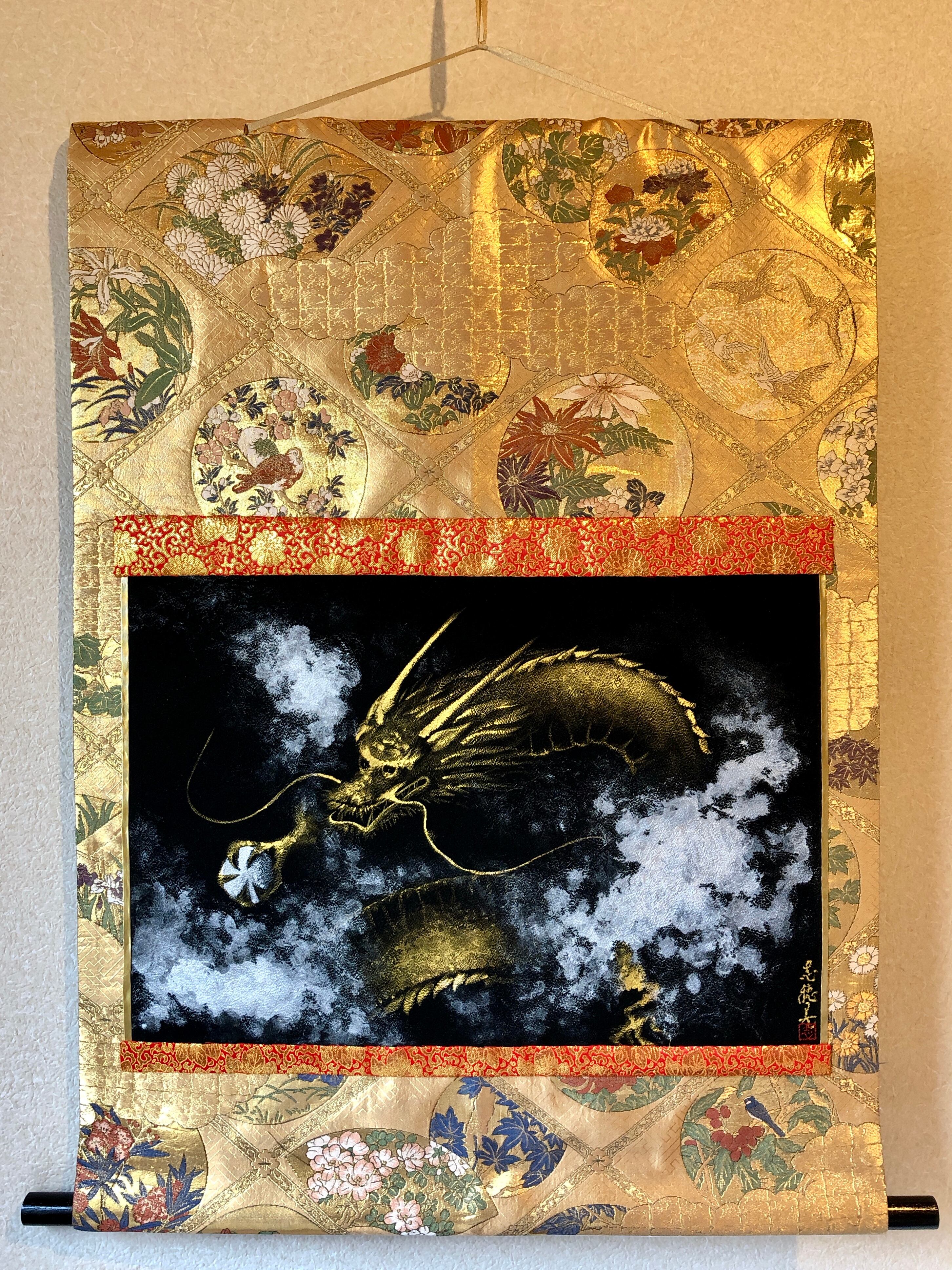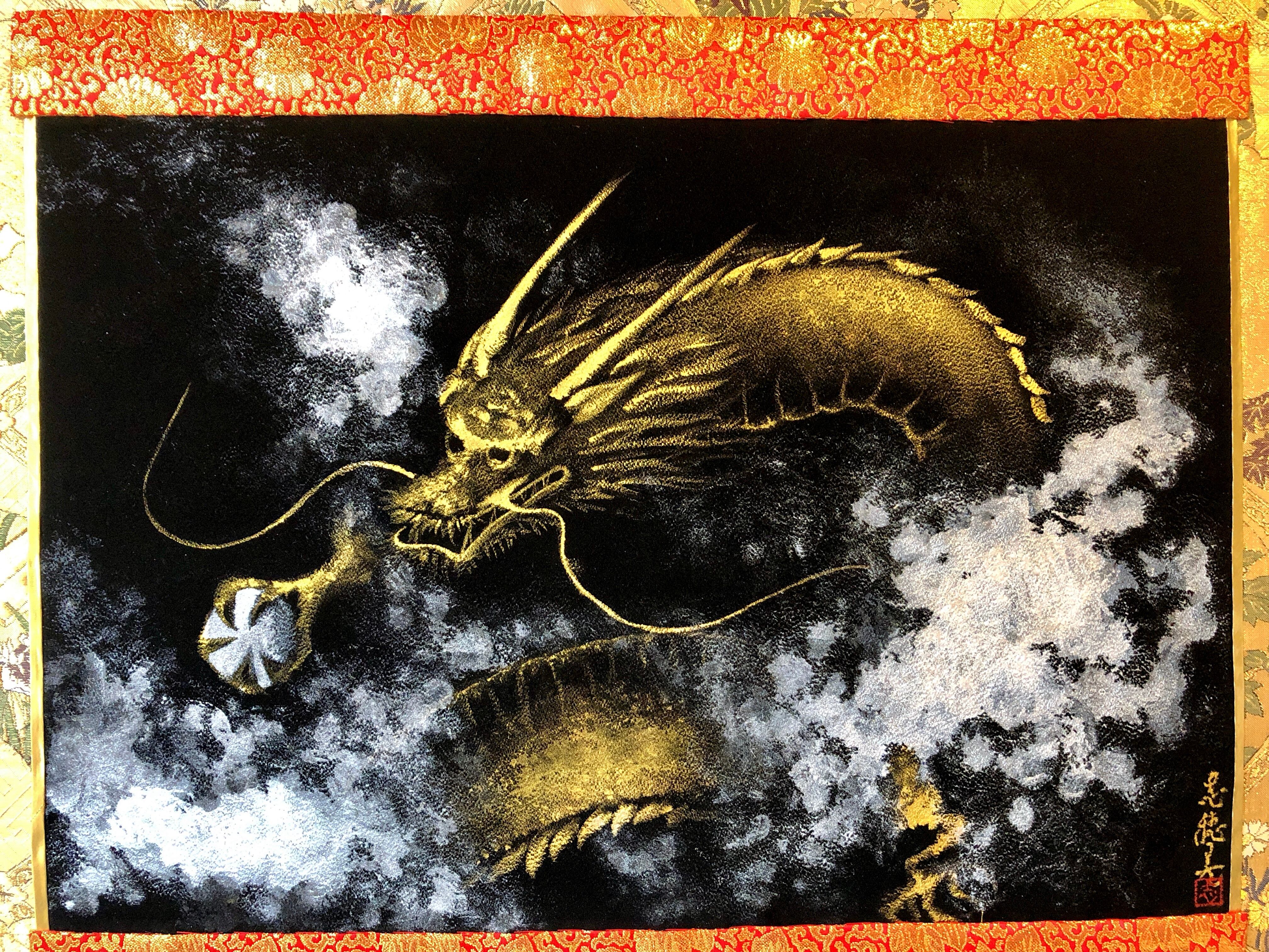 黒の正絹に描いた金龍。