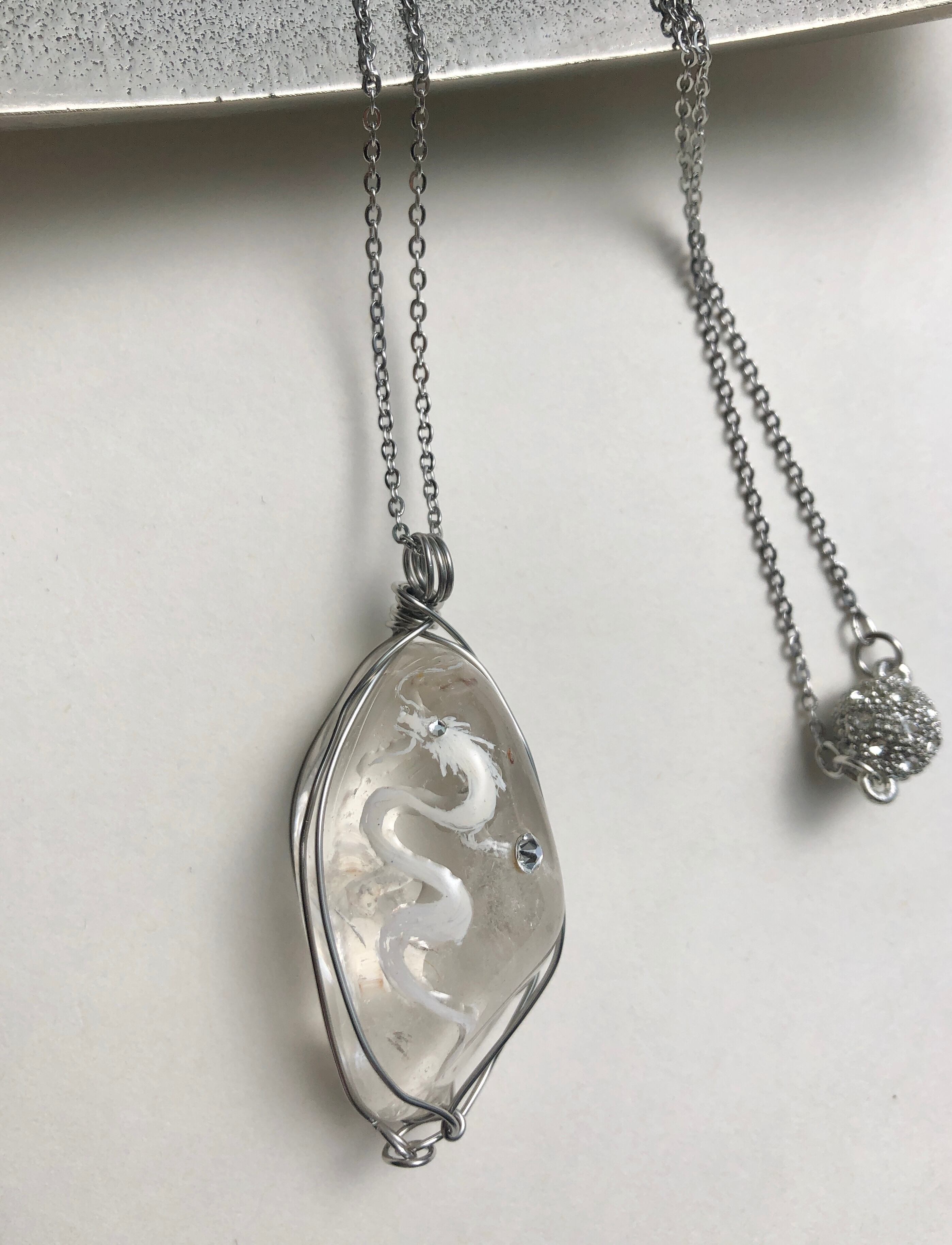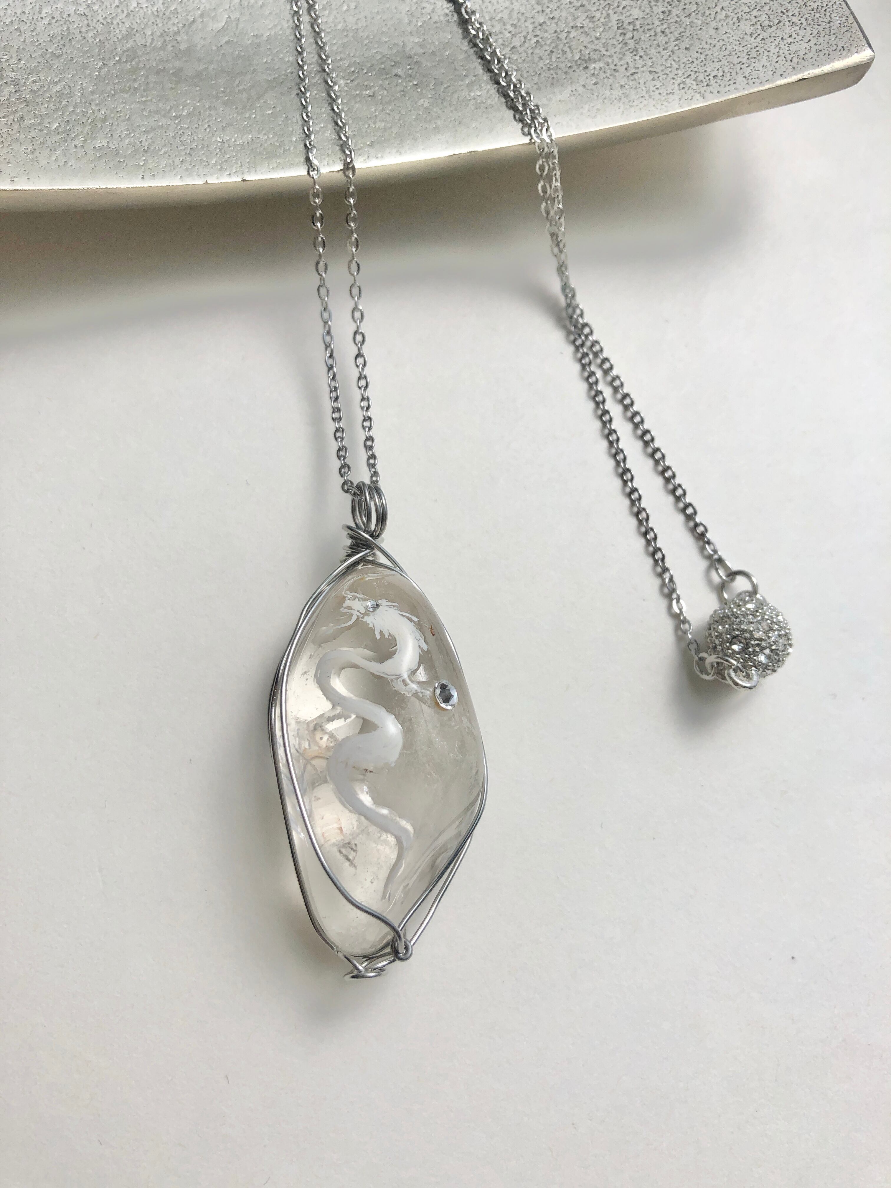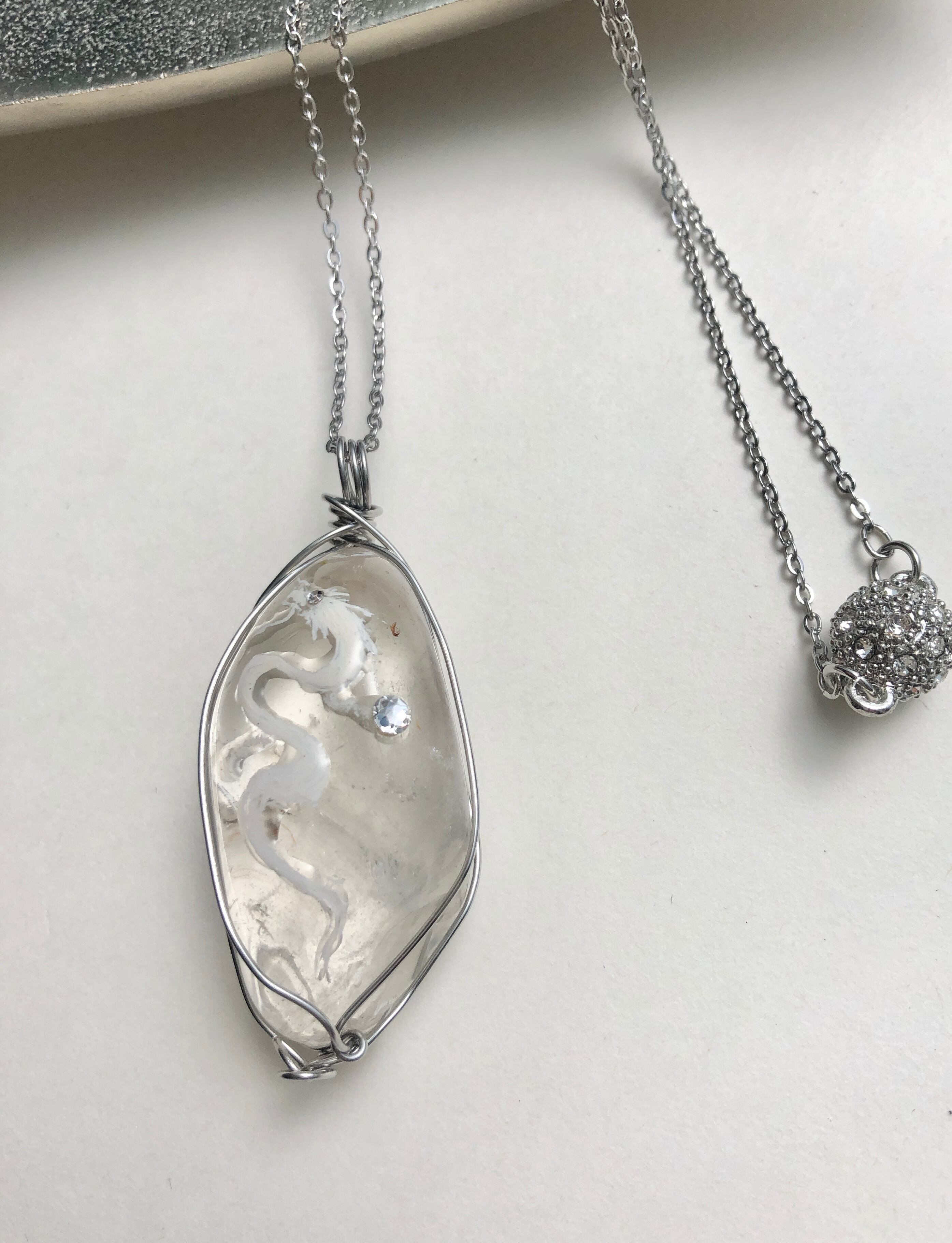 大 水晶 天然石 & スワロフスキー 白龍ネックレス