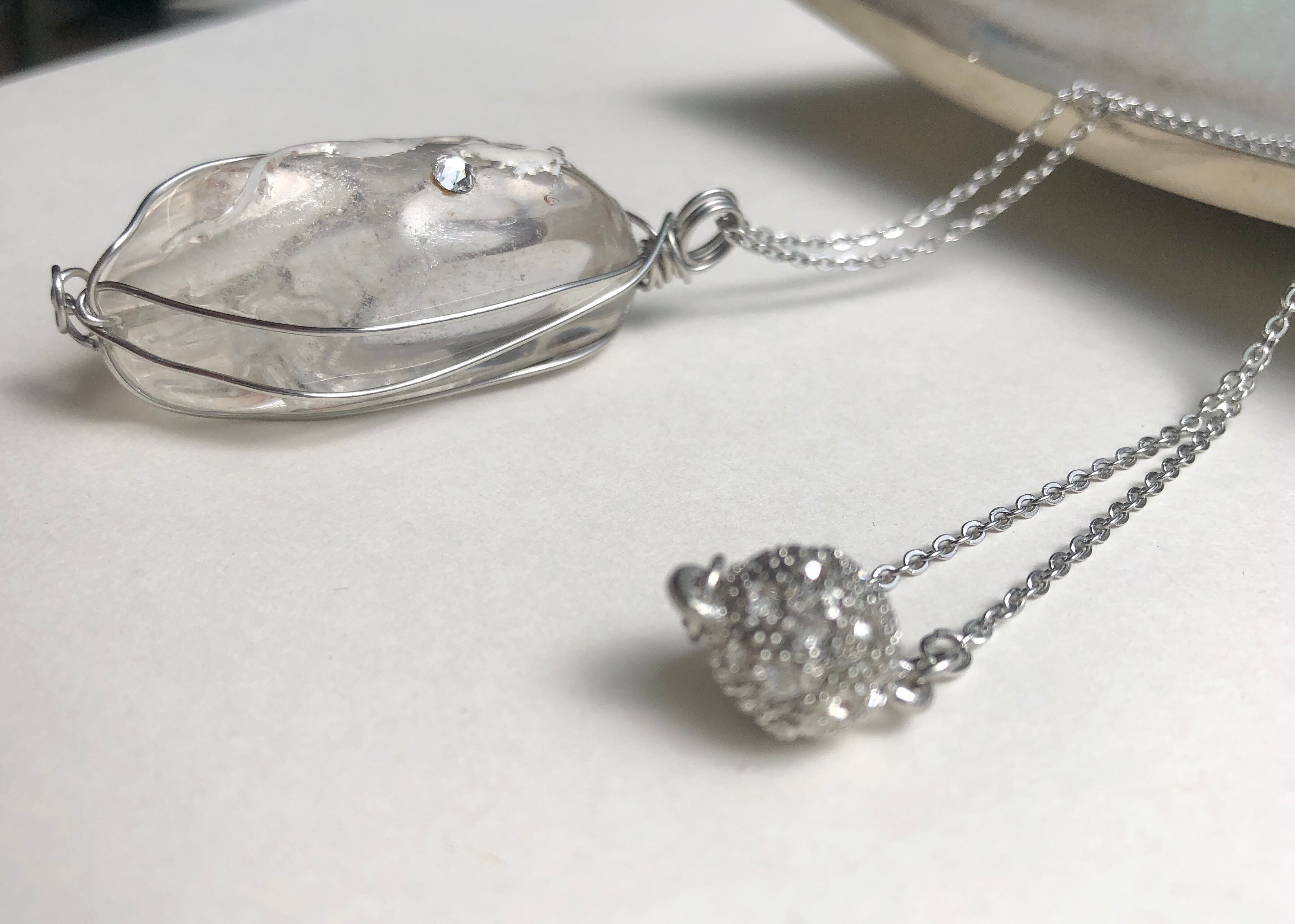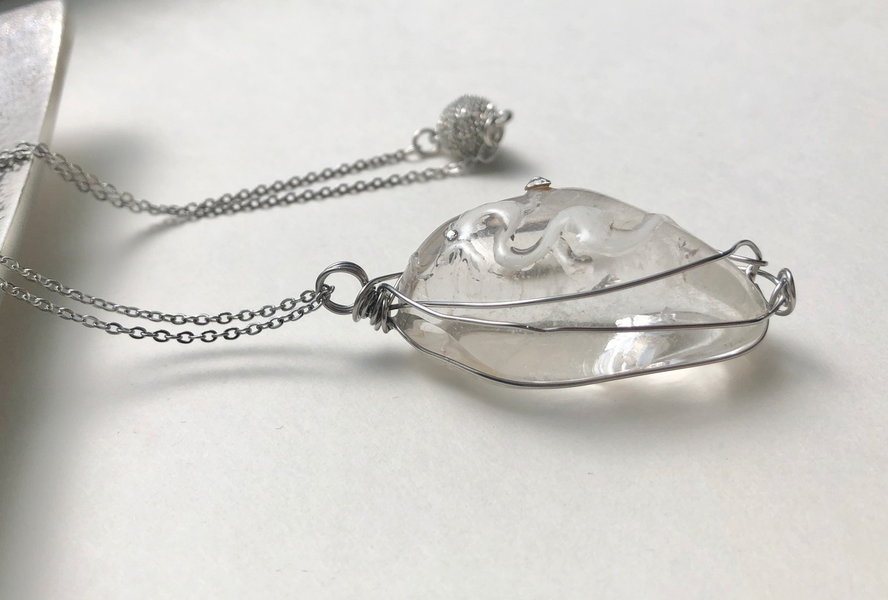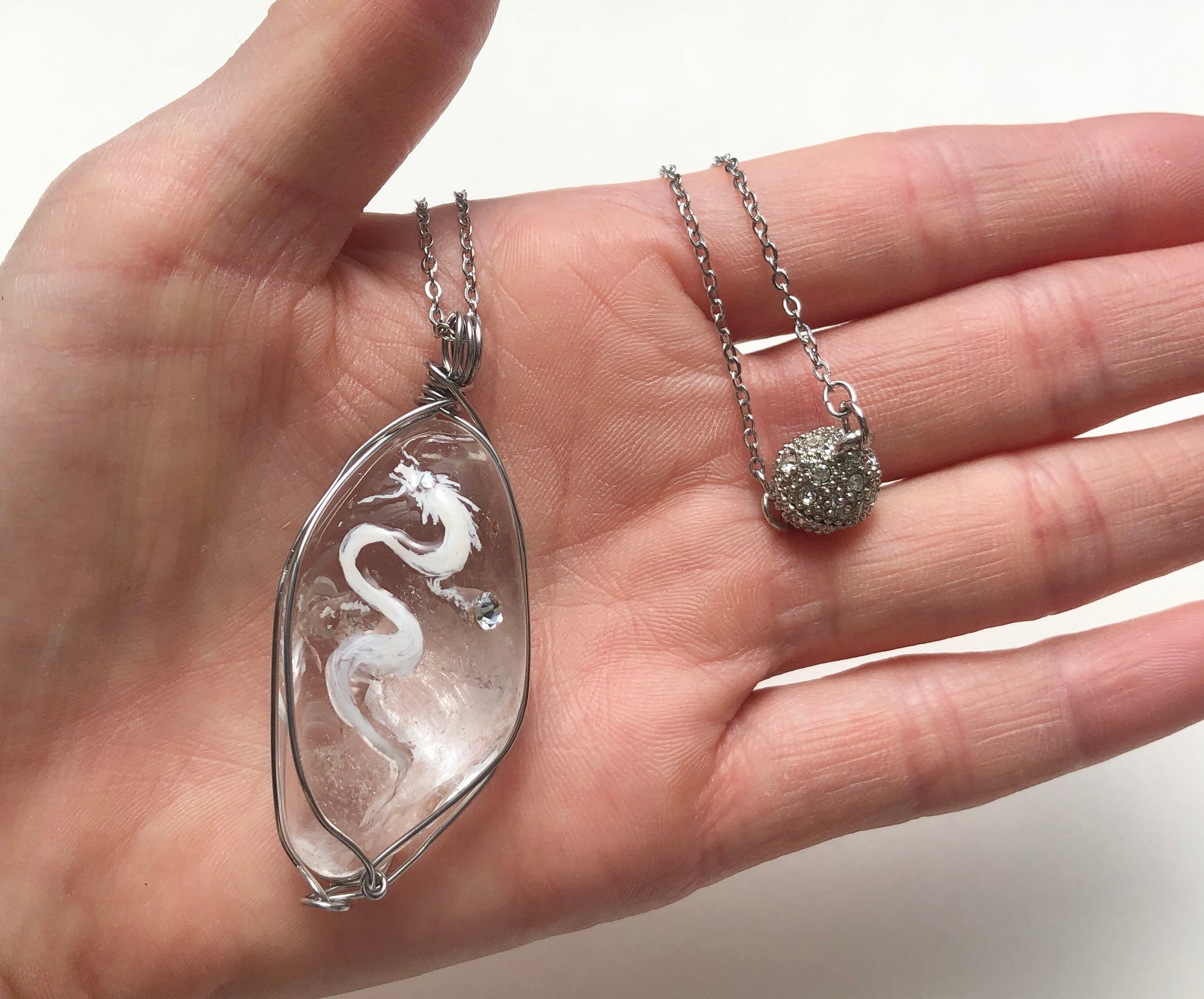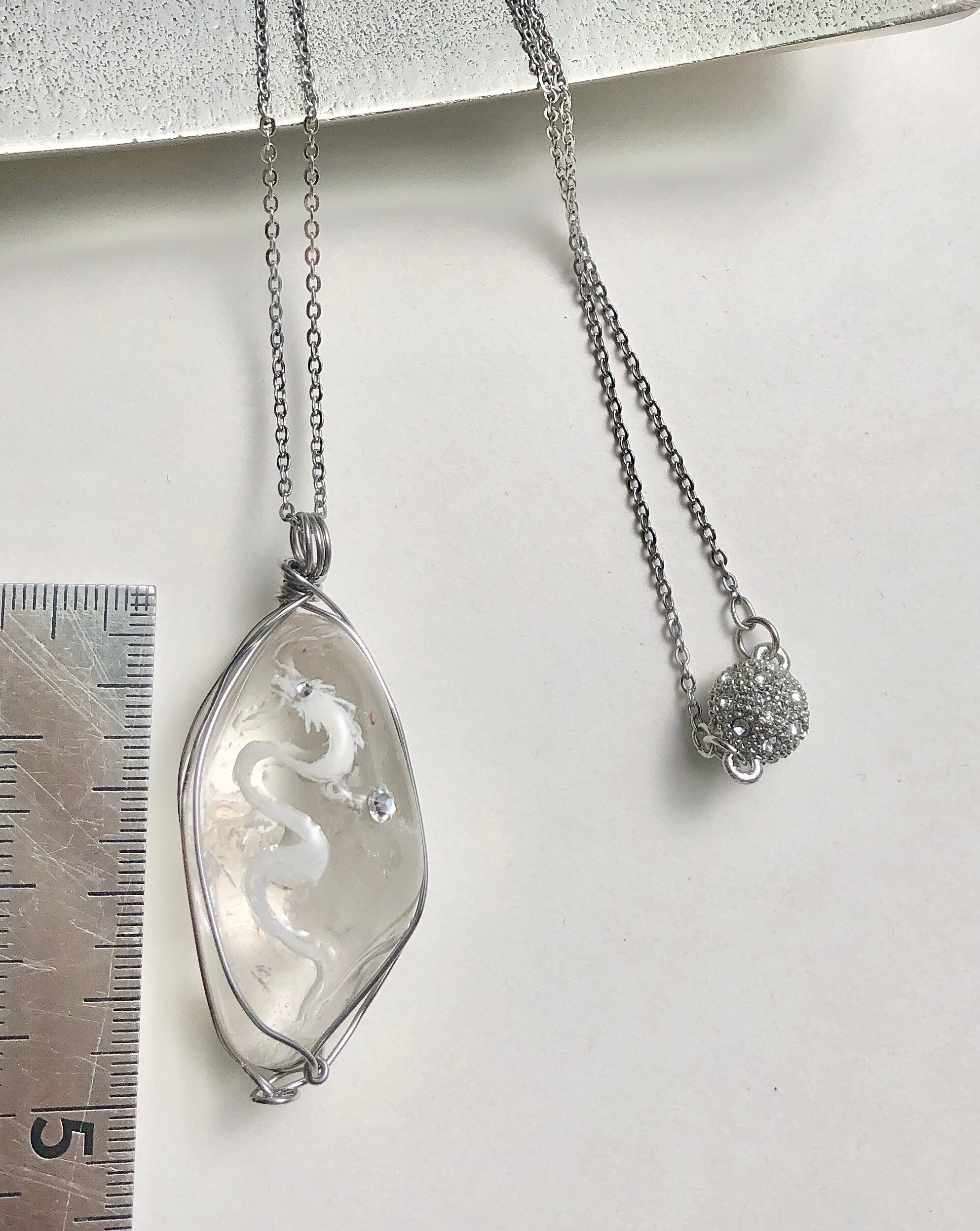 大 水晶 天然石 & スワロフスキー 白龍ネックレス