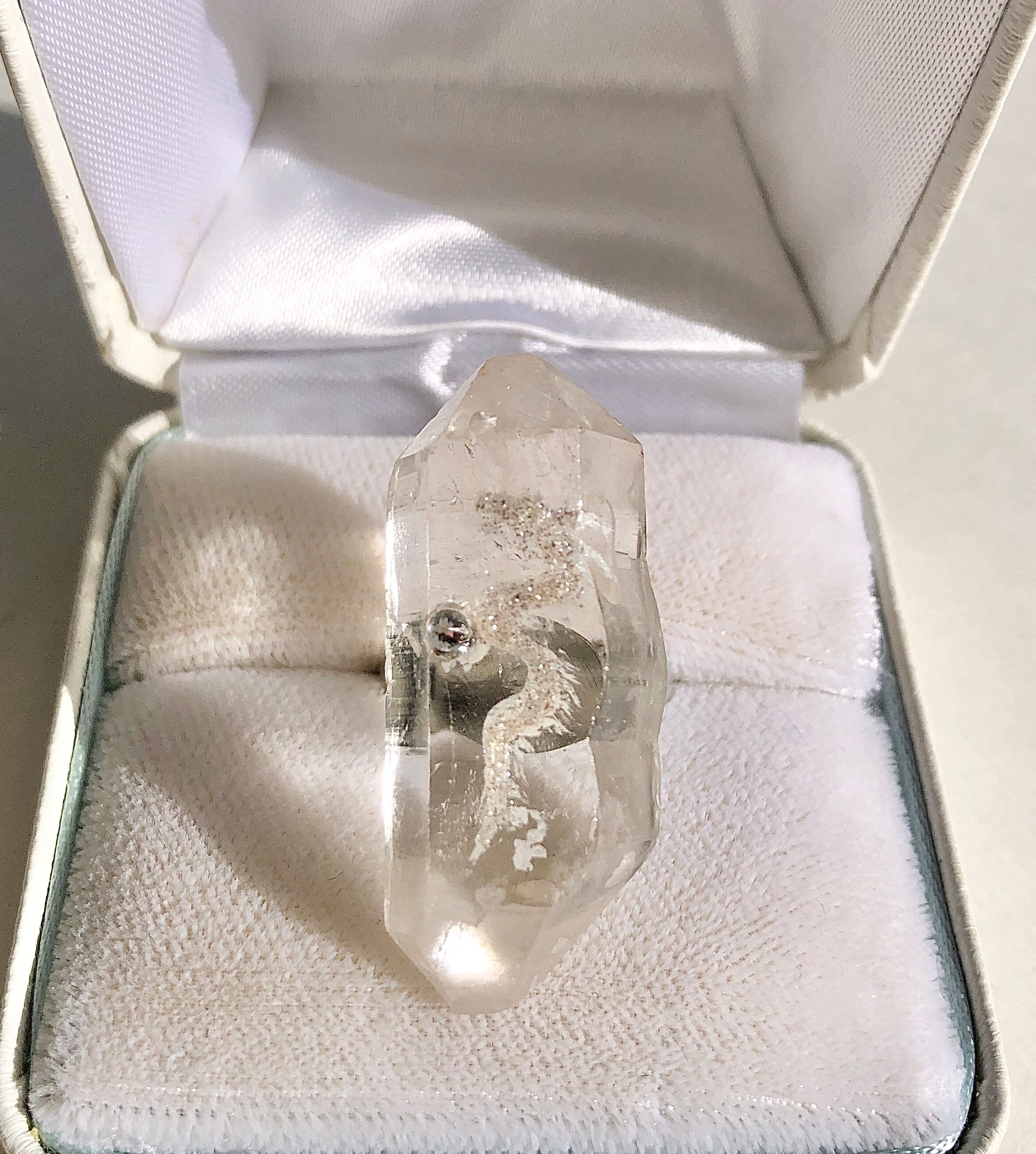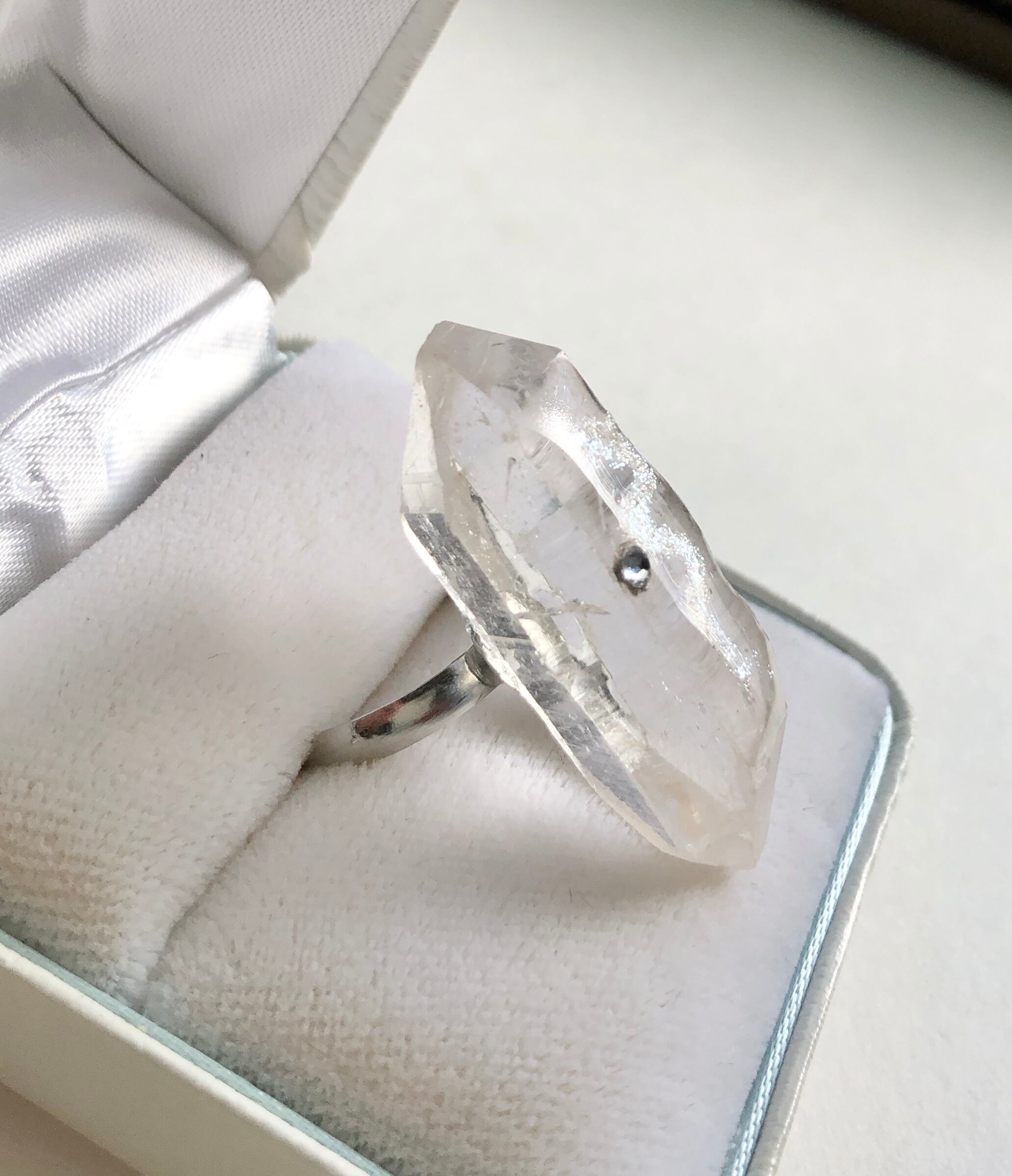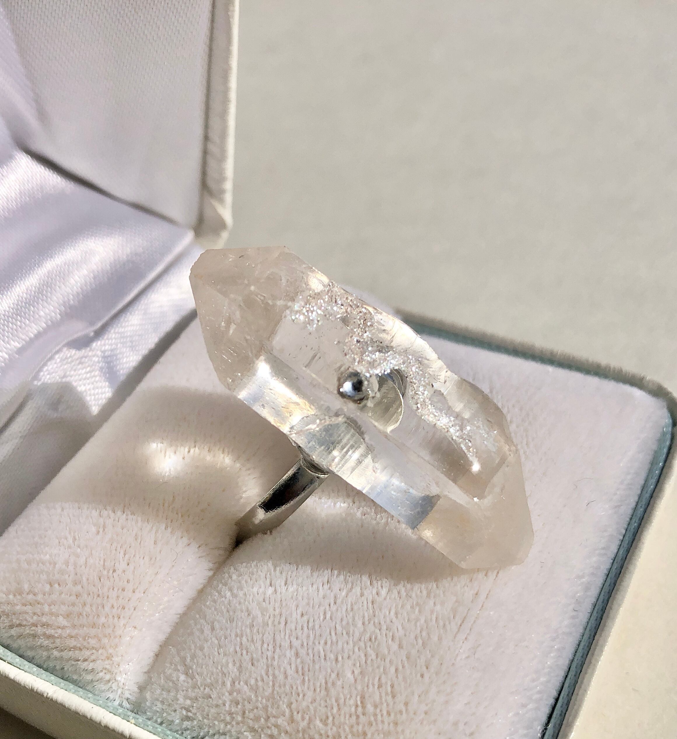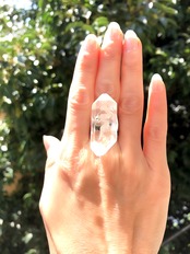 存在感のある大きなダブルポイント水晶の美しい指輪です。