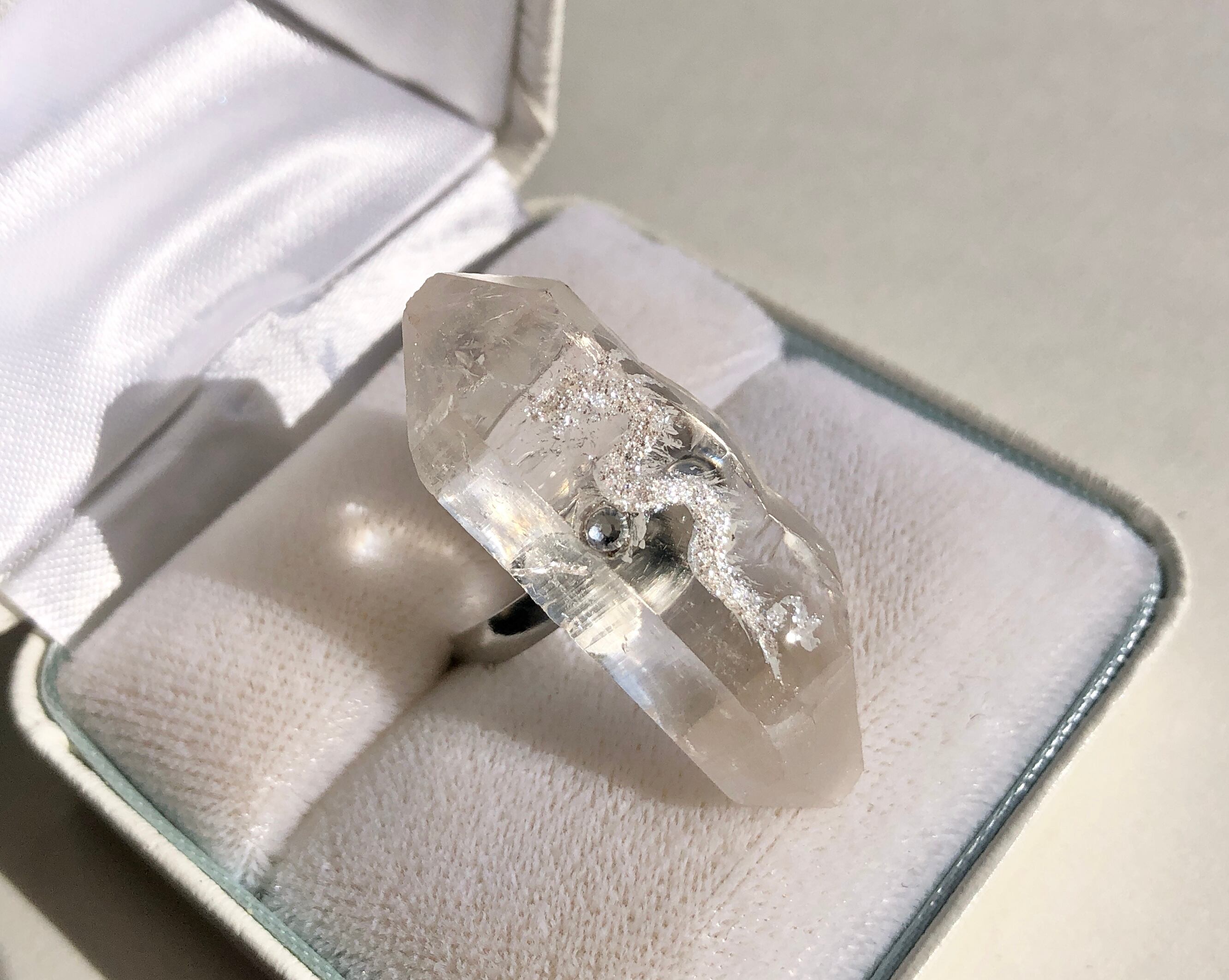 天然石 ヒマラヤ水晶原石 大 白銀龍指輪
