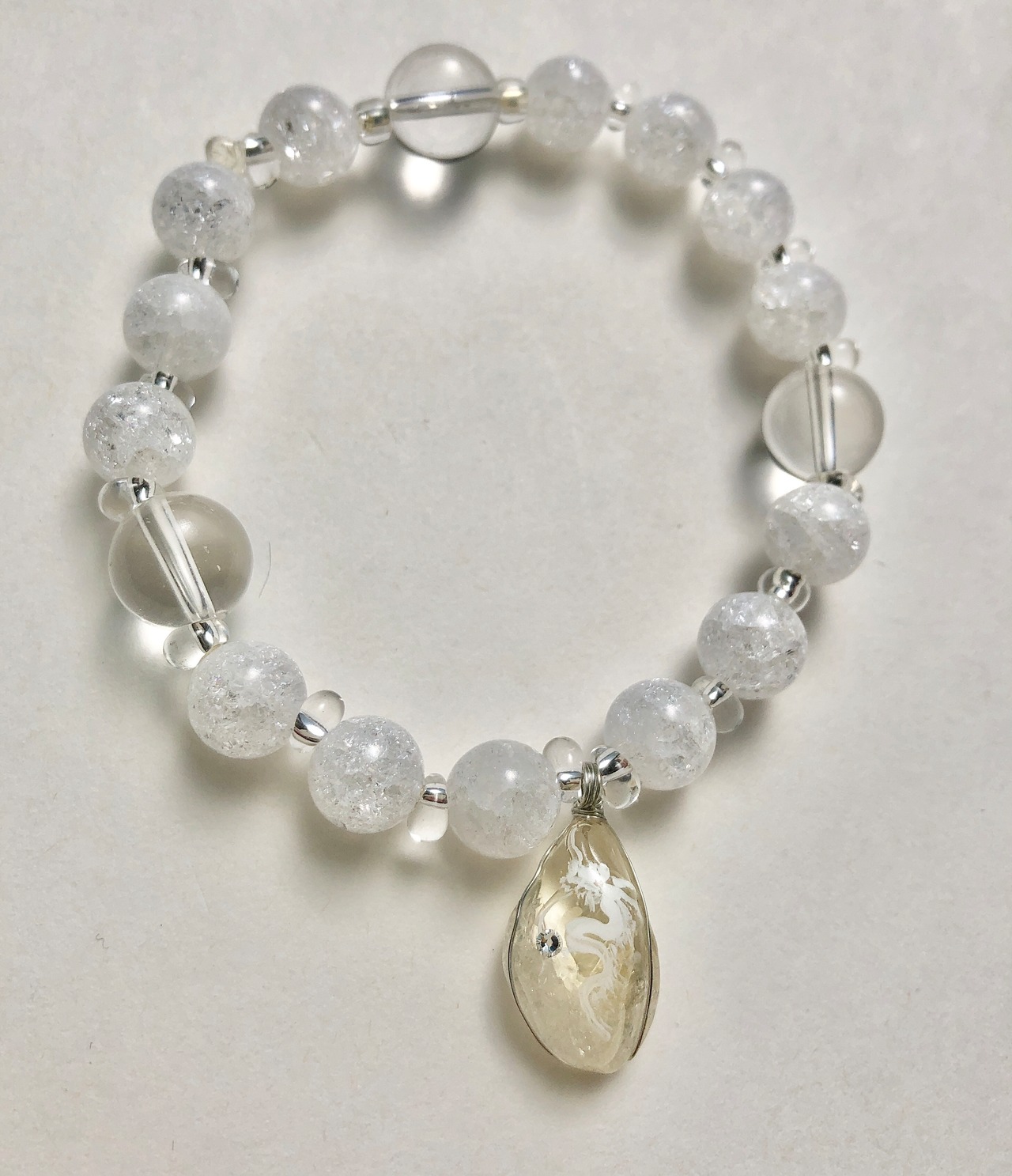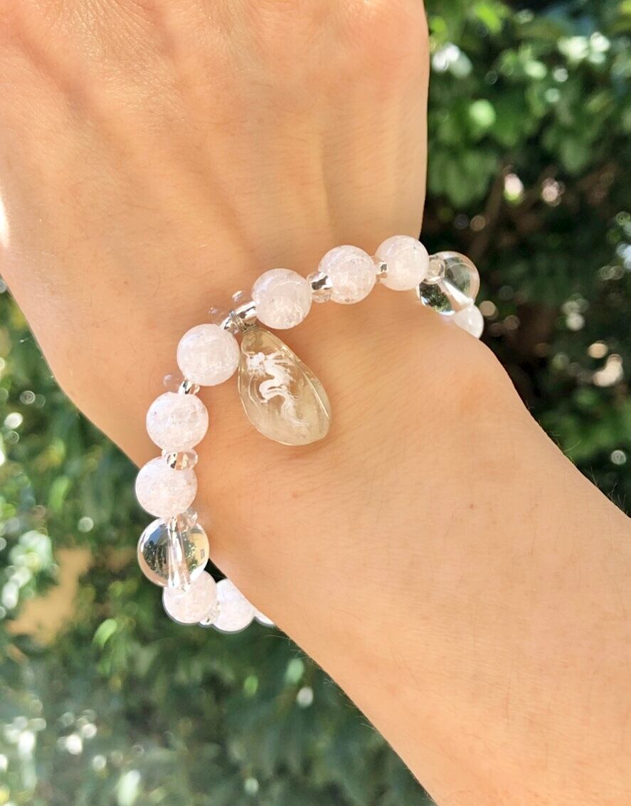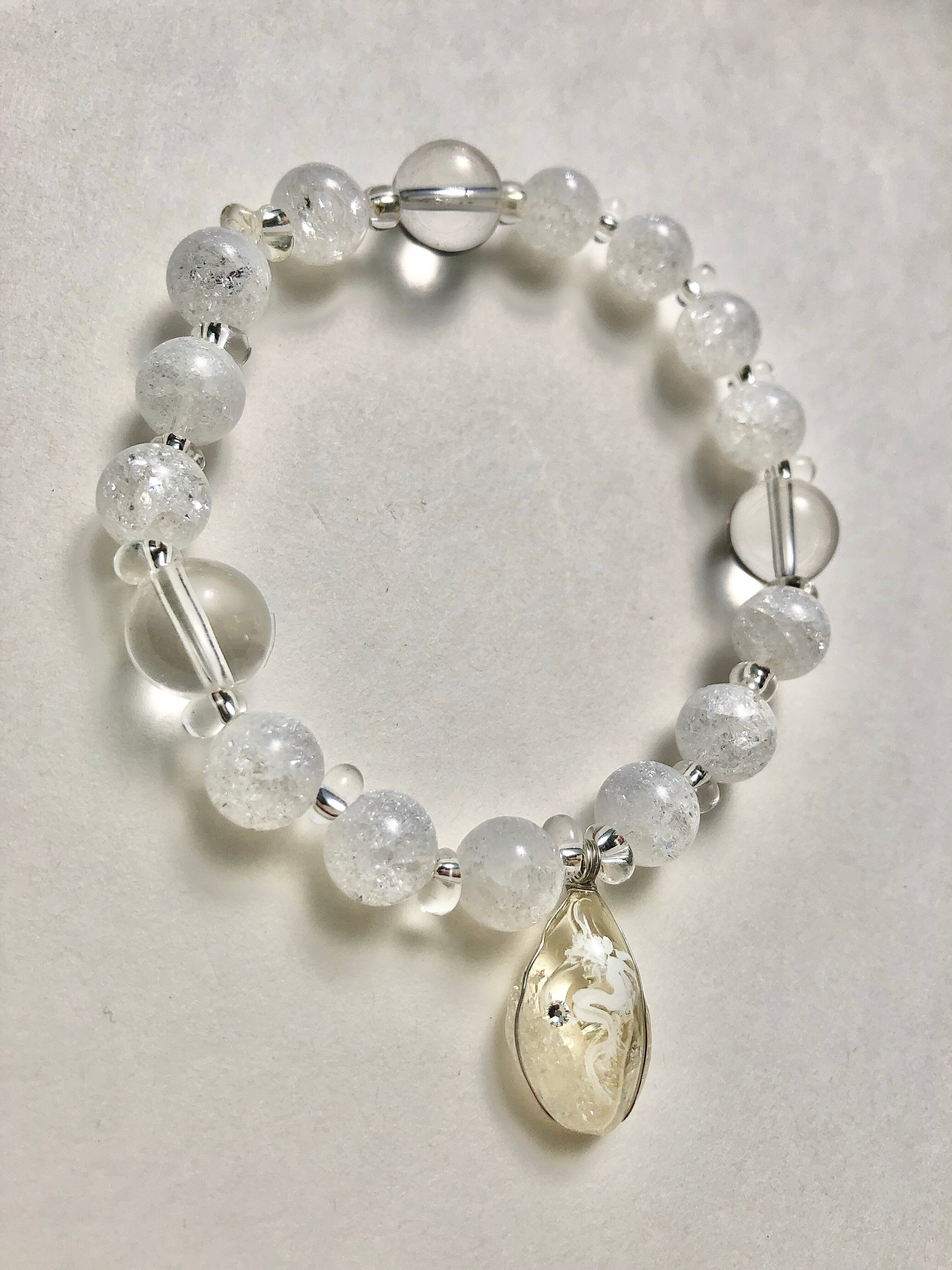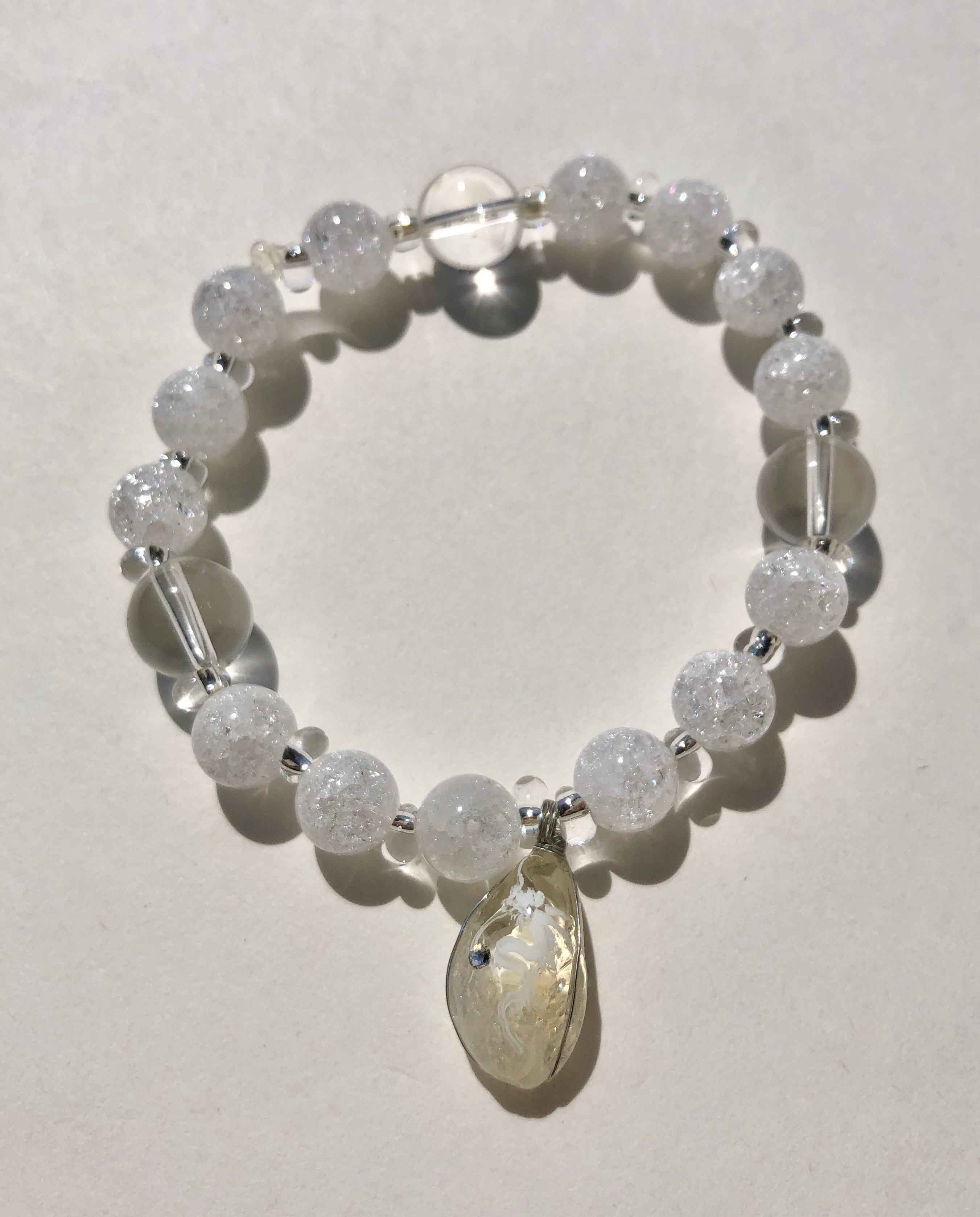 天然石 シトリン白龍 水晶&クラック水晶ブレスレット