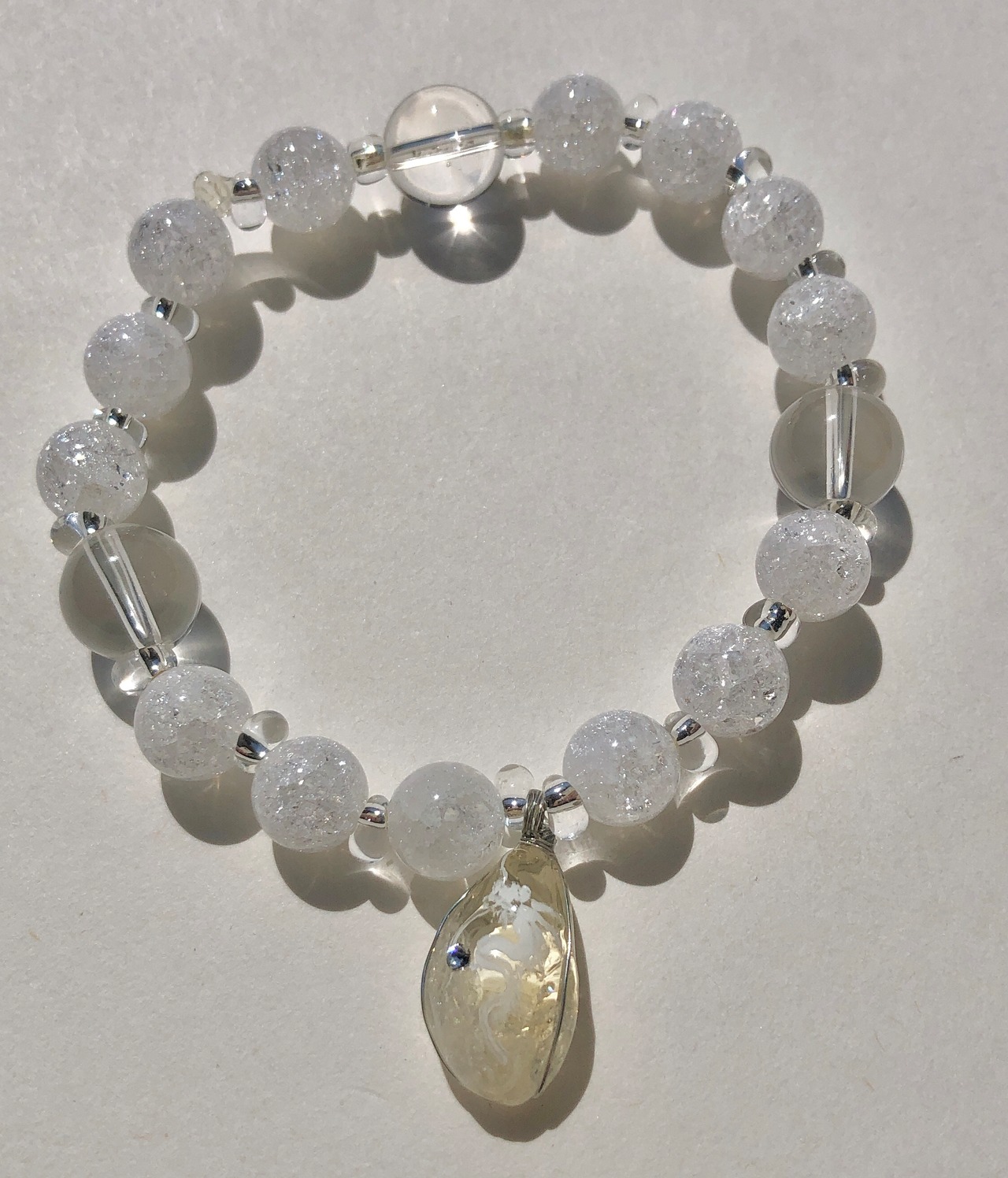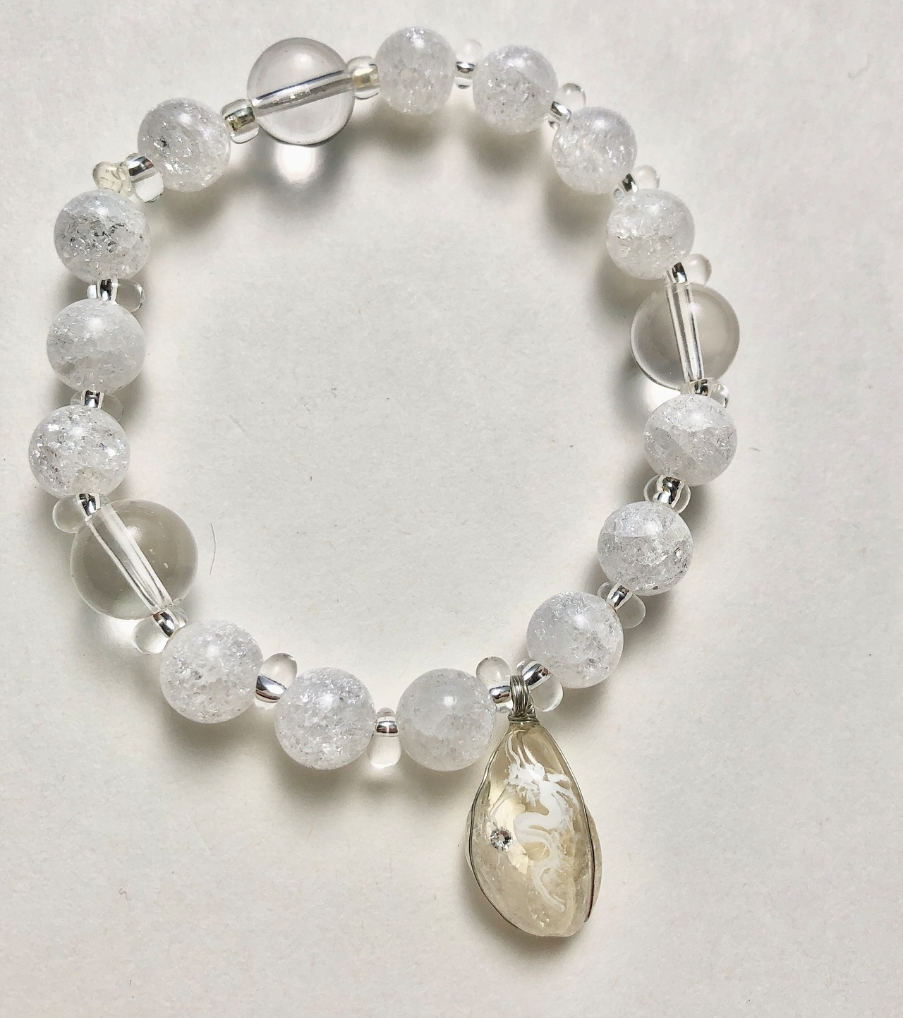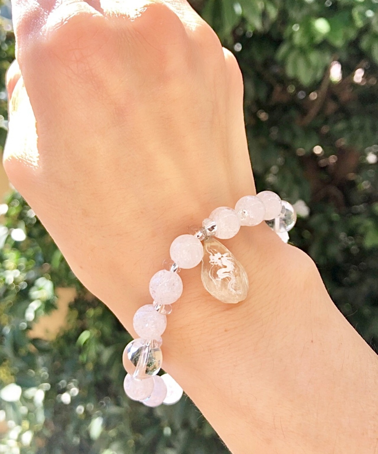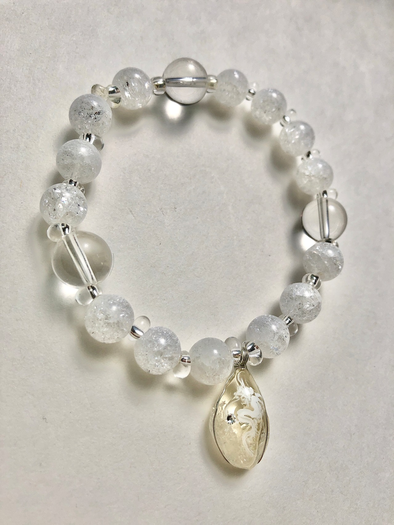 天然石 シトリン白龍 水晶&クラック水晶ブレスレット