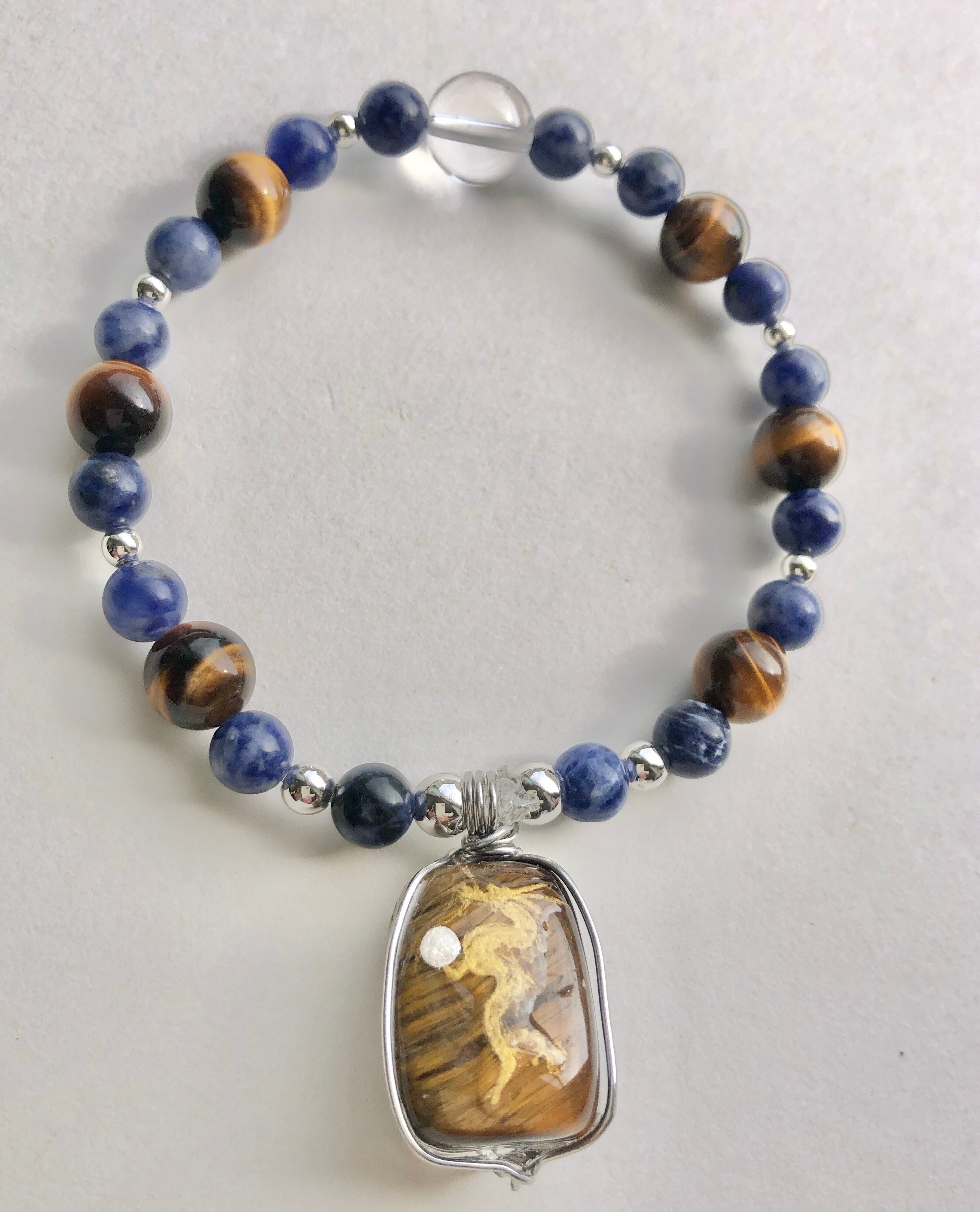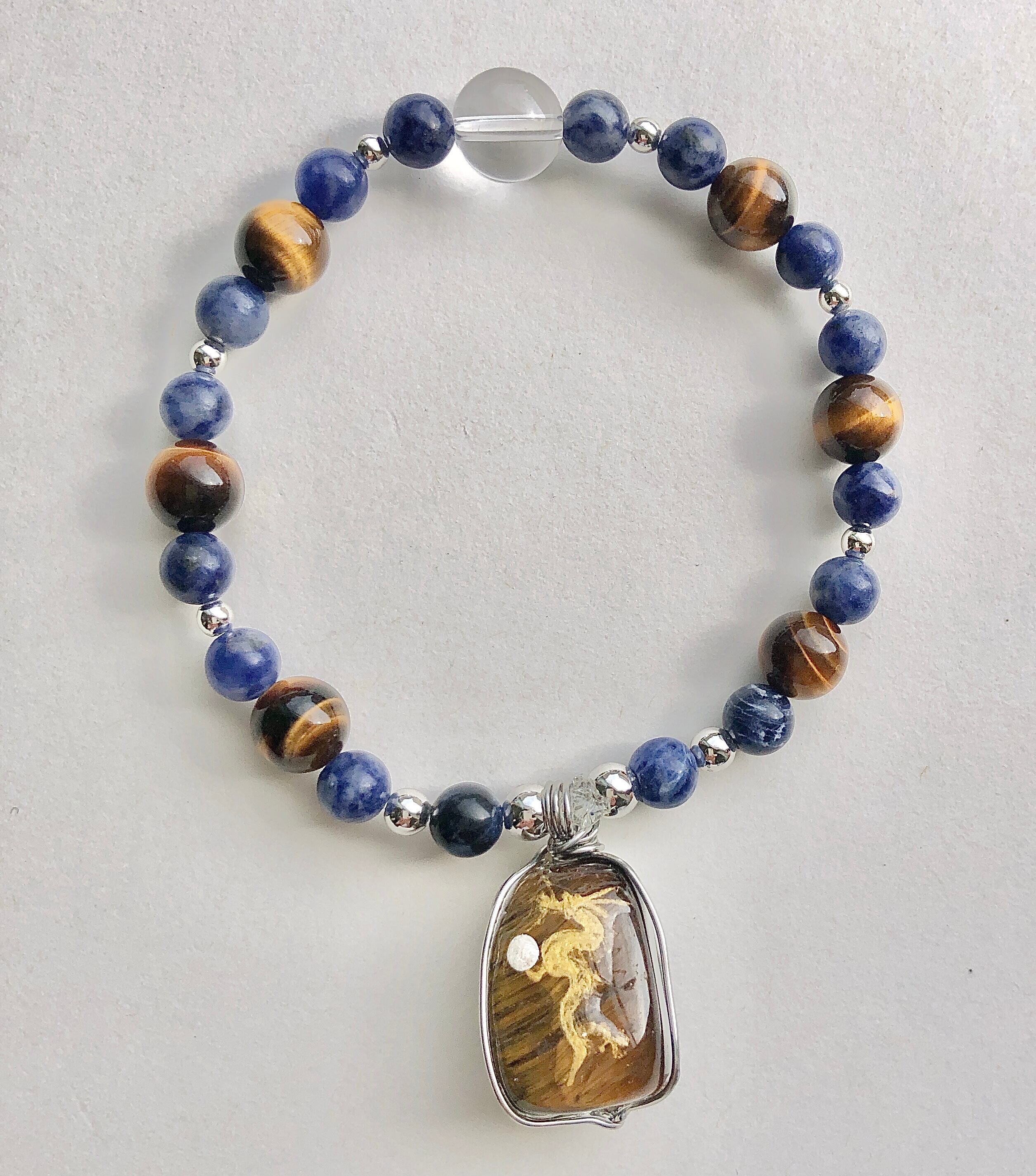 天然石 金龍&白龍タイガーアイ ラピスラズリ&タイガーアイ&水晶 ブレスレット