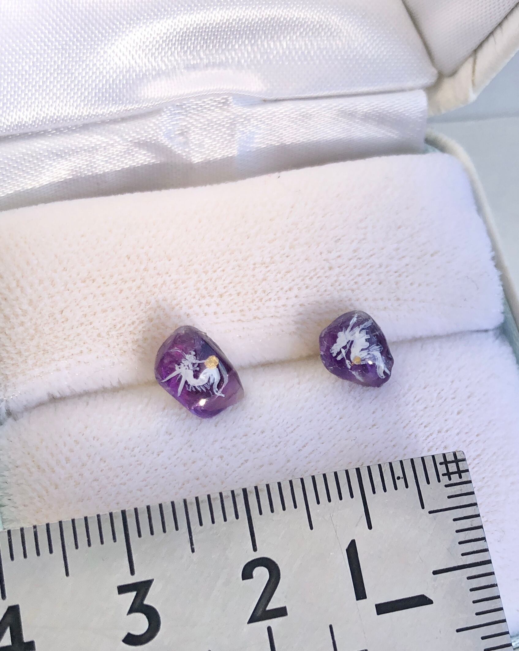 小 天然石 アメジスト(紫水晶) 白龍ピアス