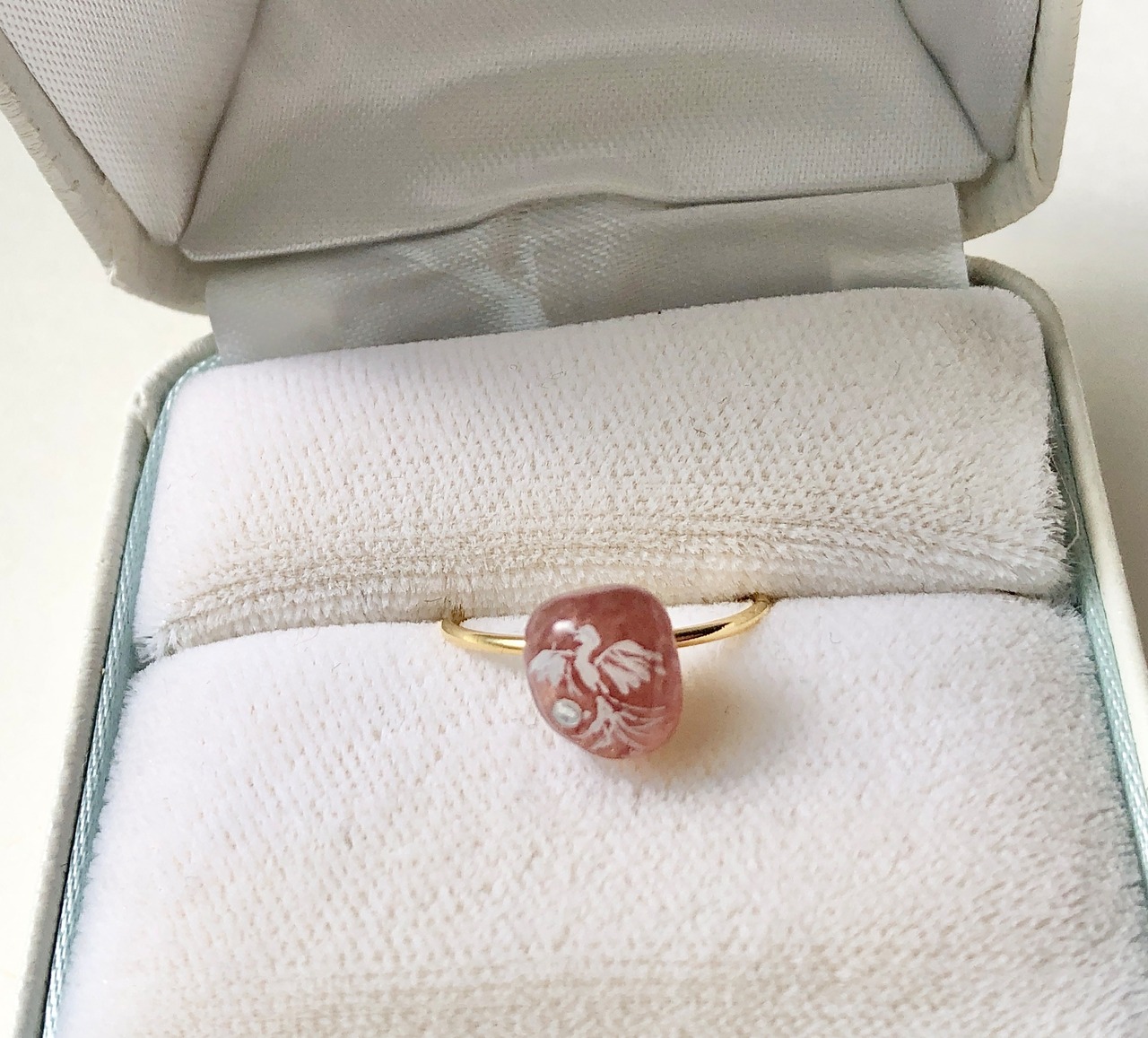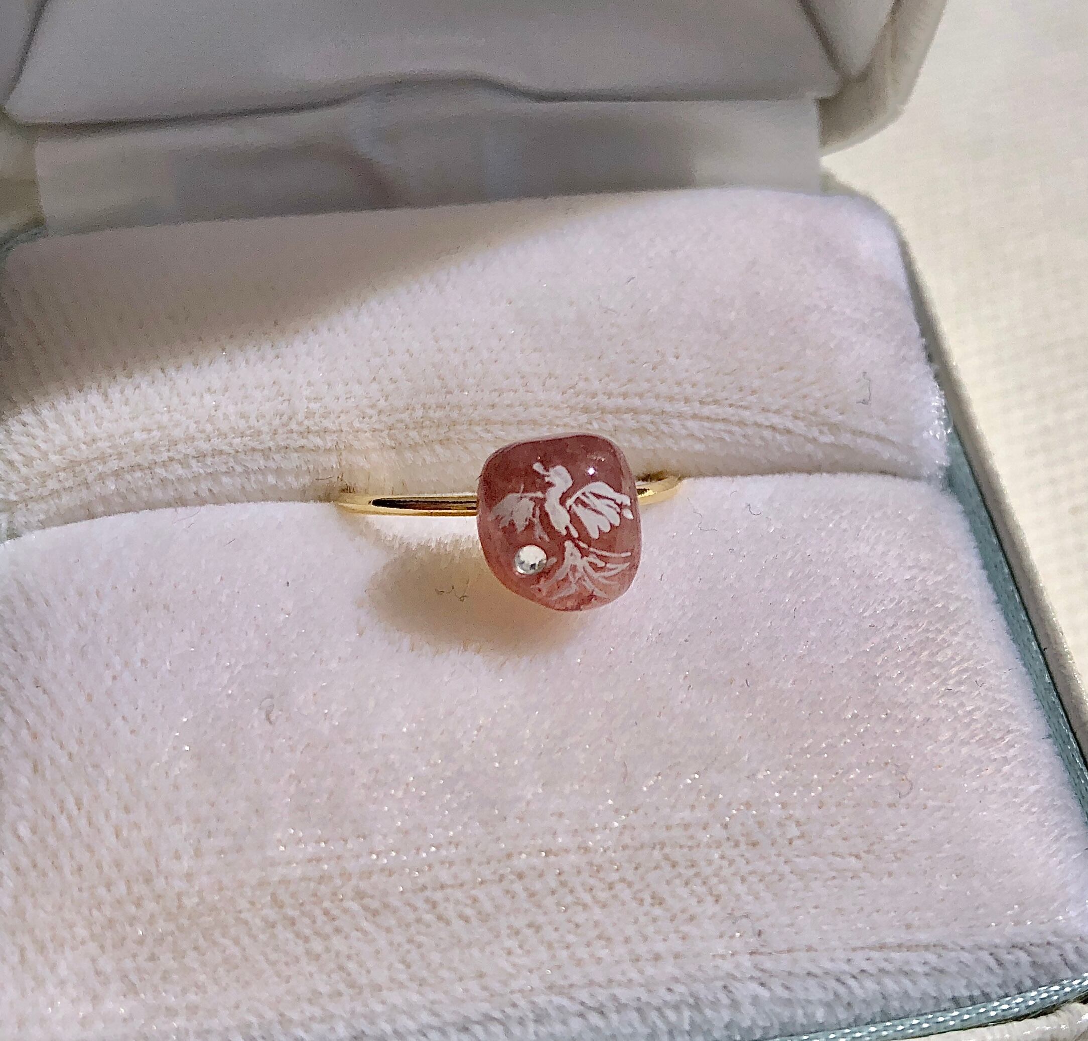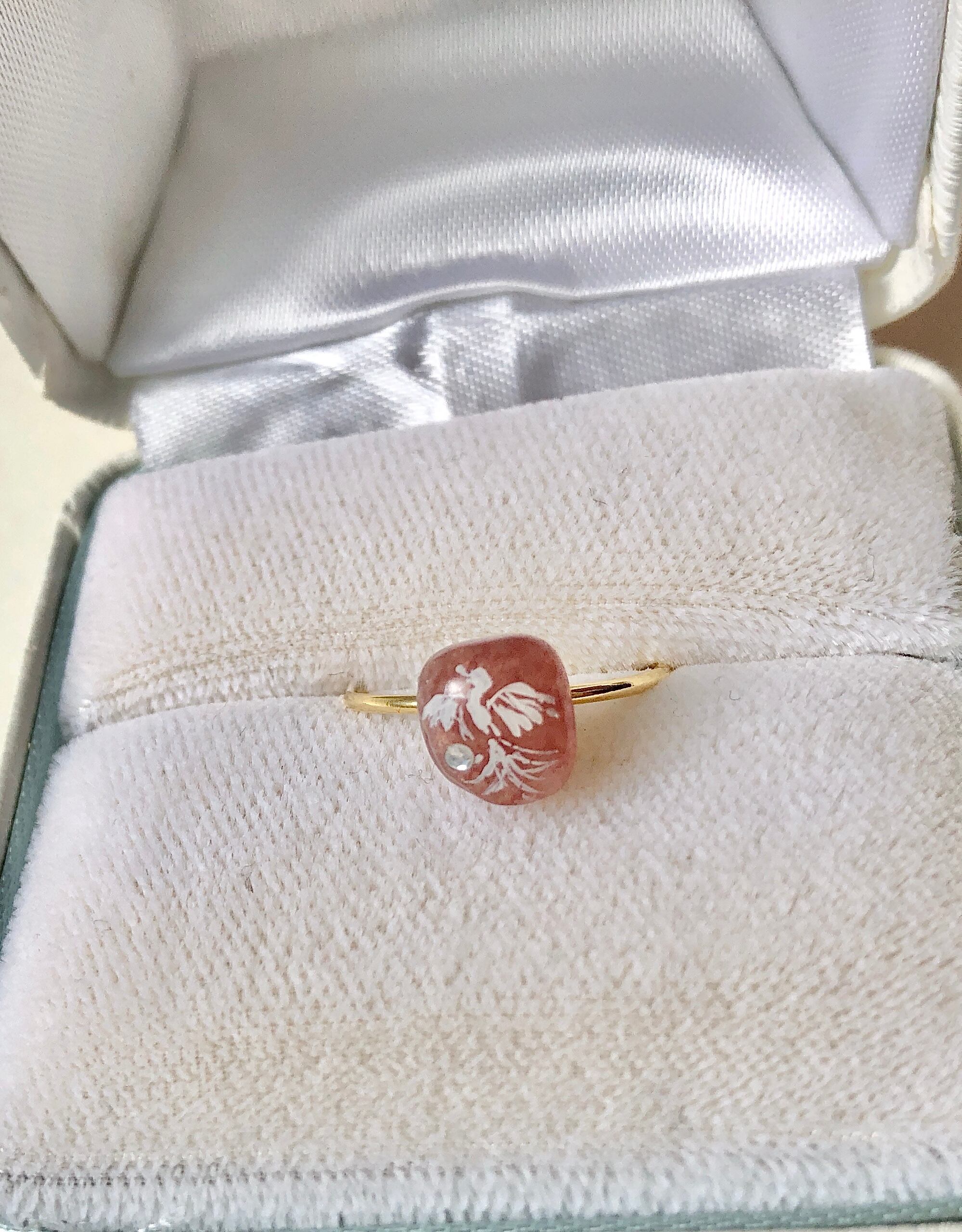 小天然石 ストロベリークォーツ 白鳳凰指輪。