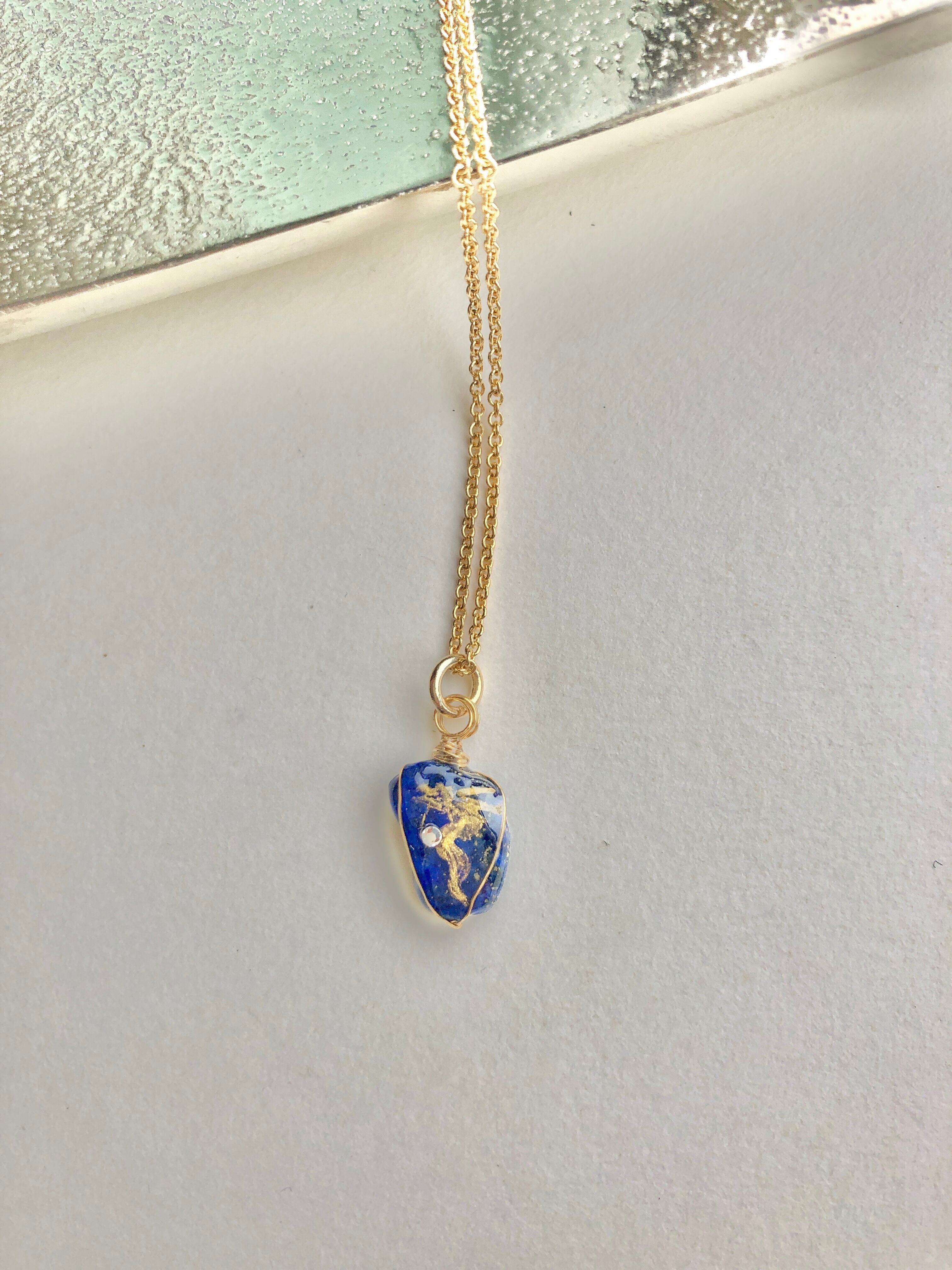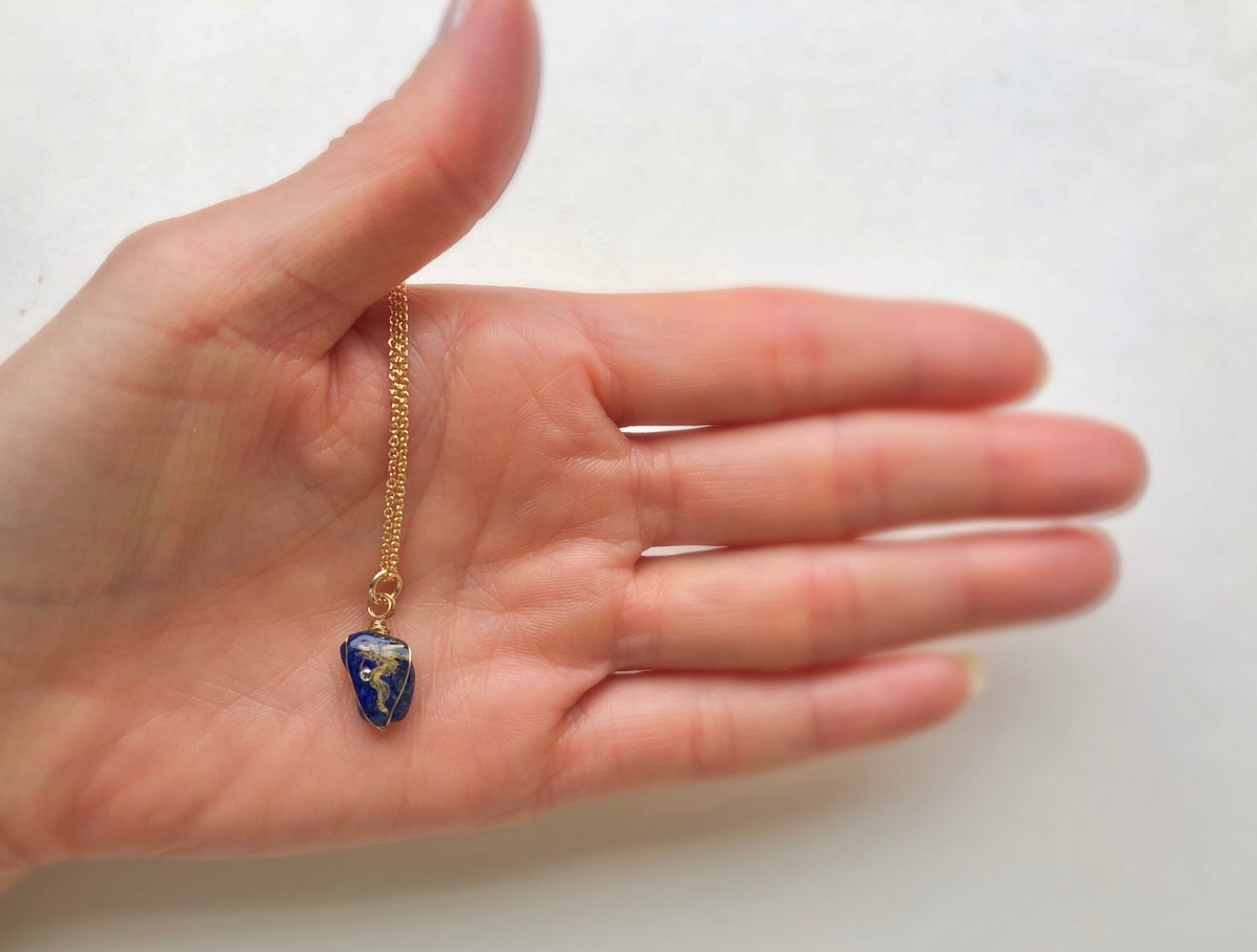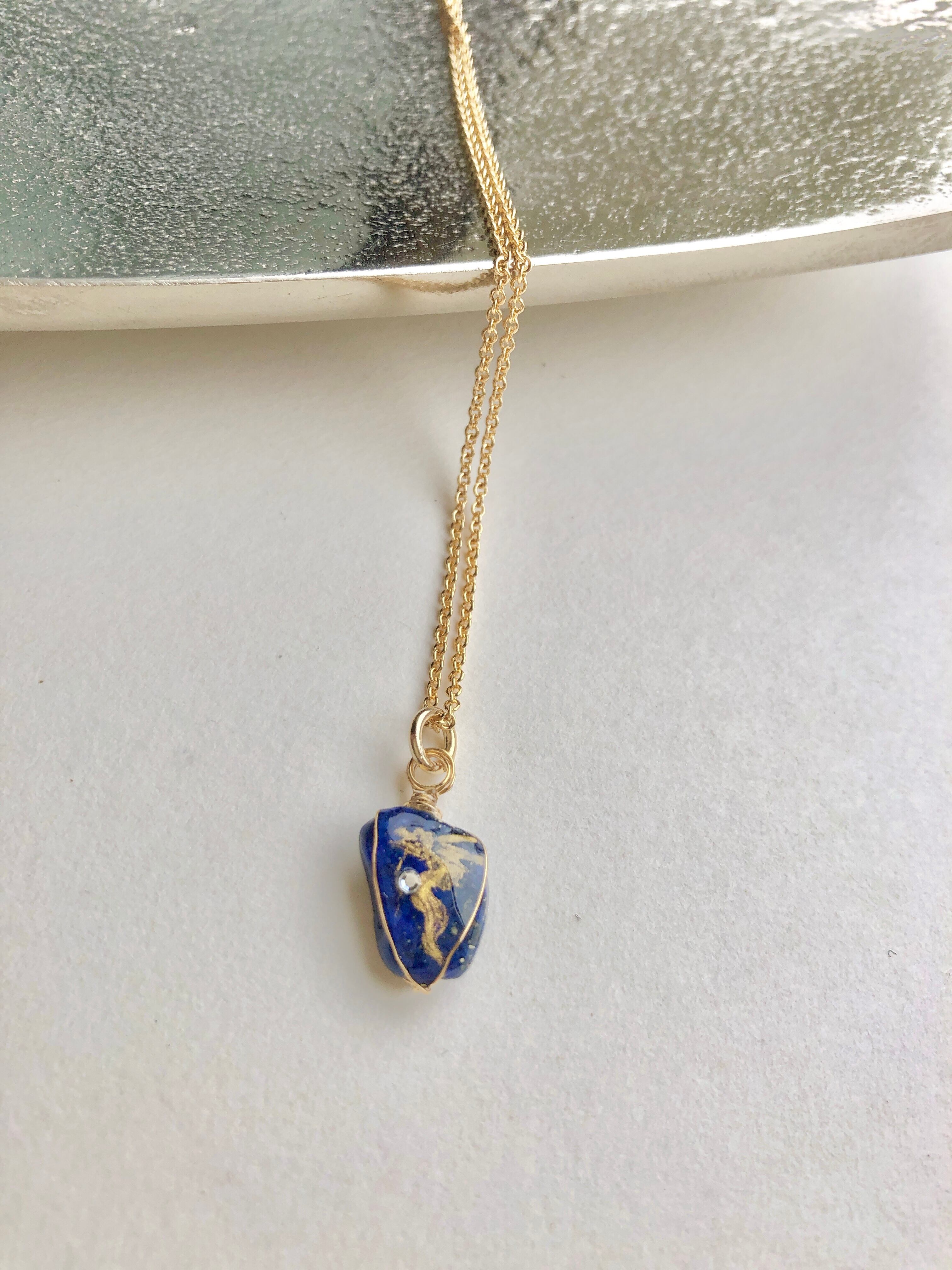 小 ラピスラズリ天然石 金龍ネックレス K16GP