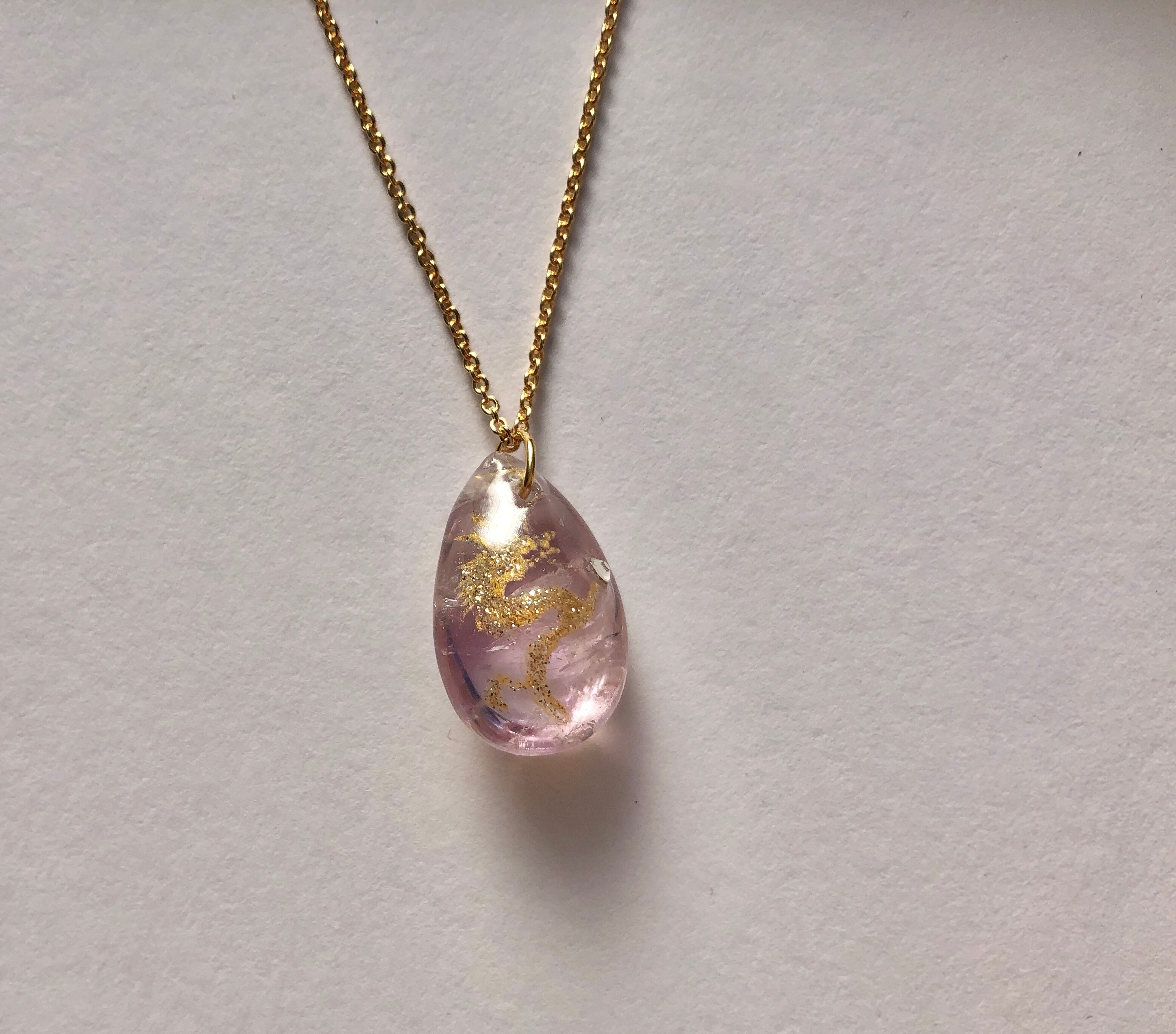 天然石 アメジスト(紫水晶) 雫 金龍神ネックレス