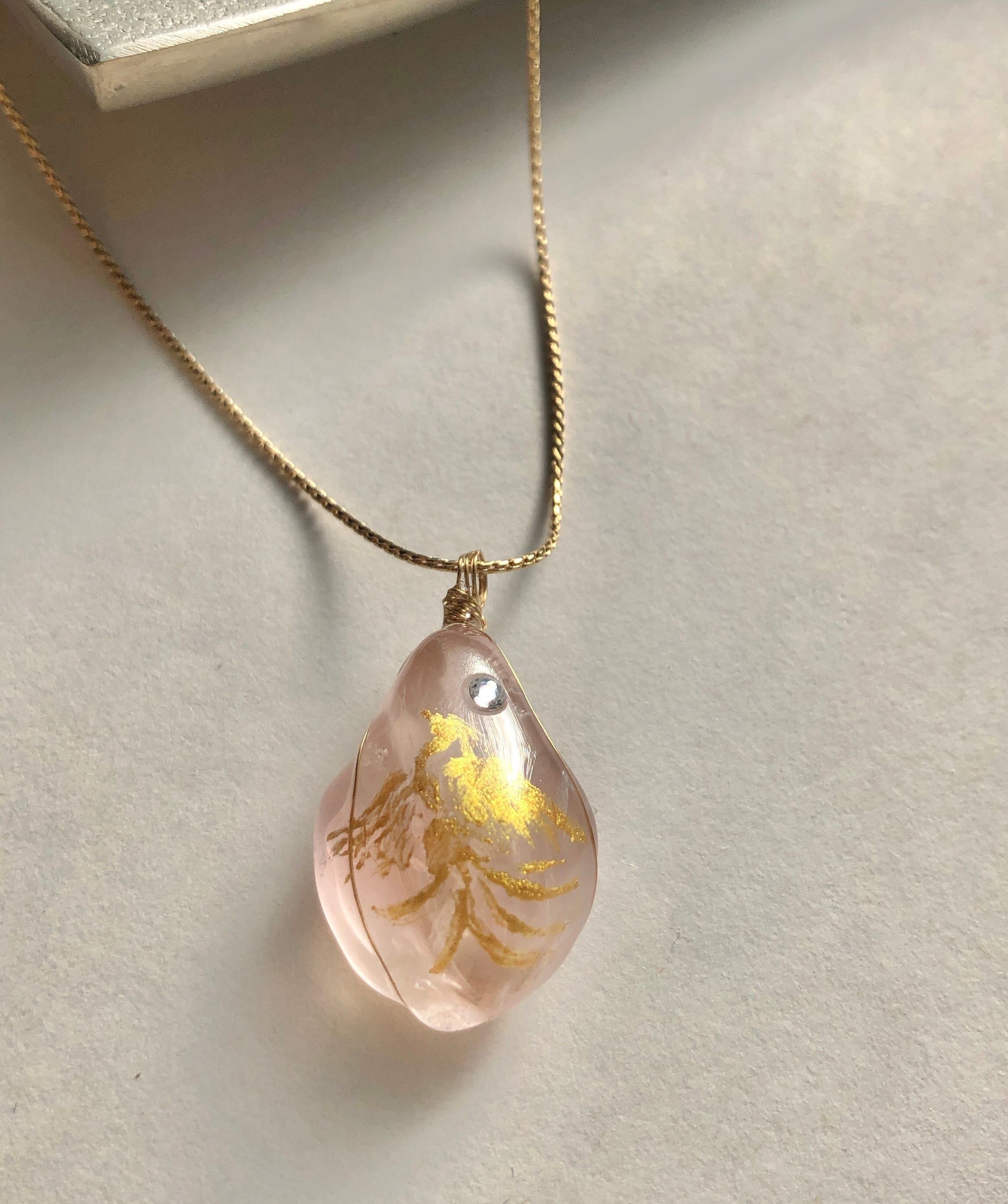 そんな淡い優しいピンクのローズクォーツに描かれた金色に輝く金の鳳凰