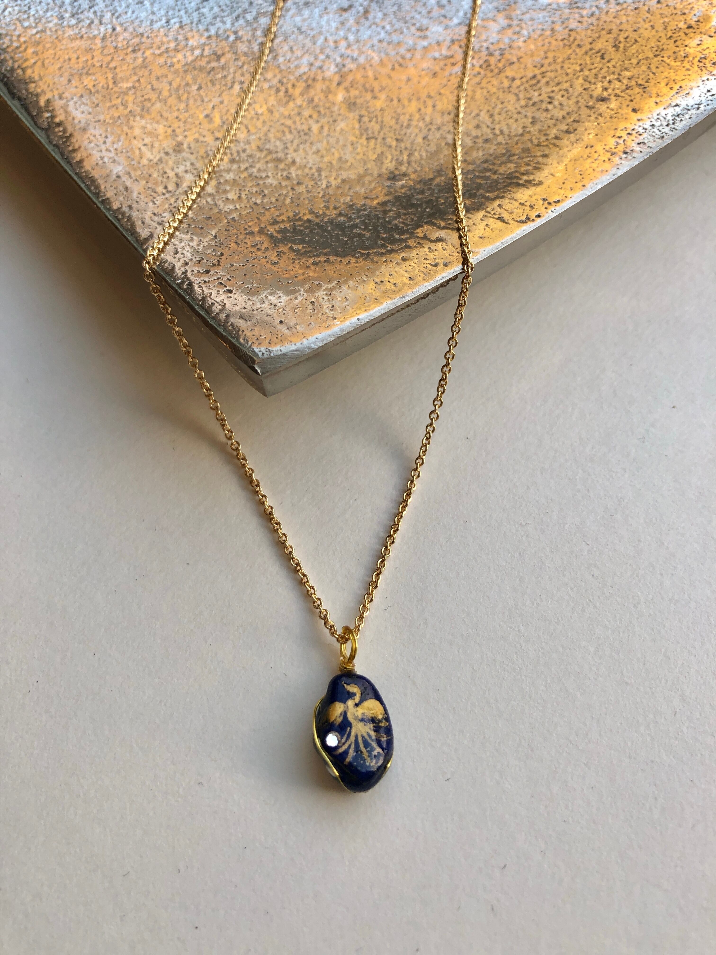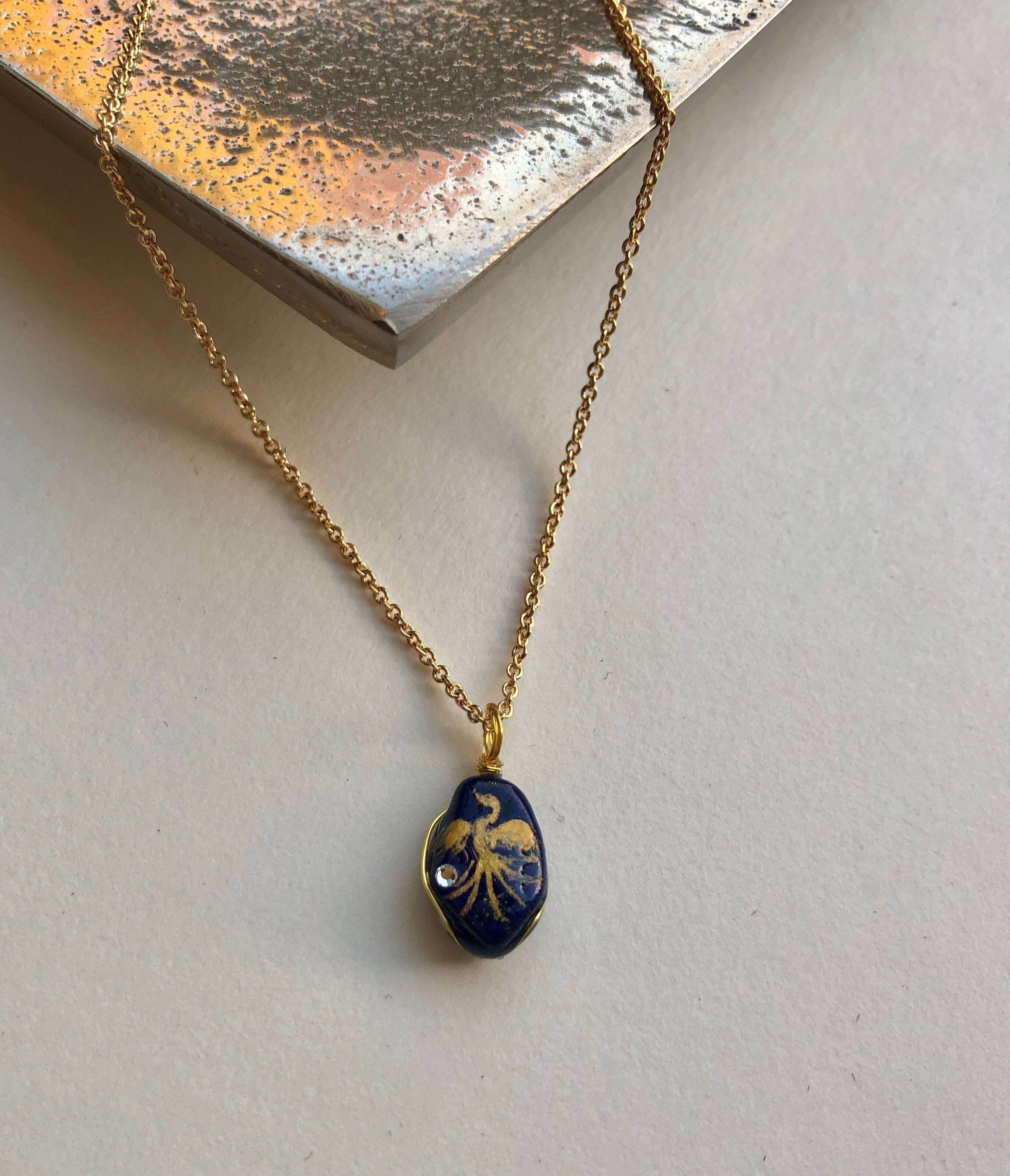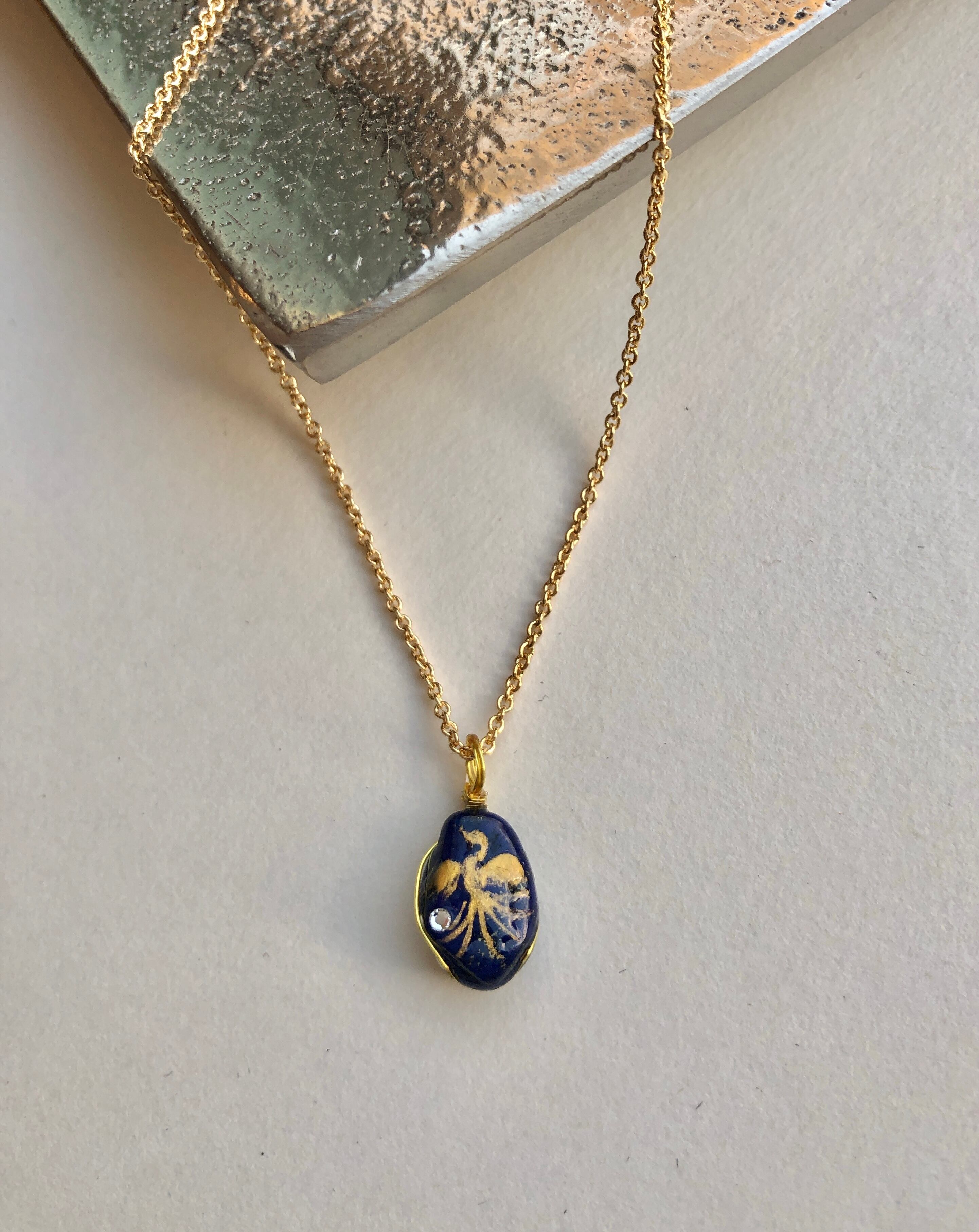 小 ラピスラズリ天然石 金鳳凰ネックレス