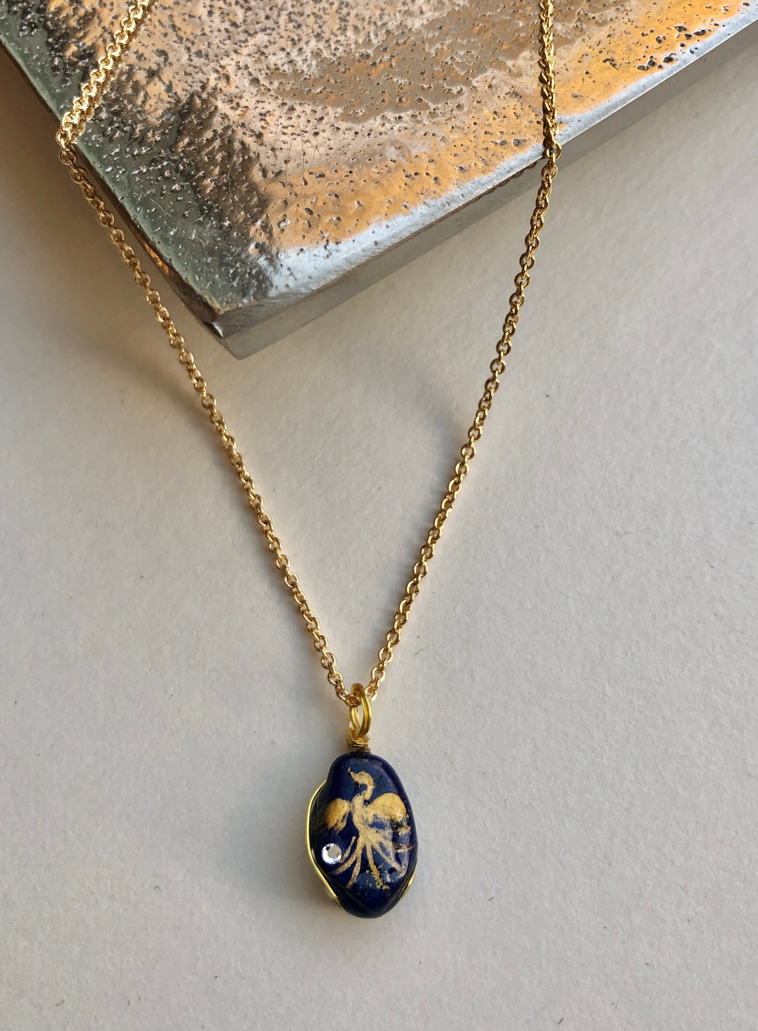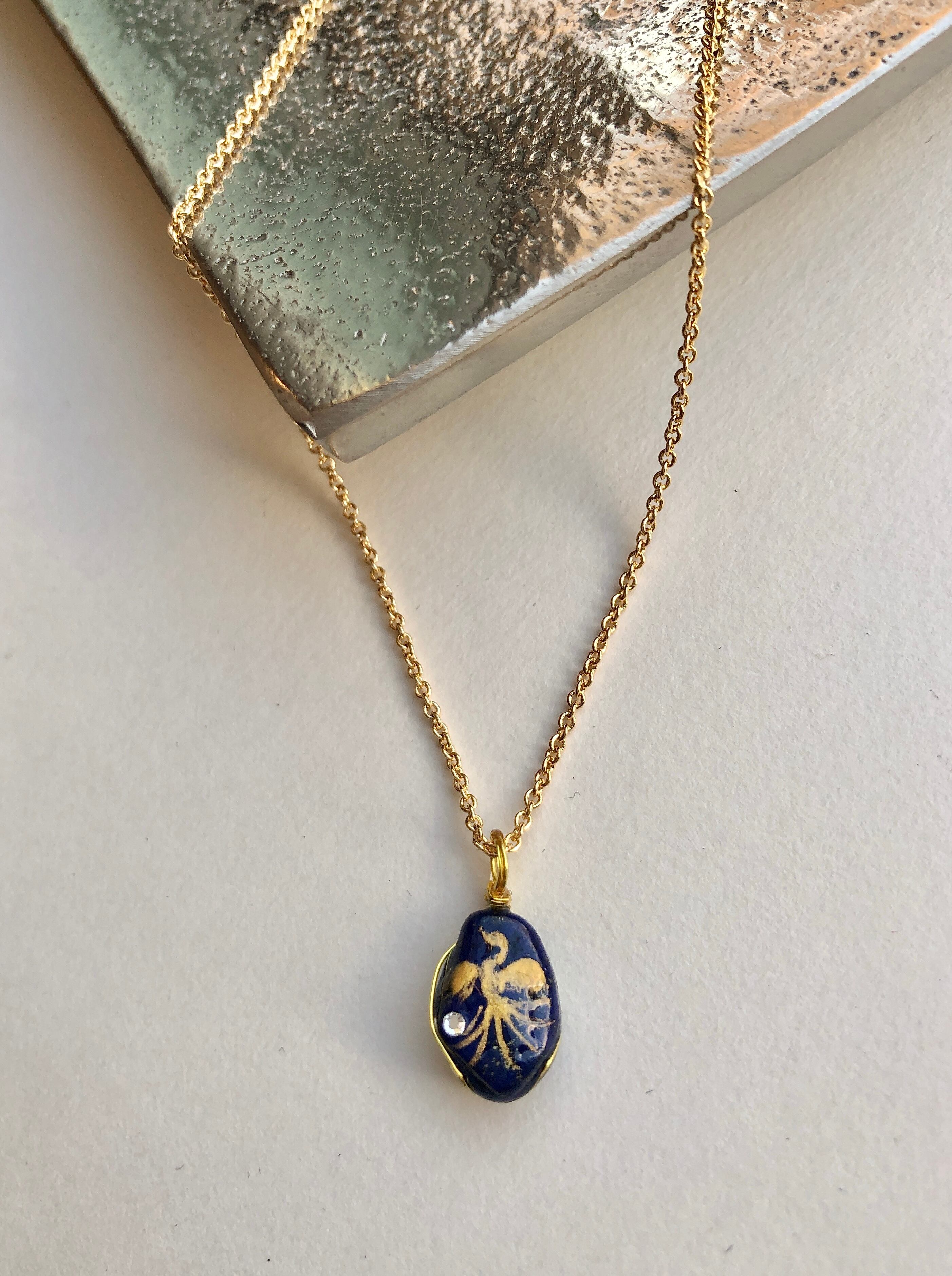 そんな美しいブルーの小さなラピスラズリに描かれた小さな金の鳳凰。