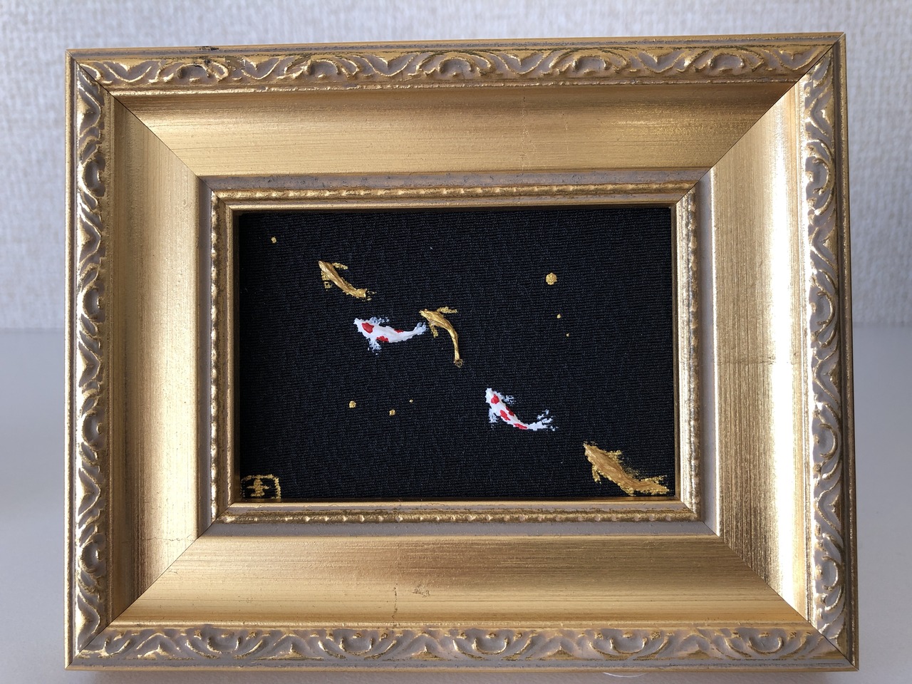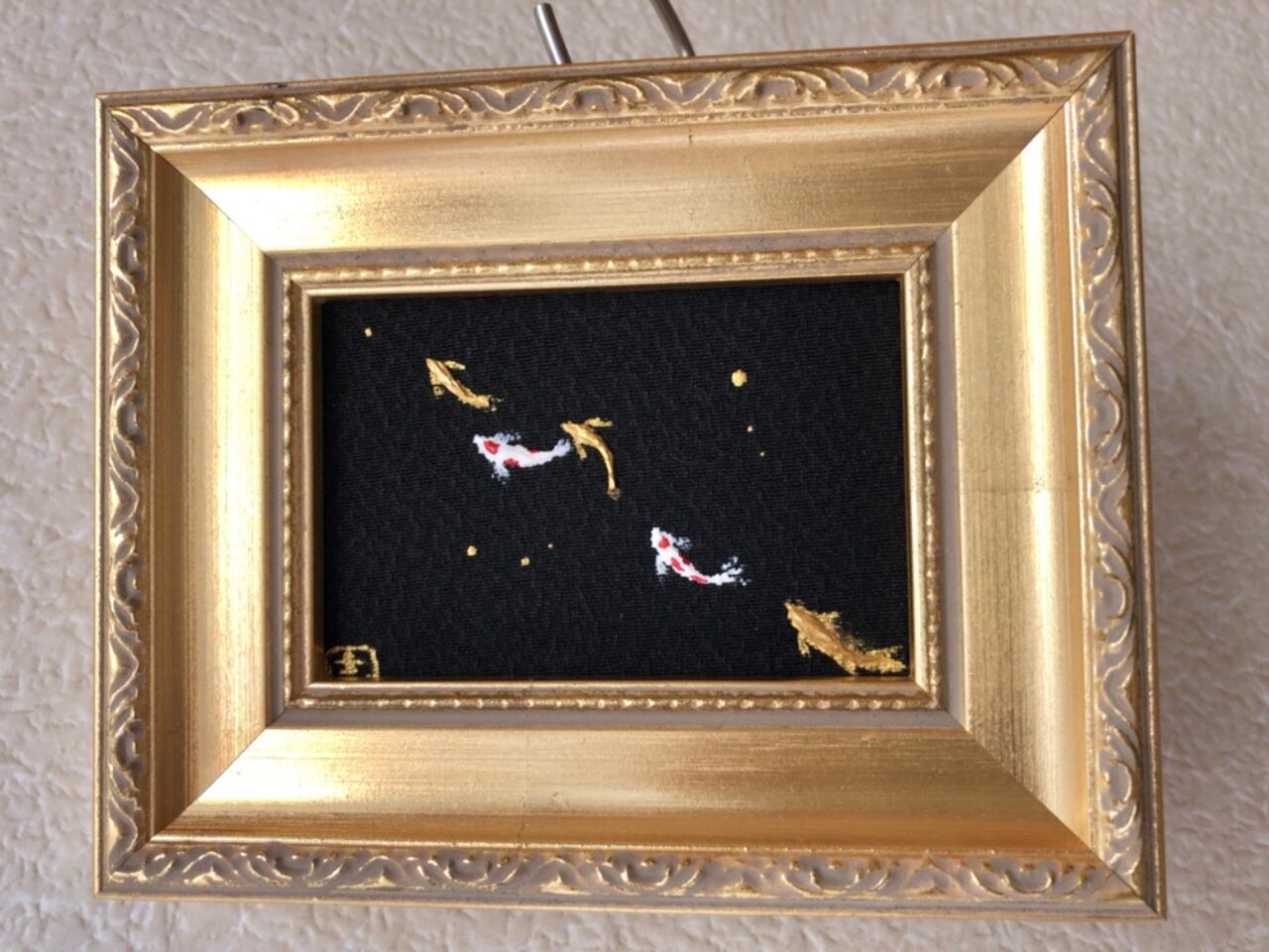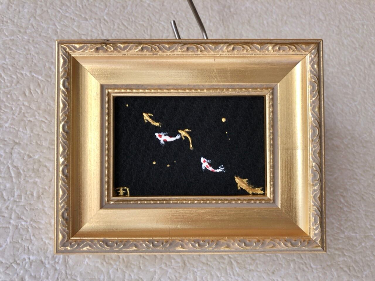 黒の正絹に半立体に浮かび上がる5匹の錦鯉