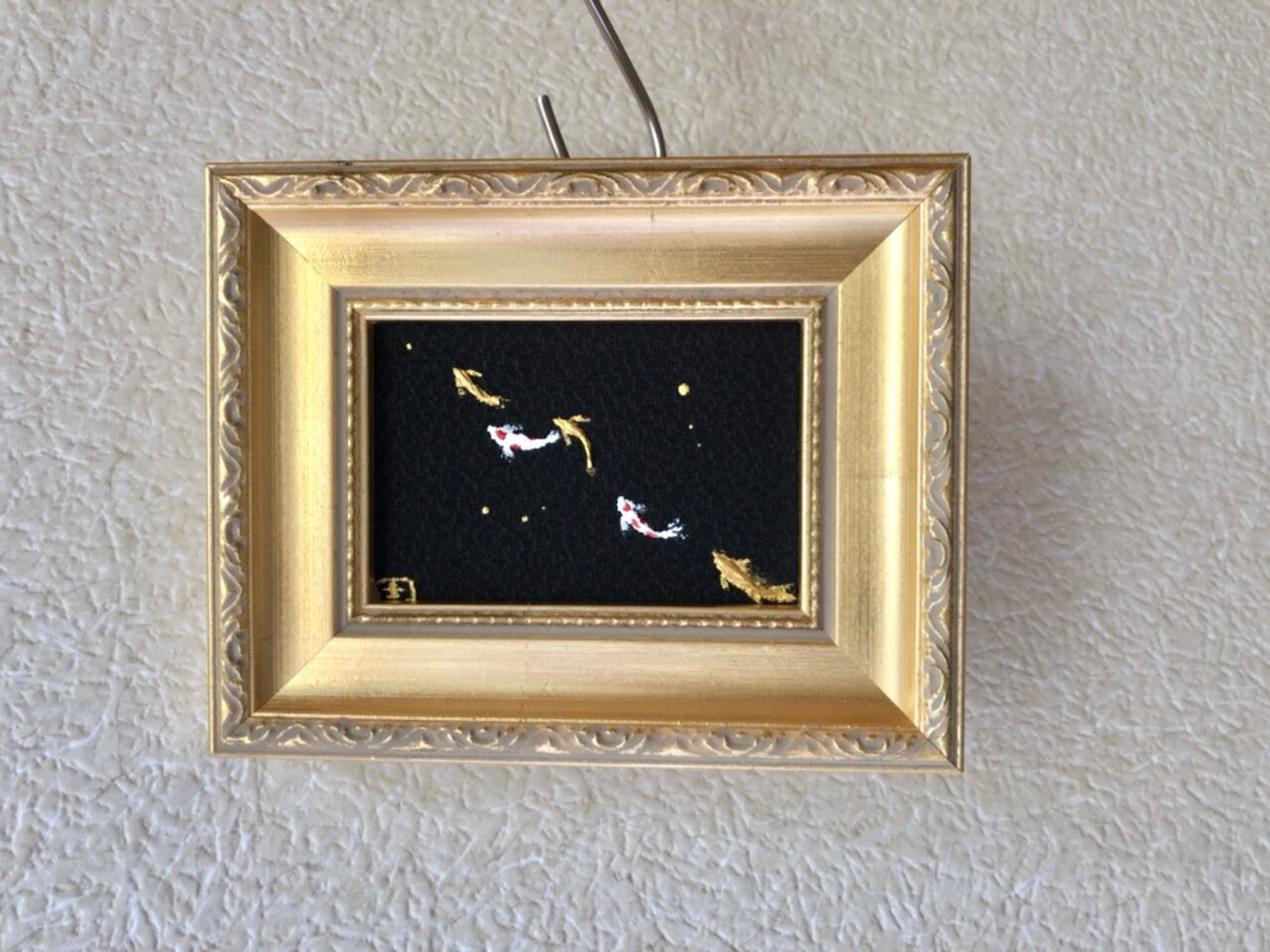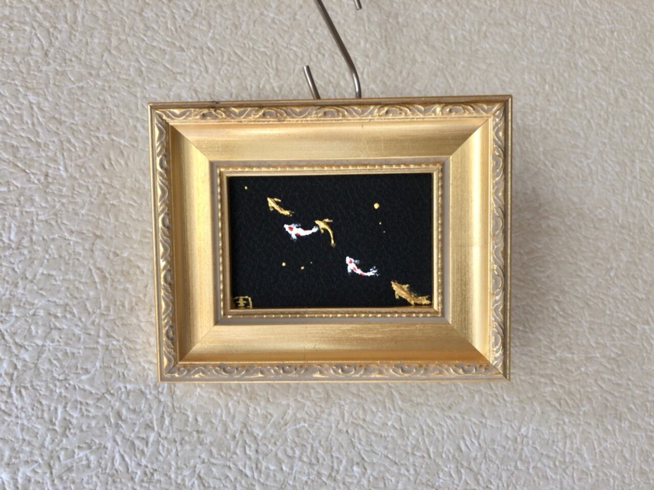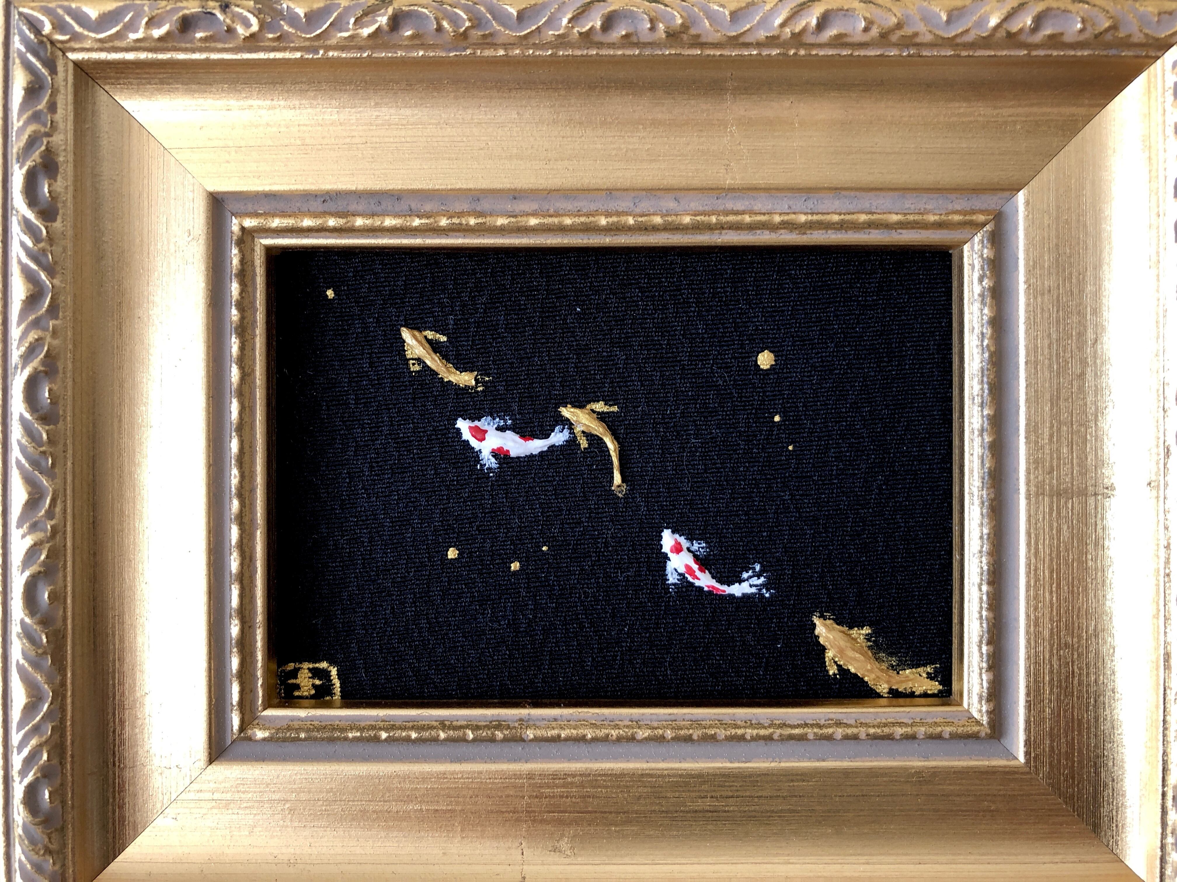 黒の正絹に半立体に浮かび上がる5匹の錦鯉