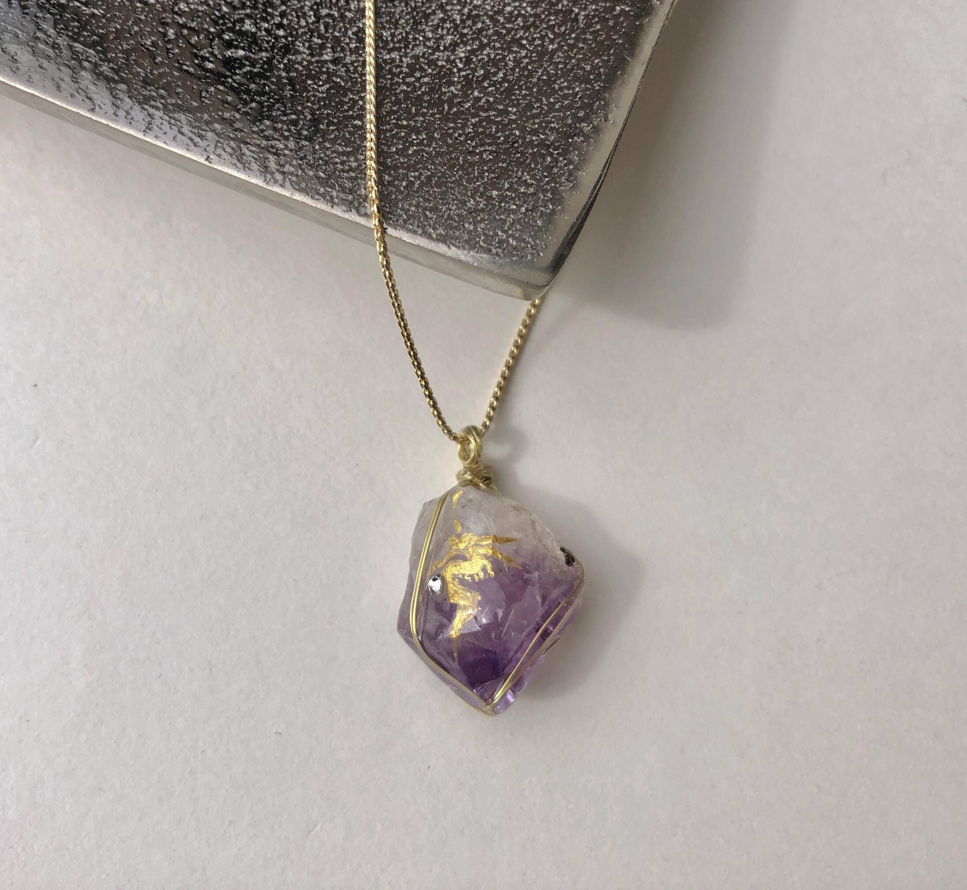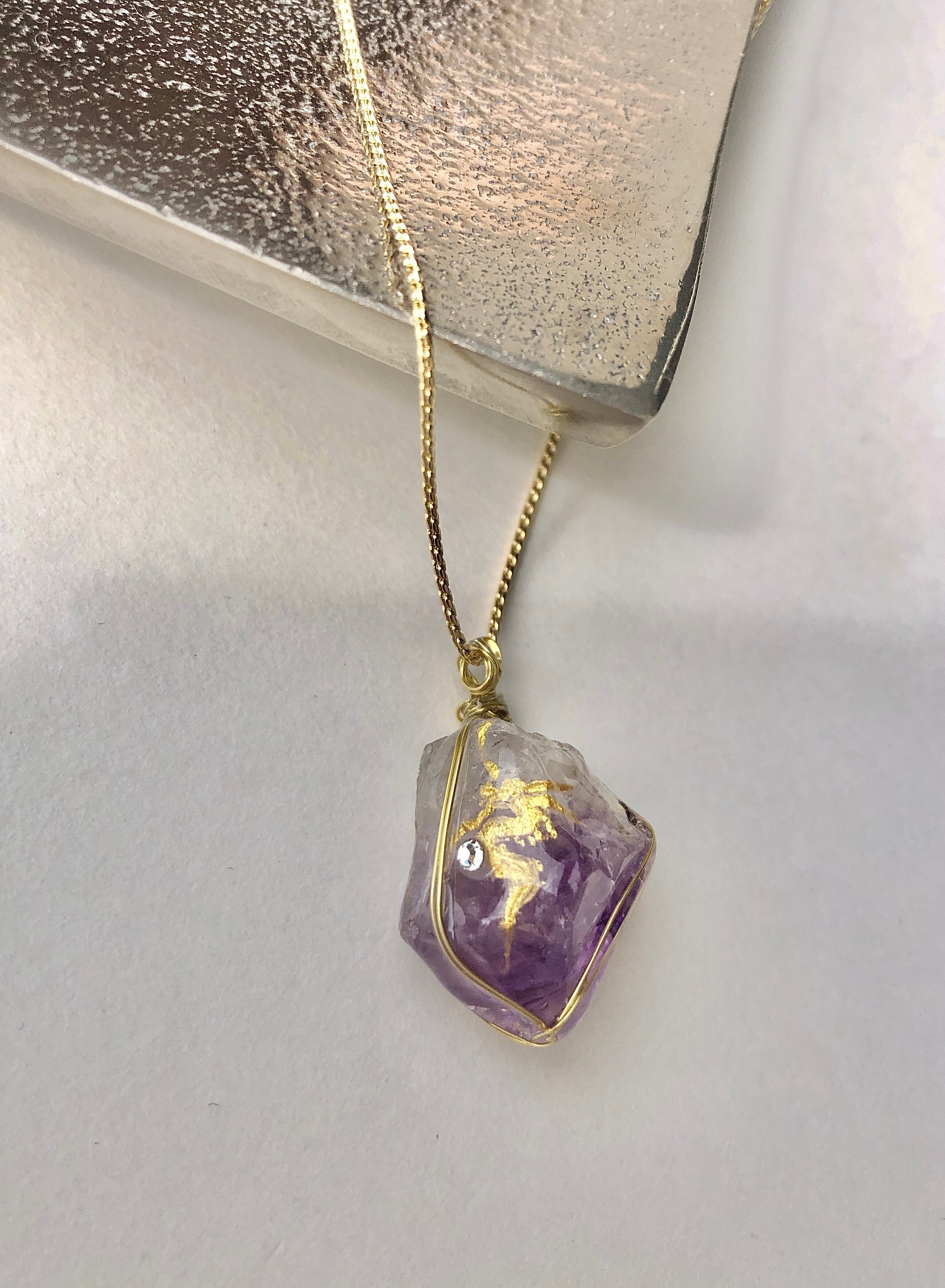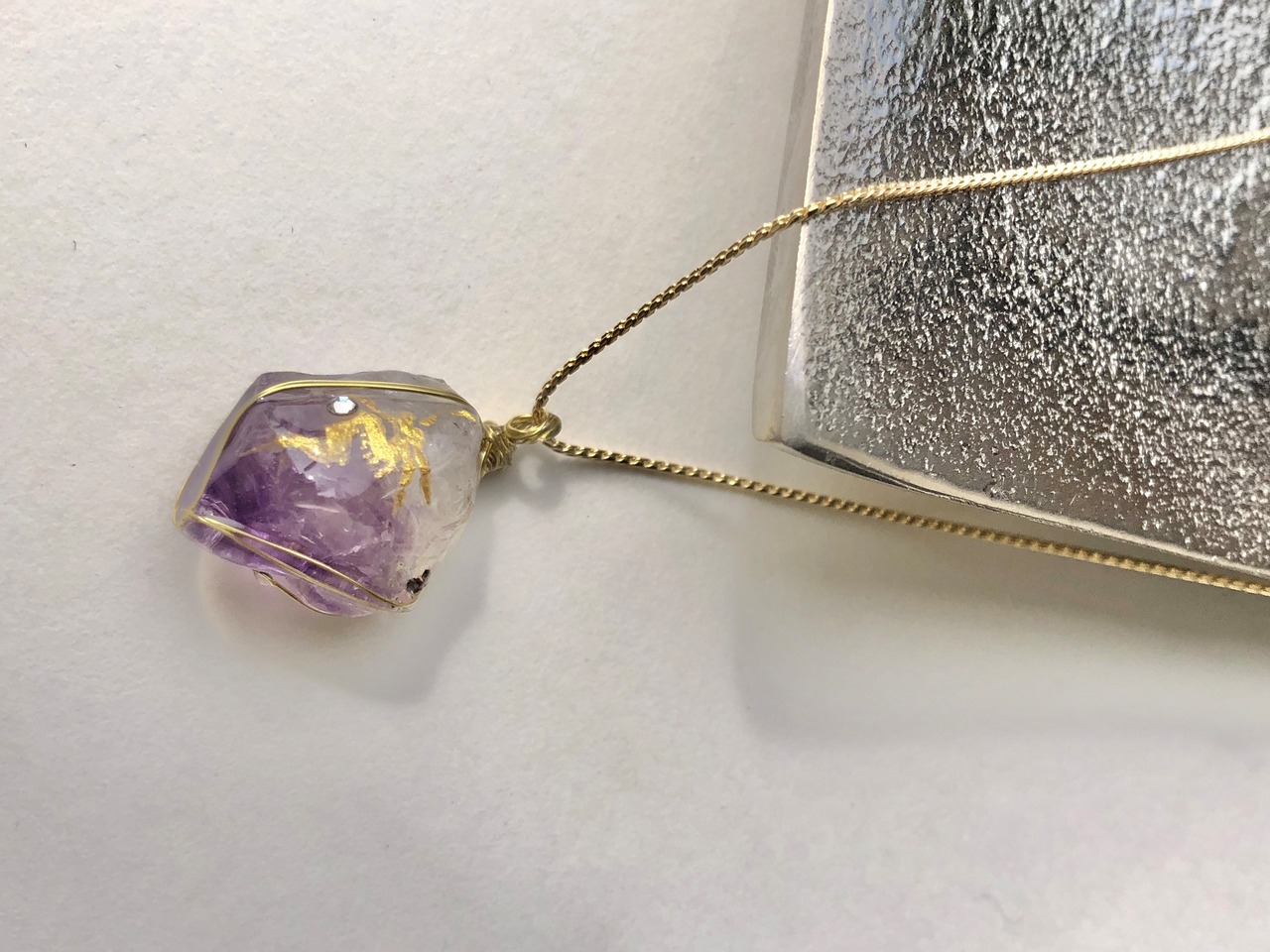 天然石 アメジスト(紫水晶)原石 金龍神ネックレス