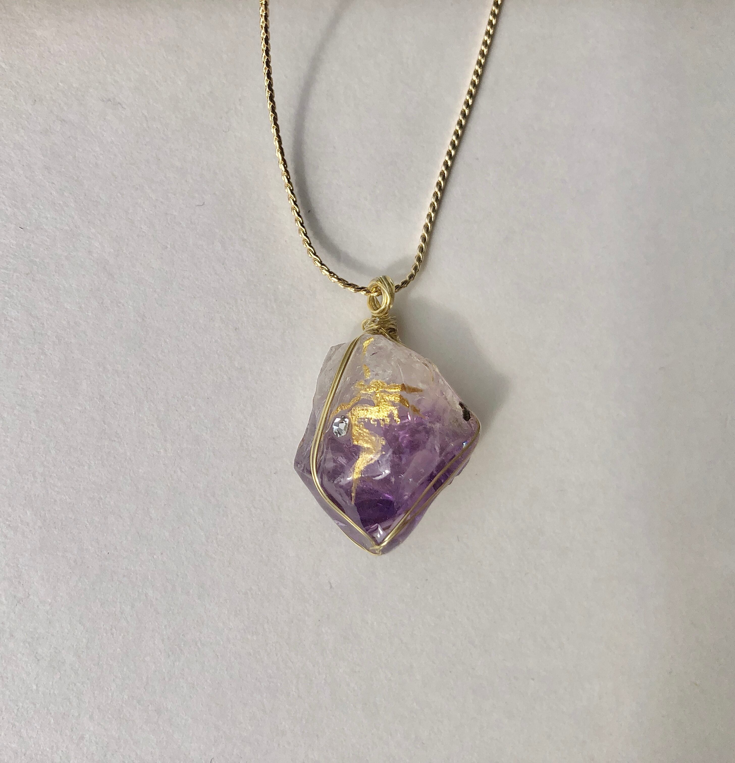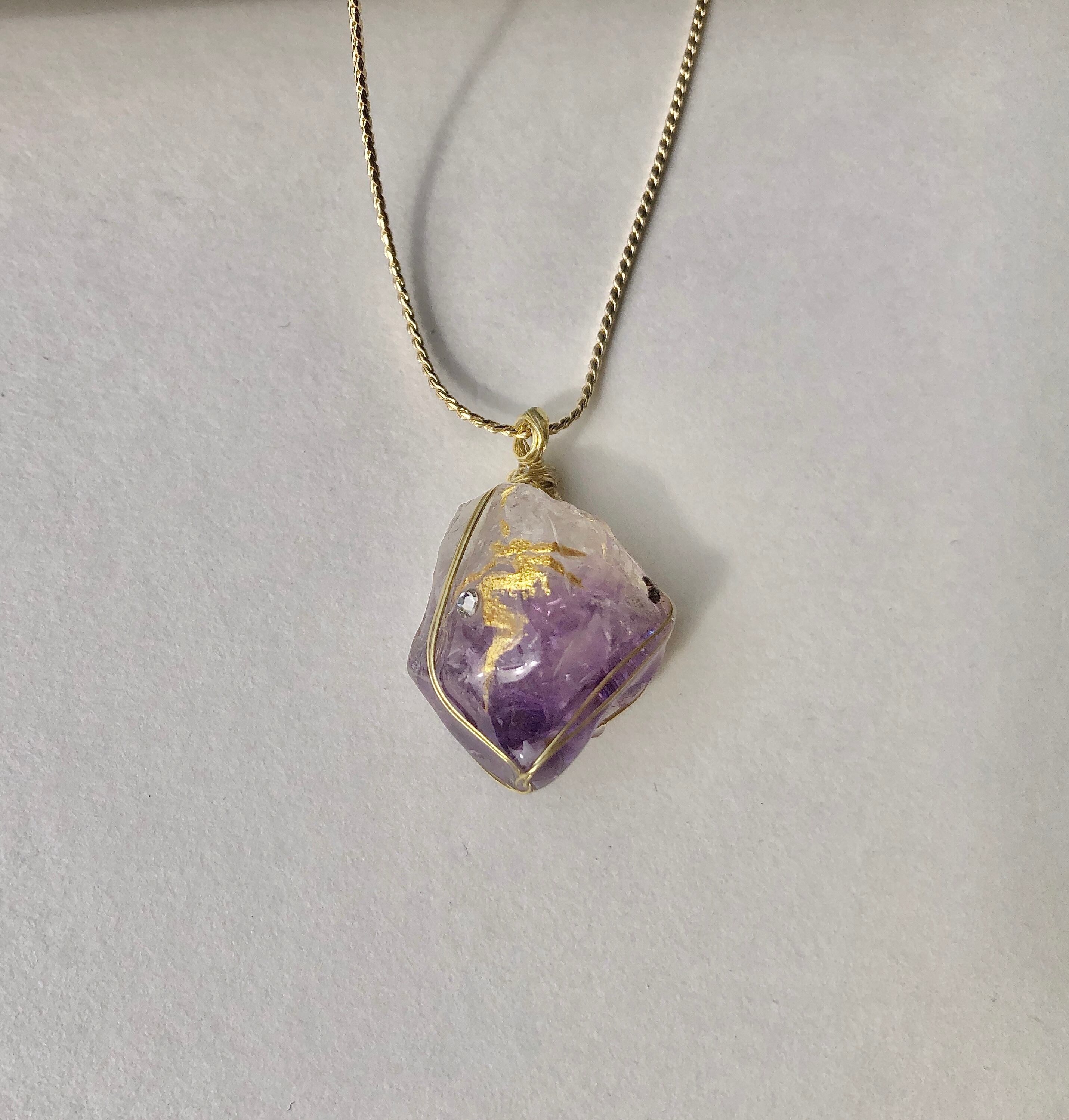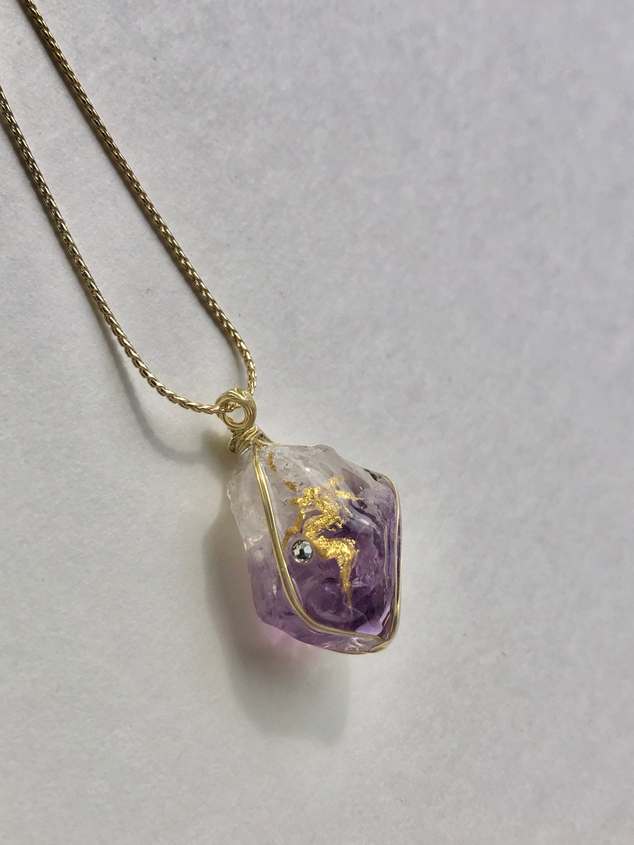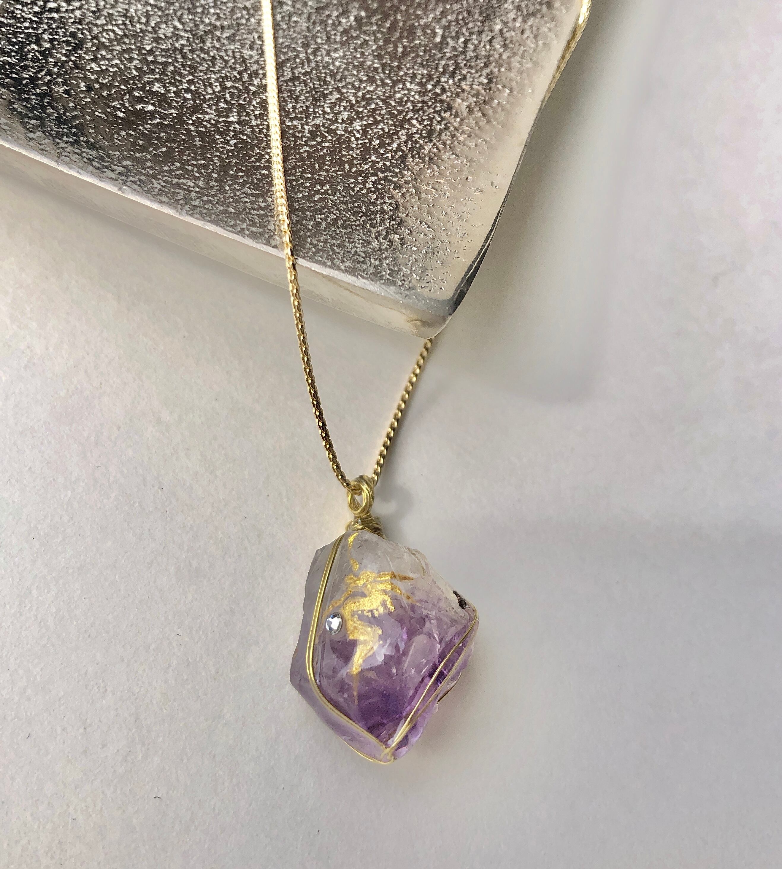天然石 アメジスト(紫水晶)原石 金龍神ネックレス
