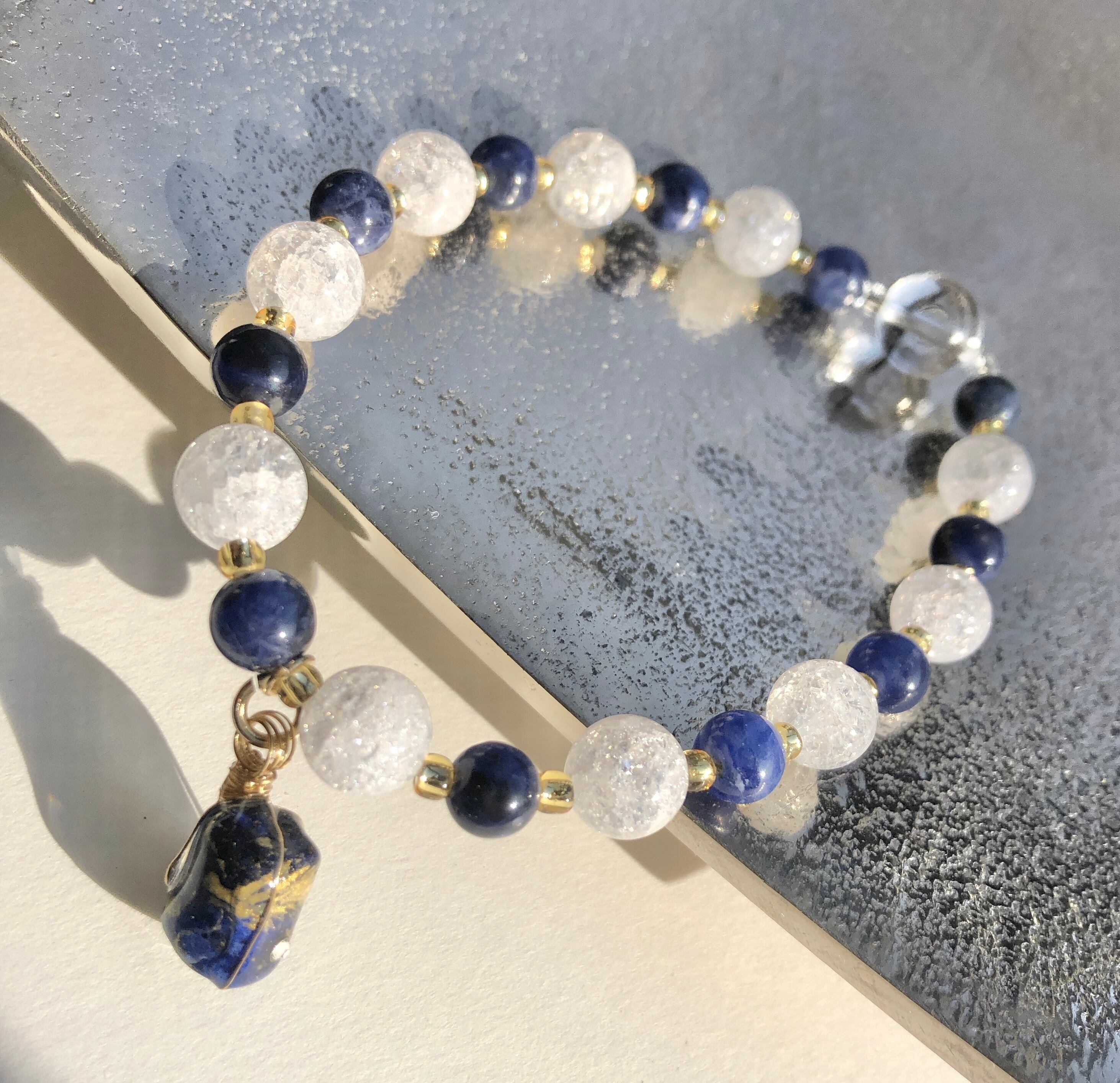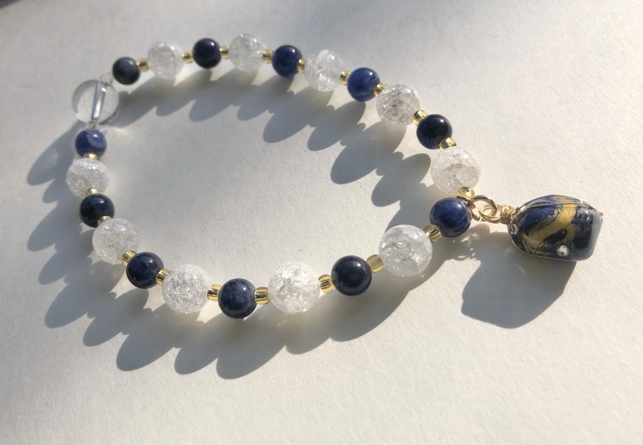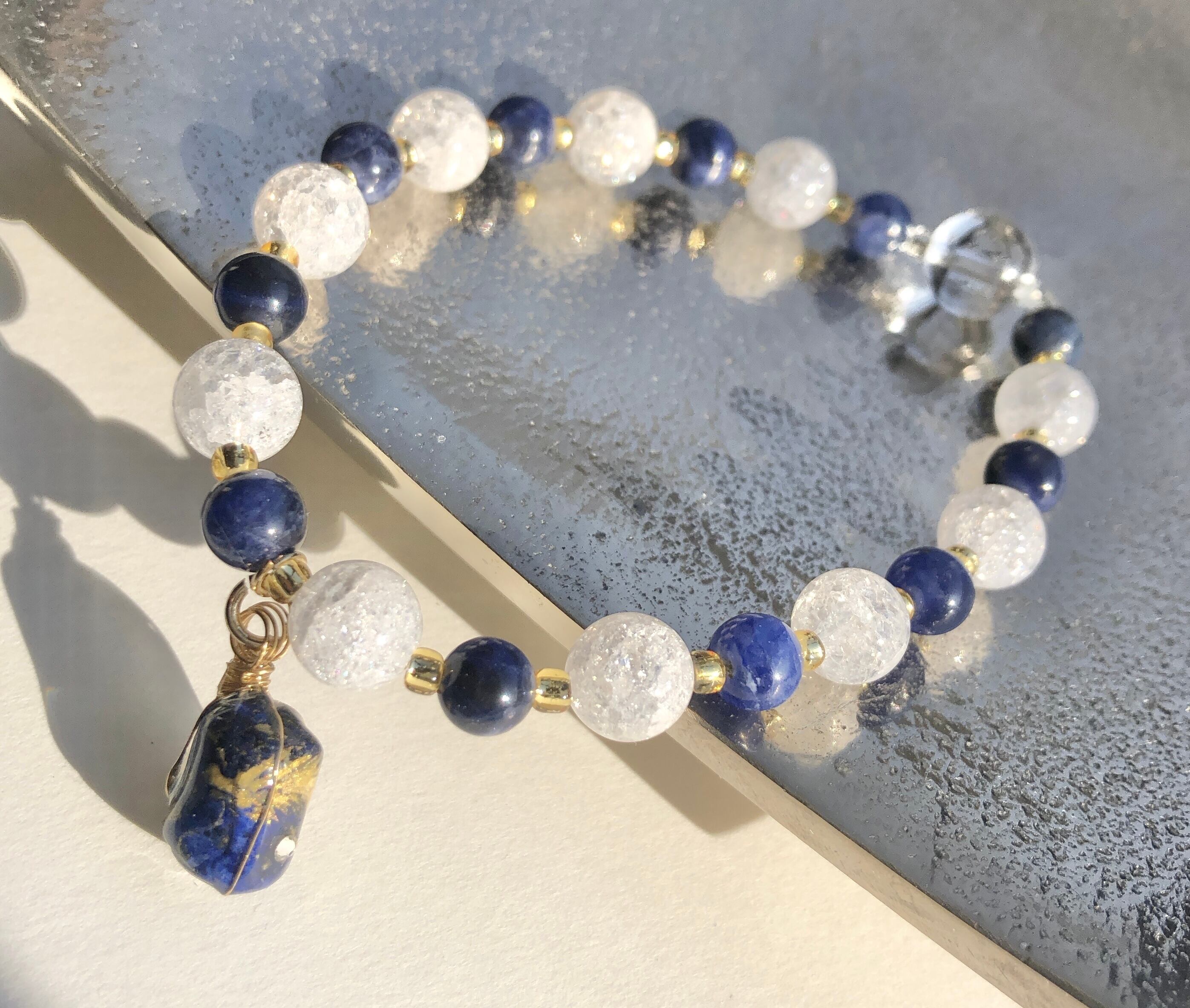 天然石 ラピスラズリ金龍 クラック水晶&ラピスラズリ&水晶ブレスレット