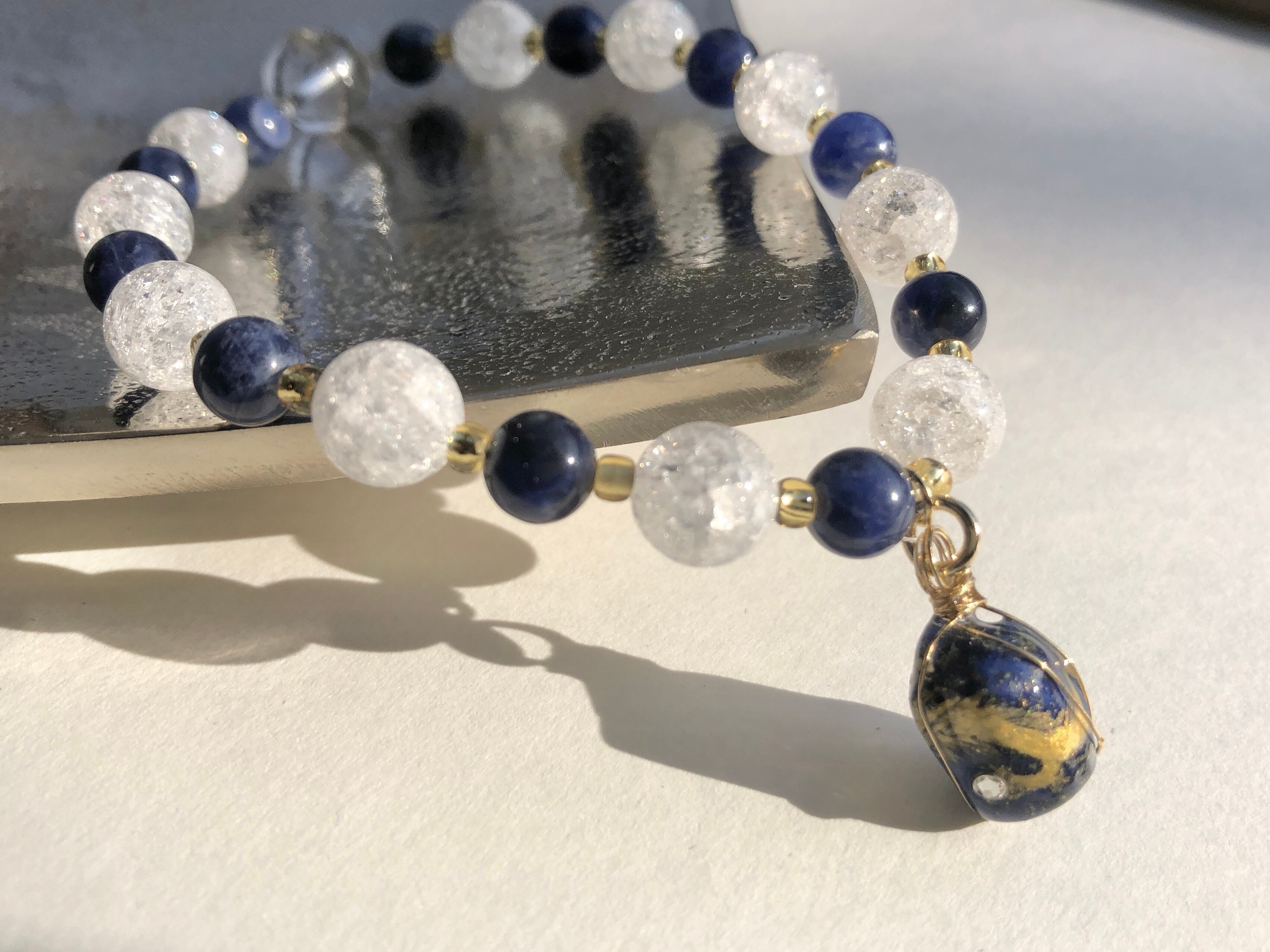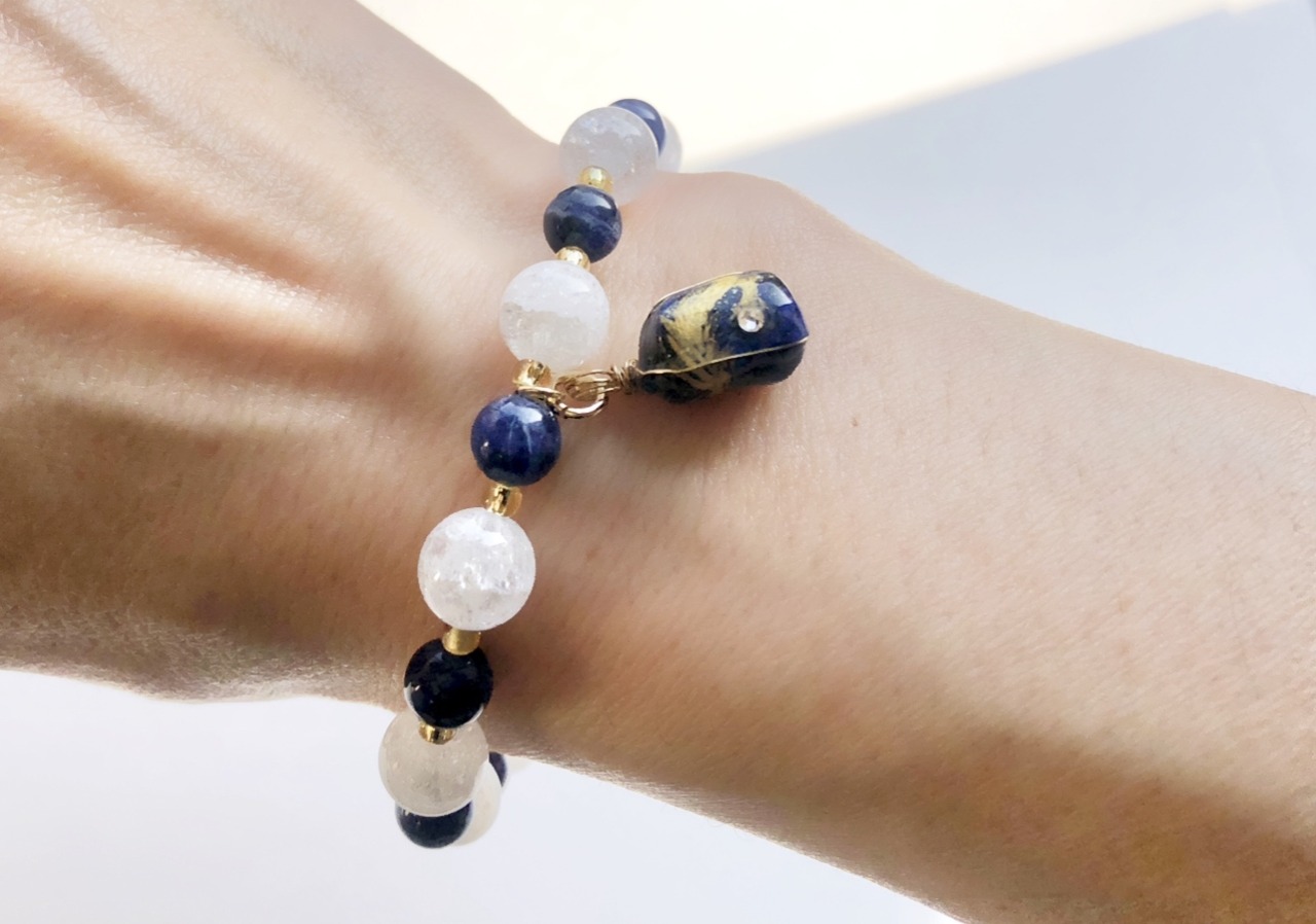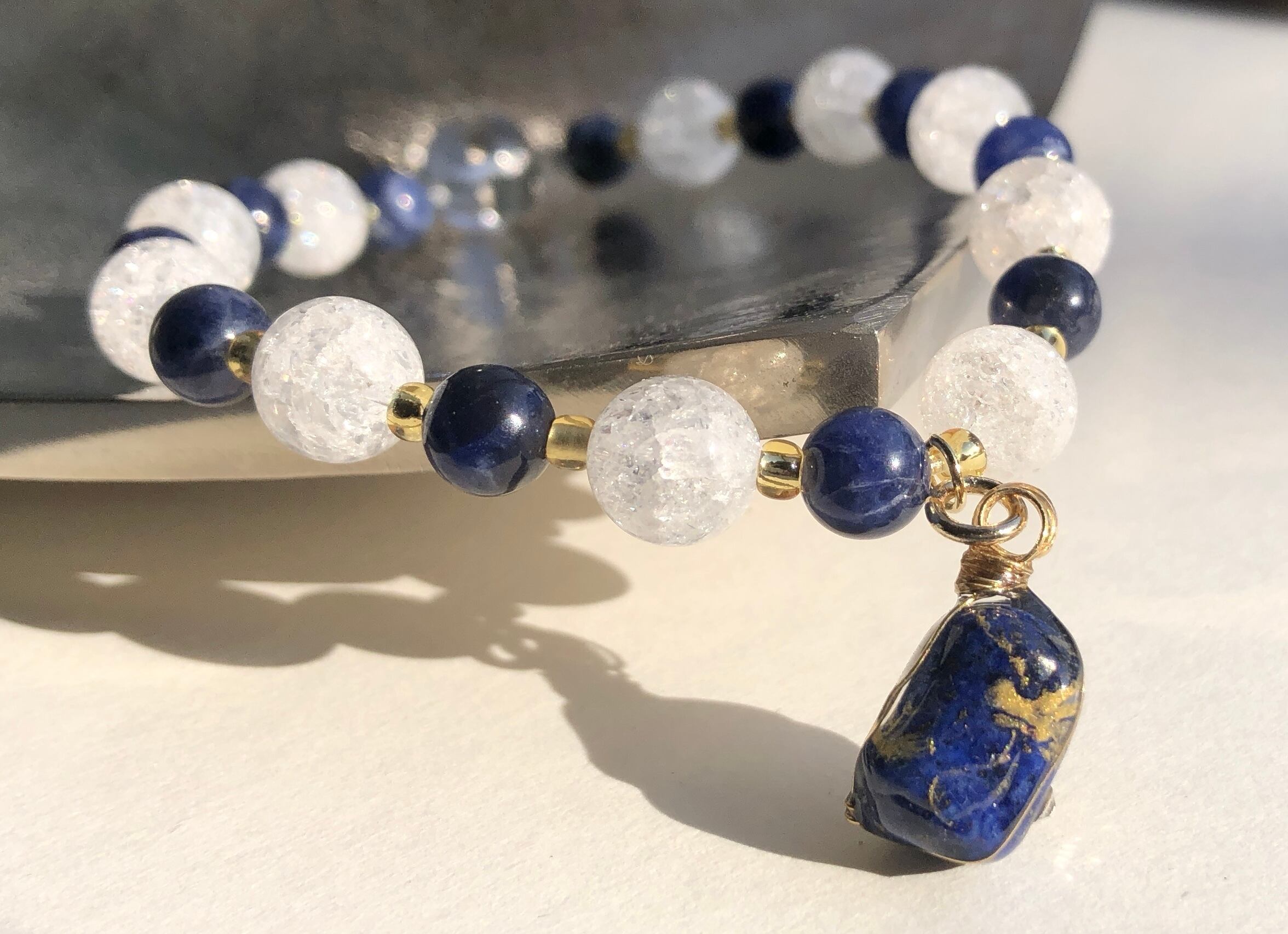 天然石 ラピスラズリ金龍 クラック水晶&ラピスラズリ&水晶ブレスレット