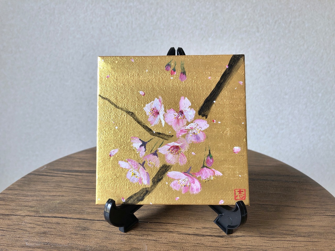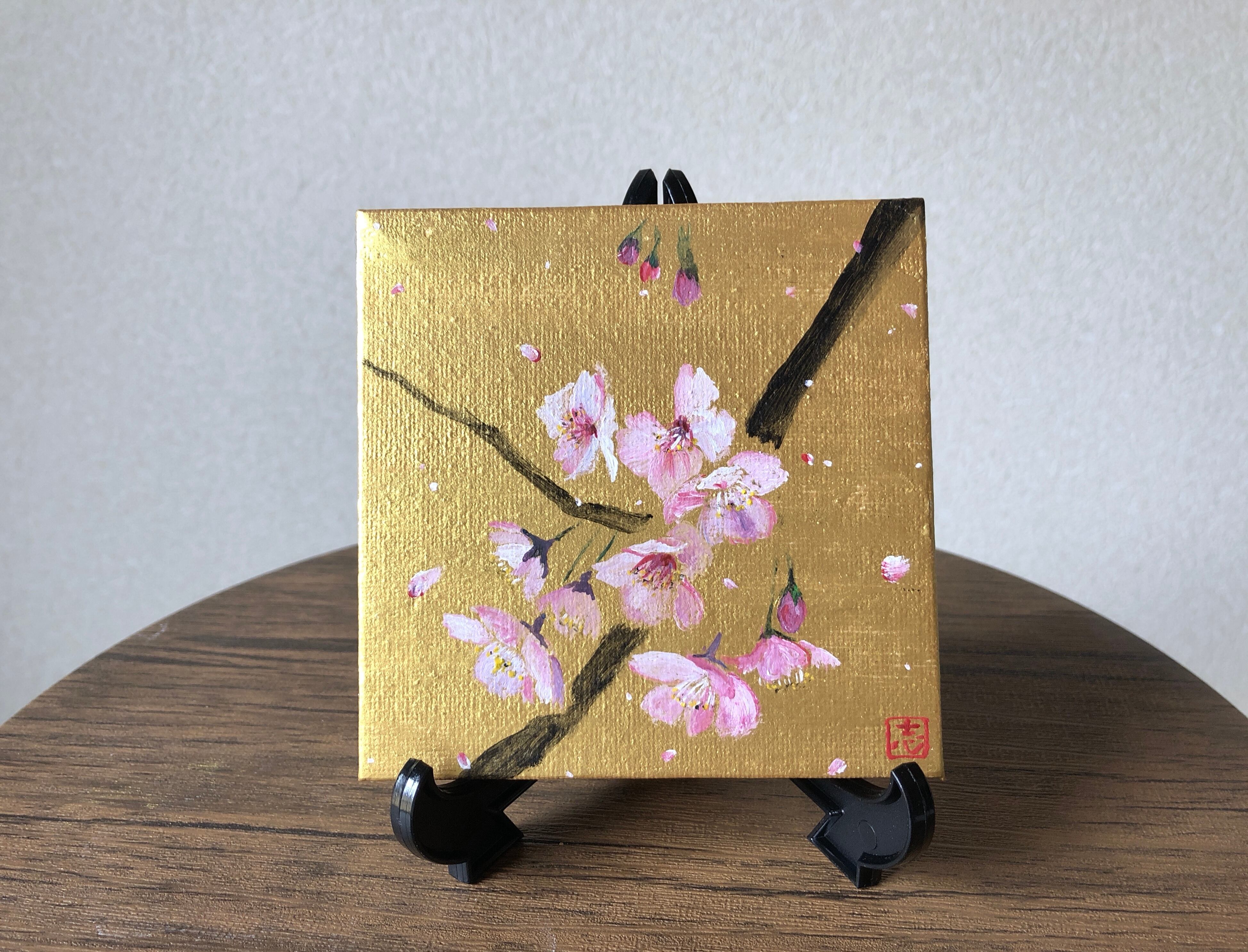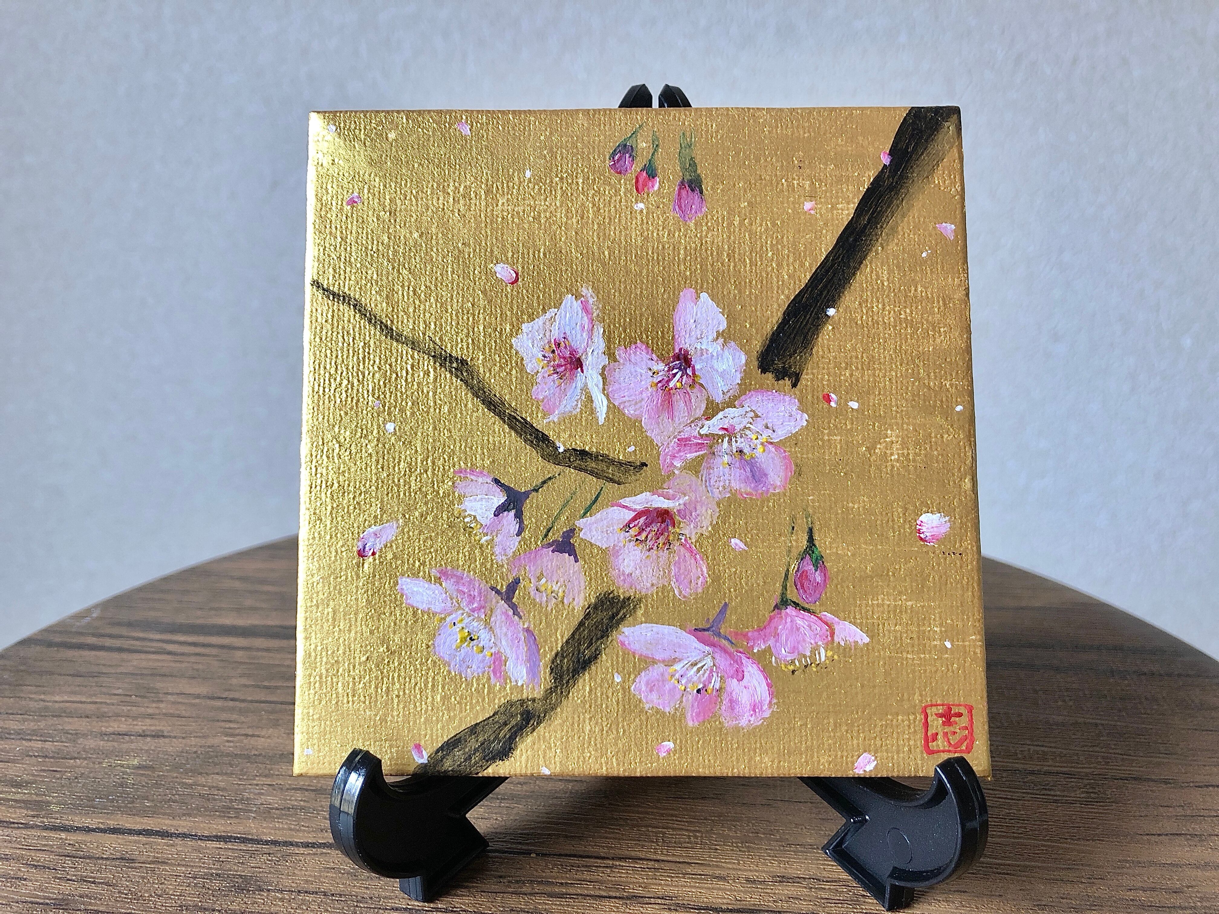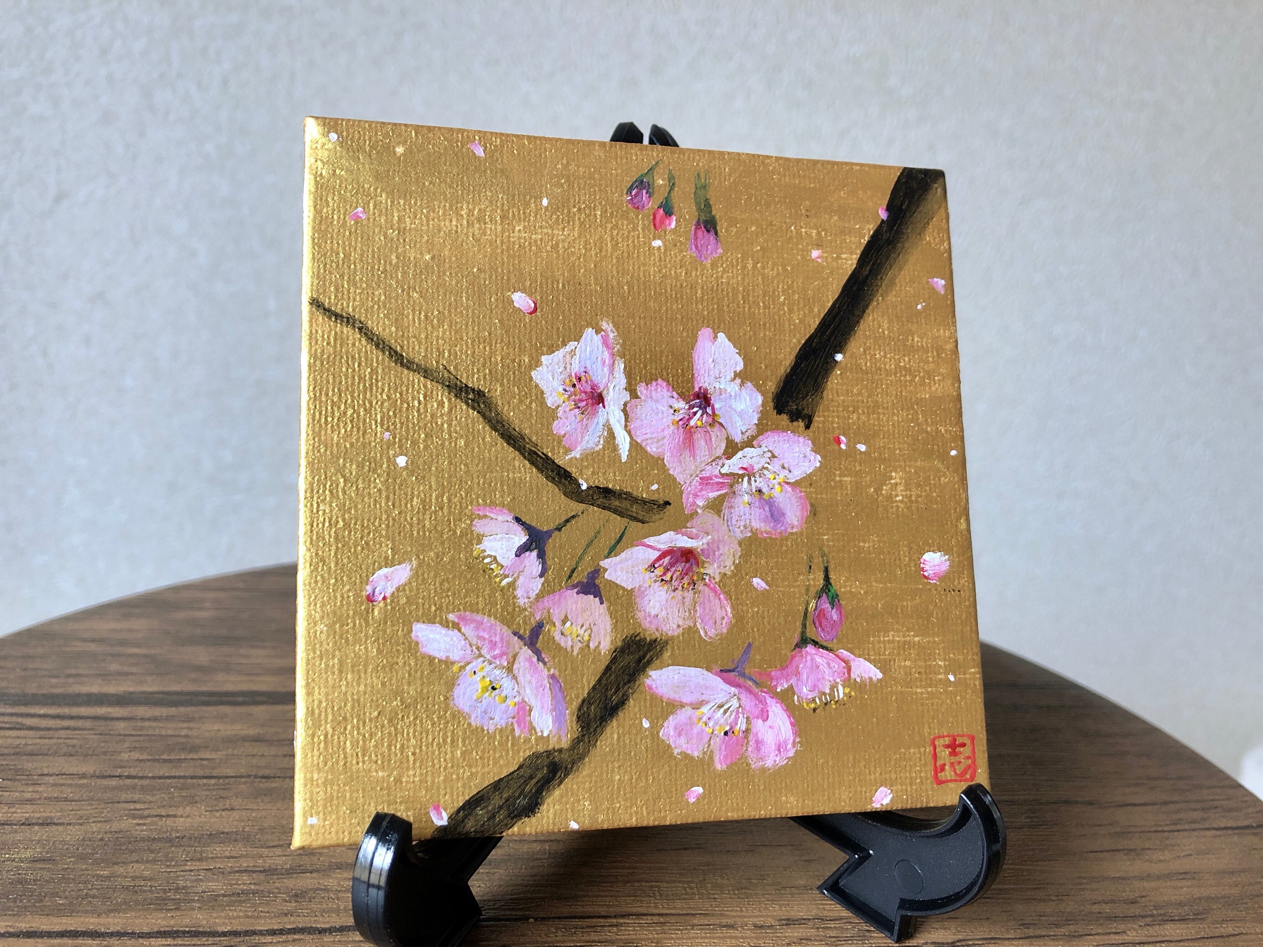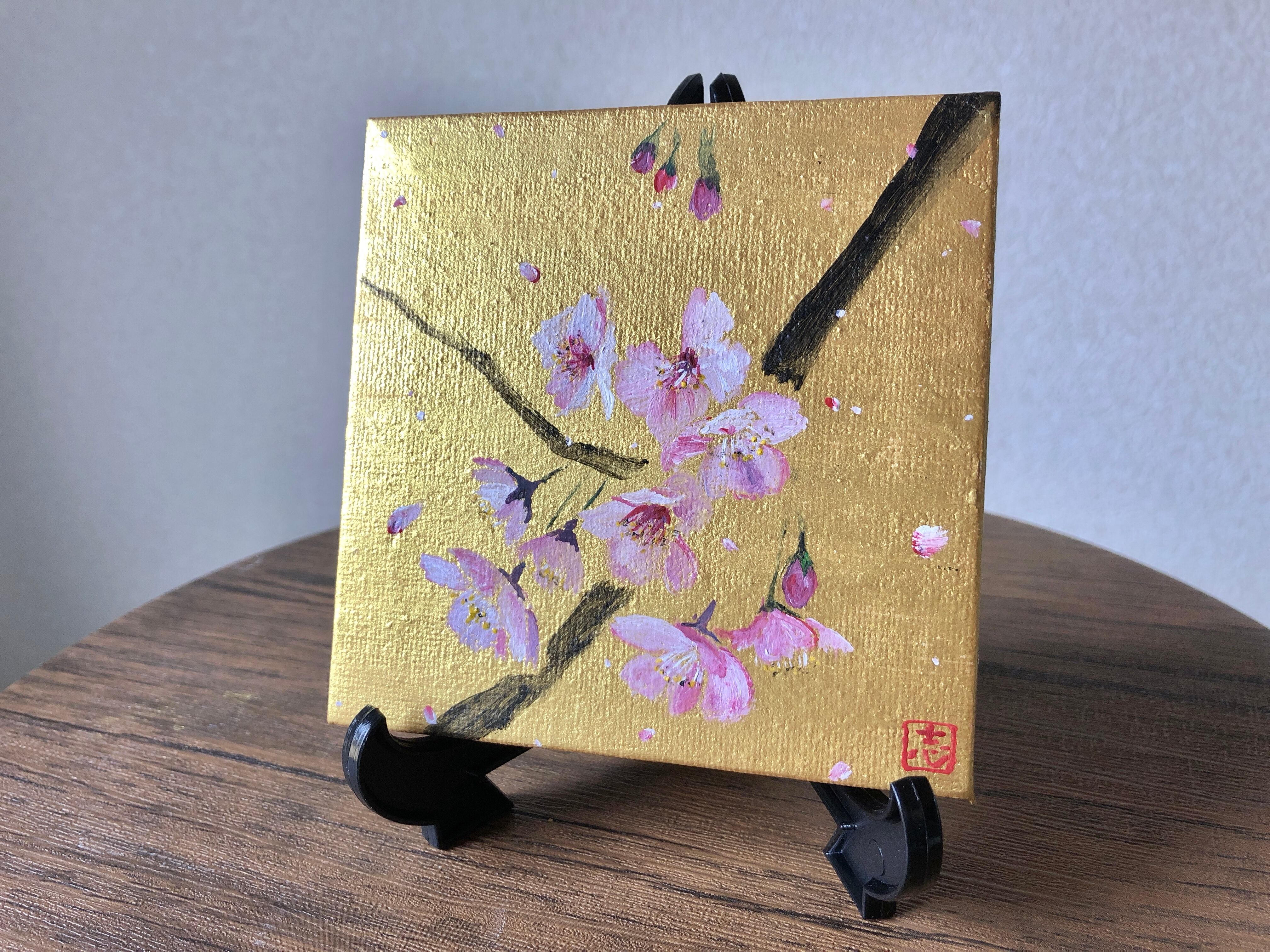 金と桜 ミニチュアキャンバス No.2
