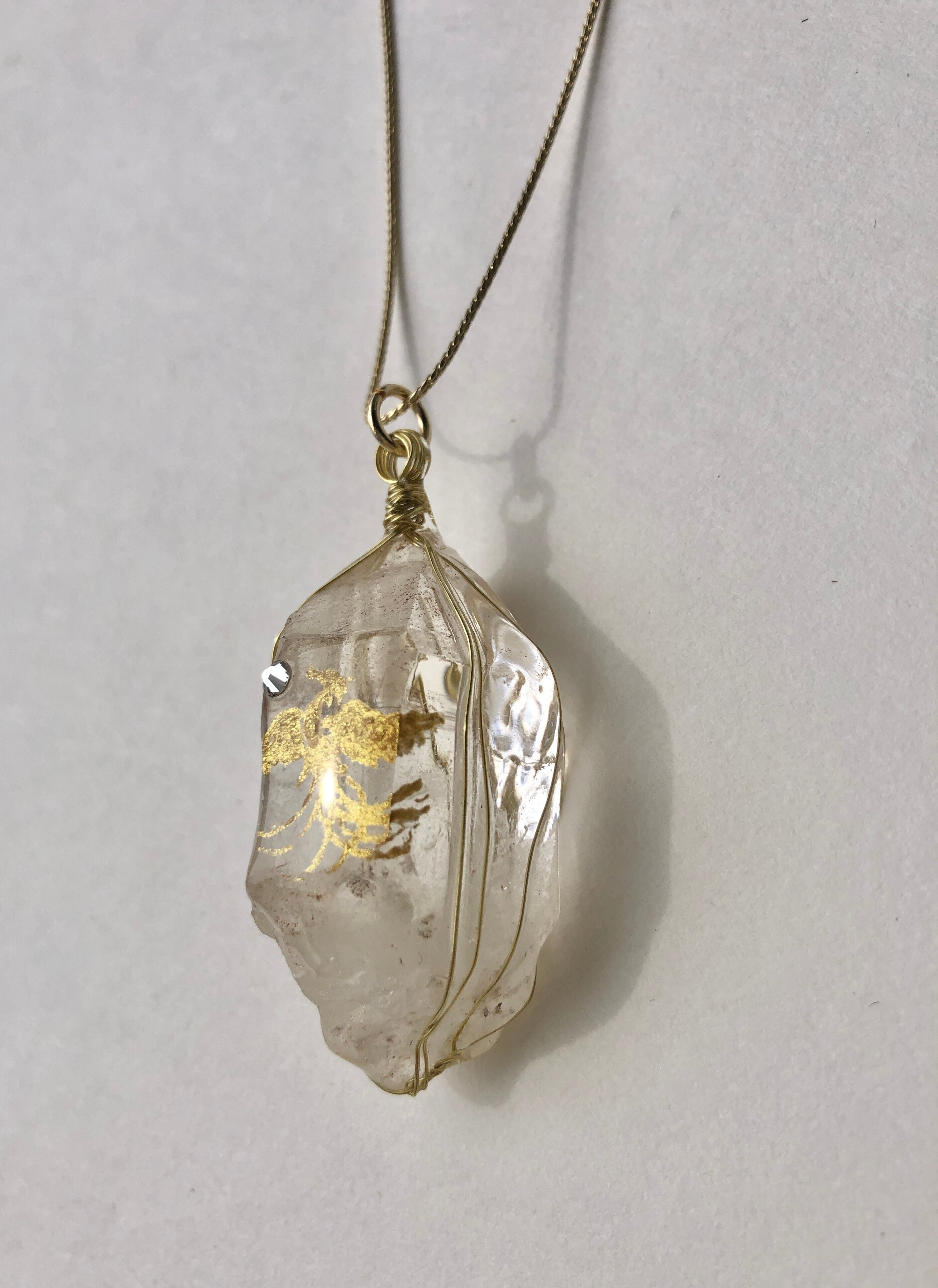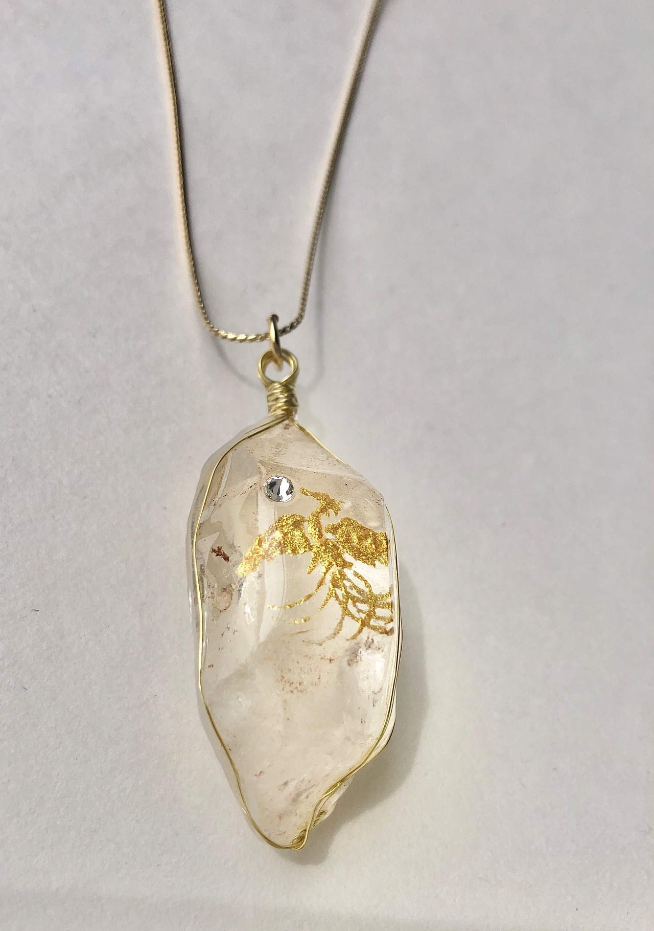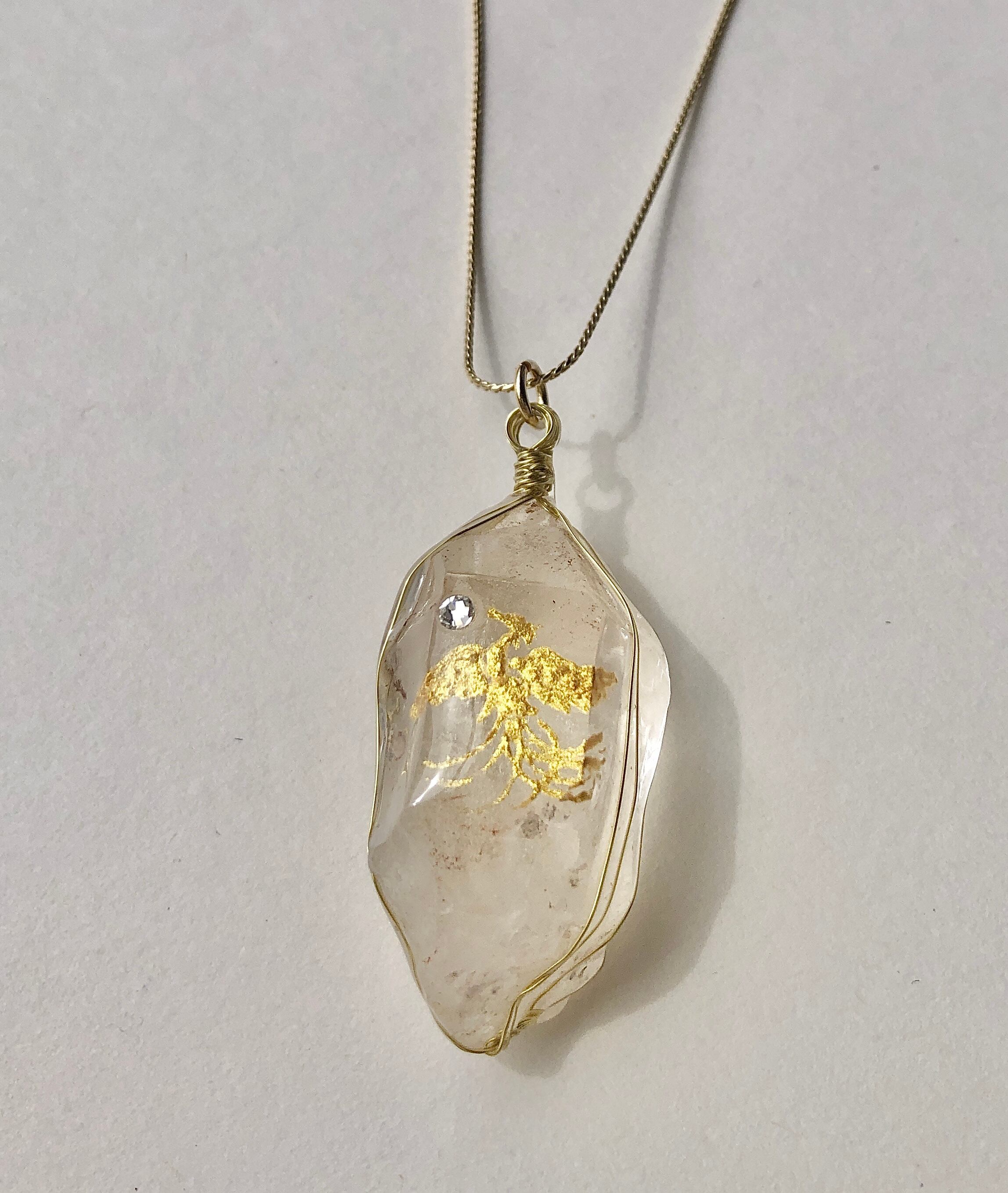 天然石 ヒマラヤ水晶原石 金の鳳凰ネックレス