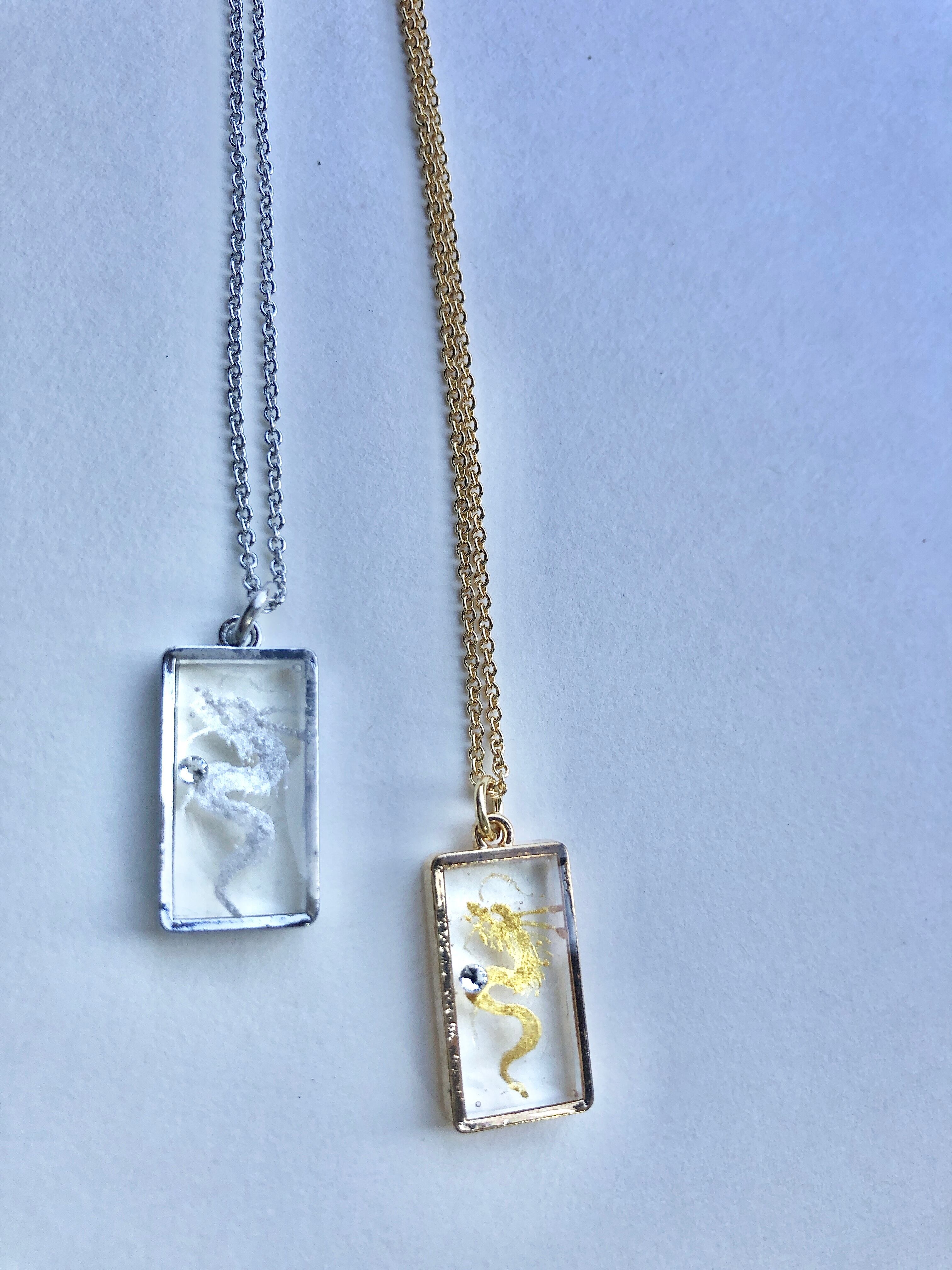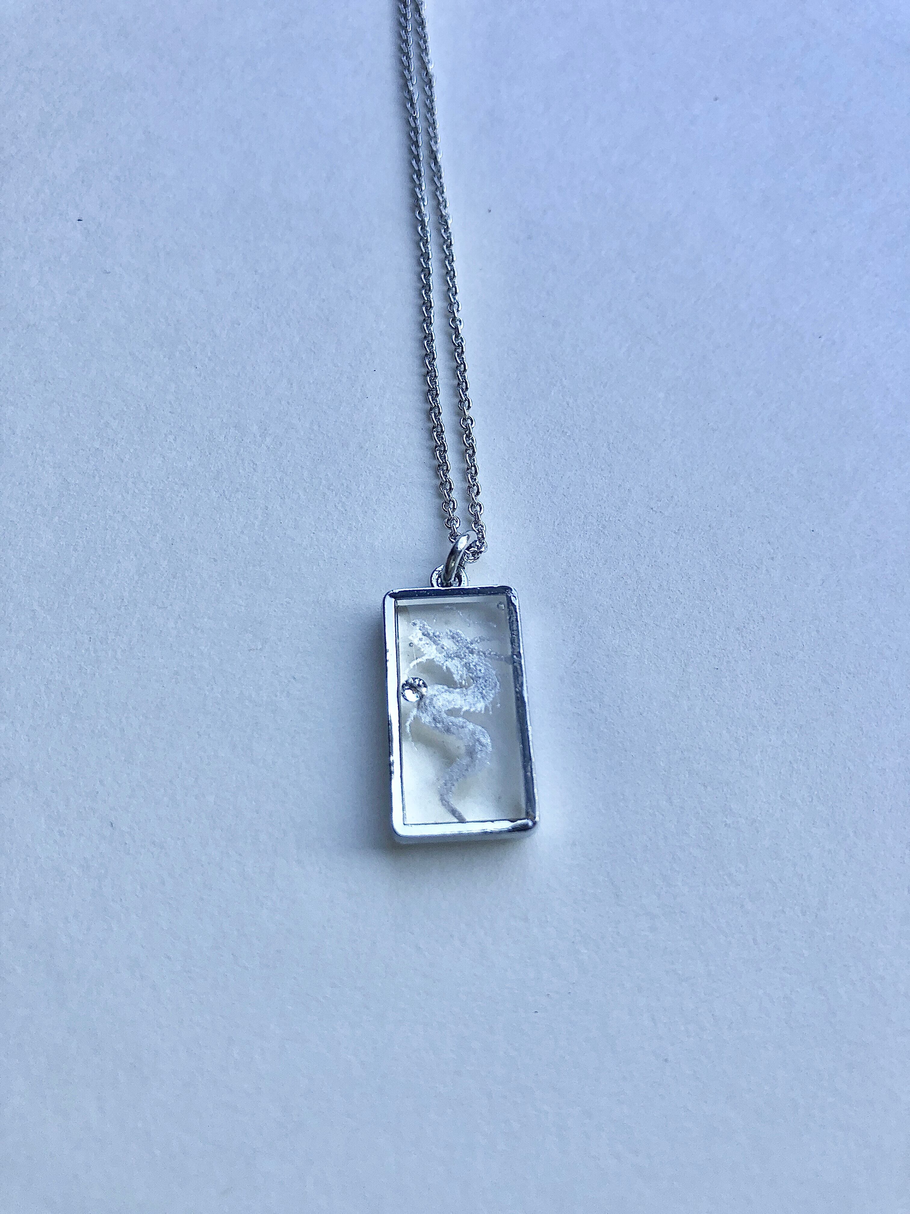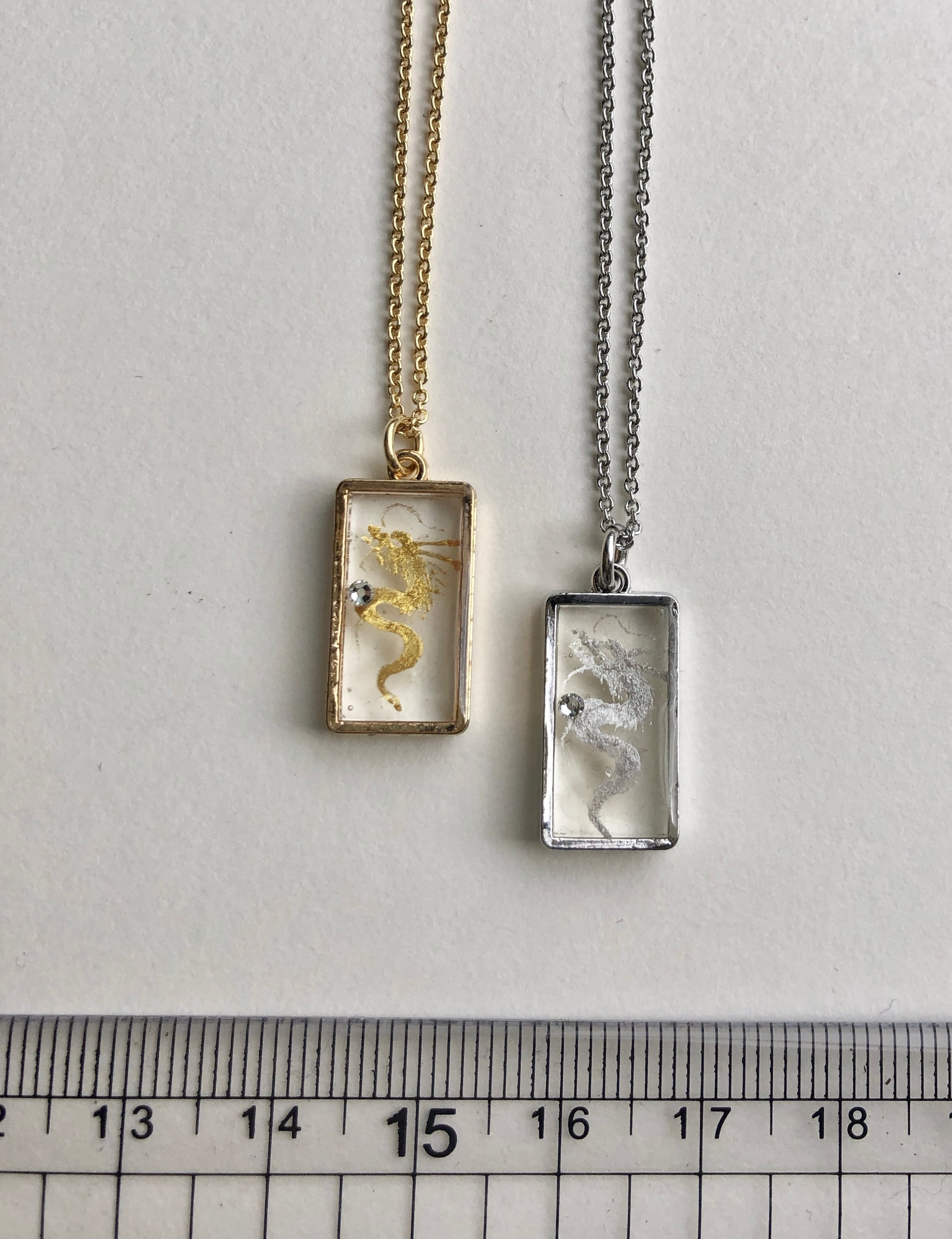 (55)水晶を入れたレジンの中に描いた銀龍。