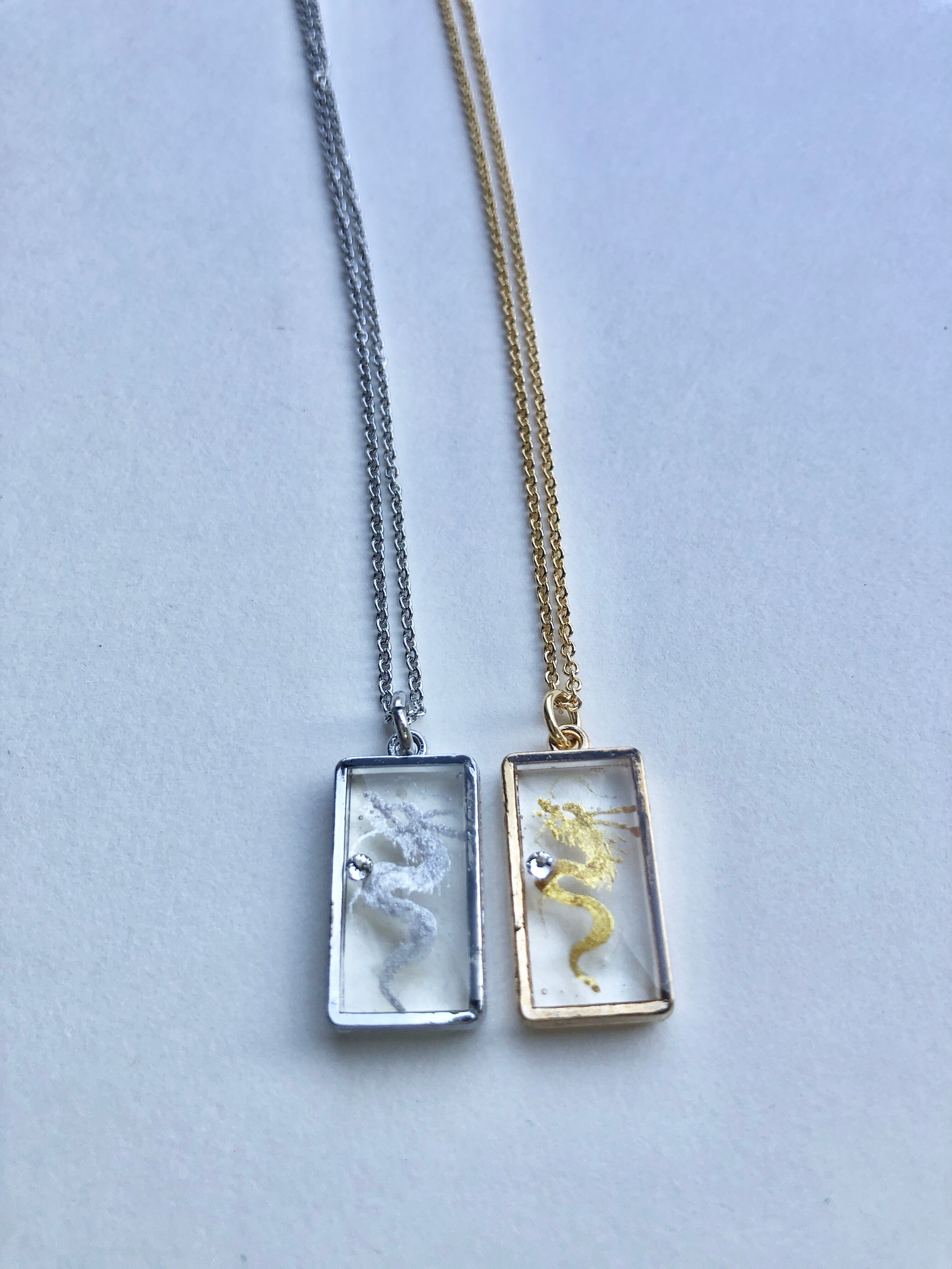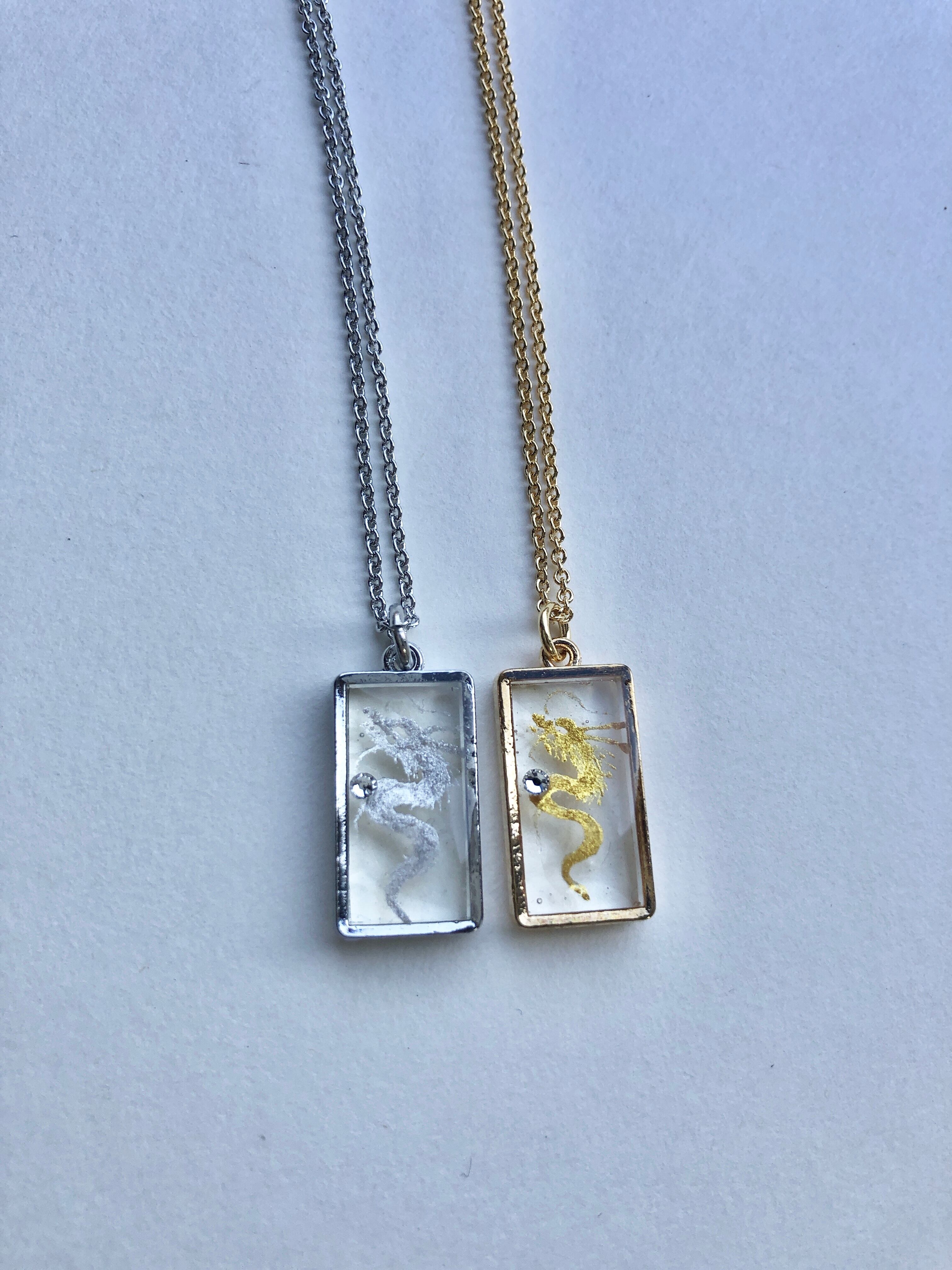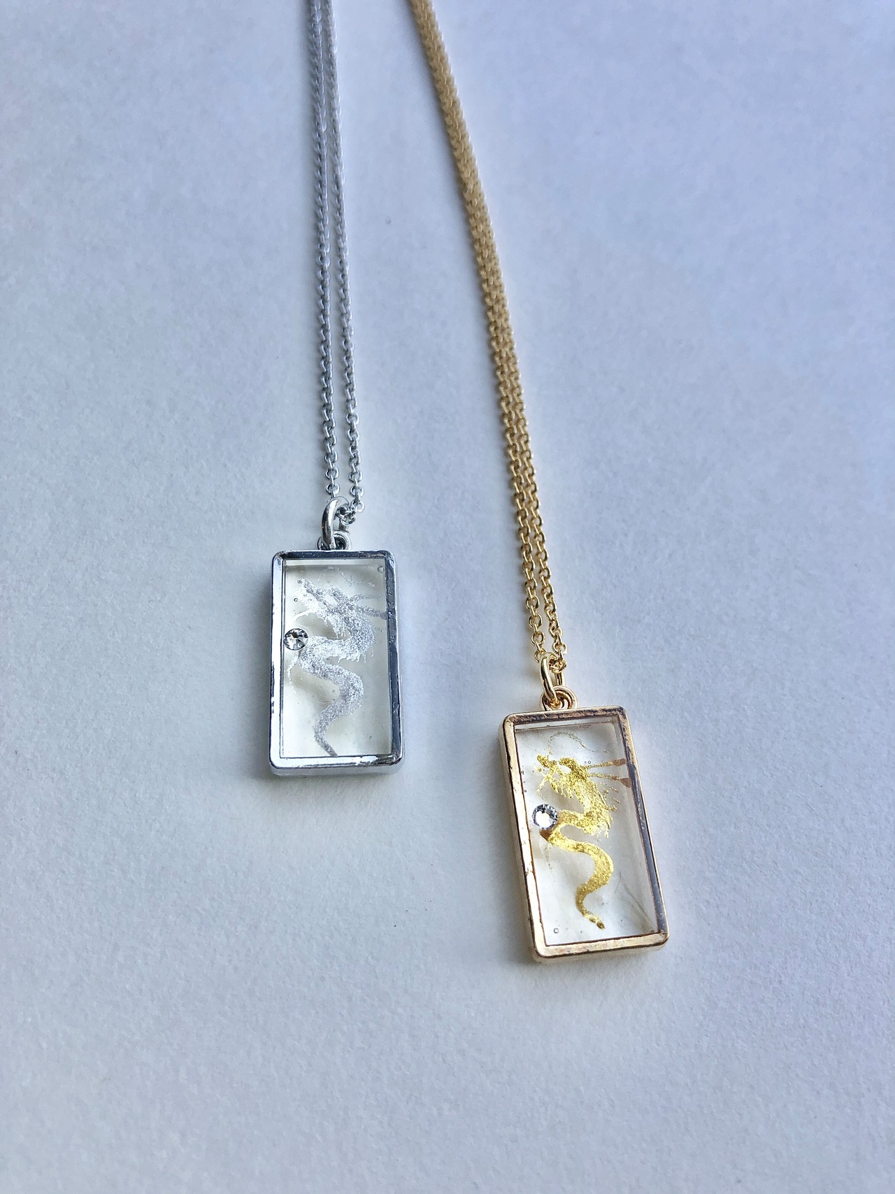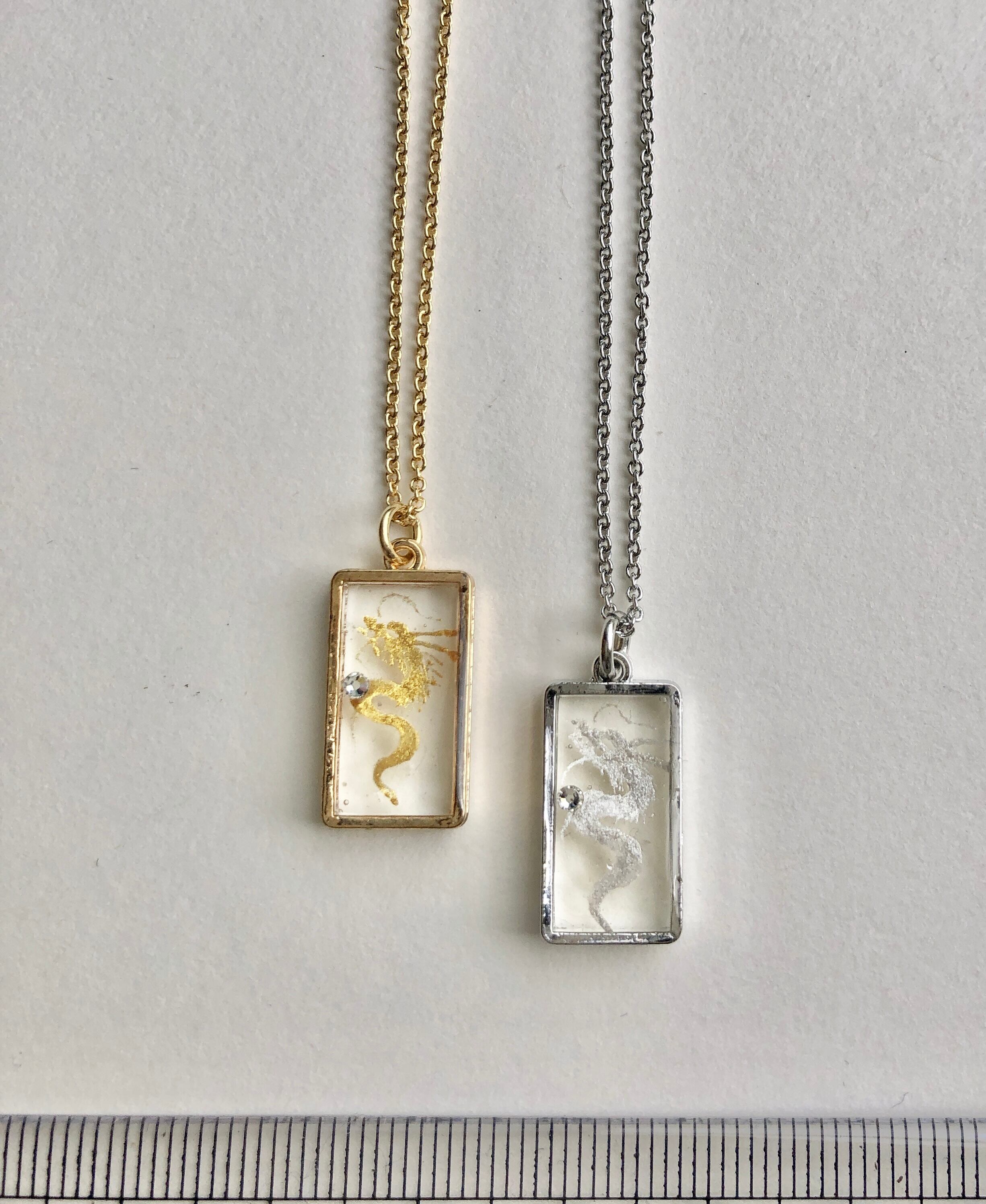 (55)水晶を入れたレジンの中に描いた銀龍。