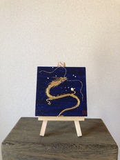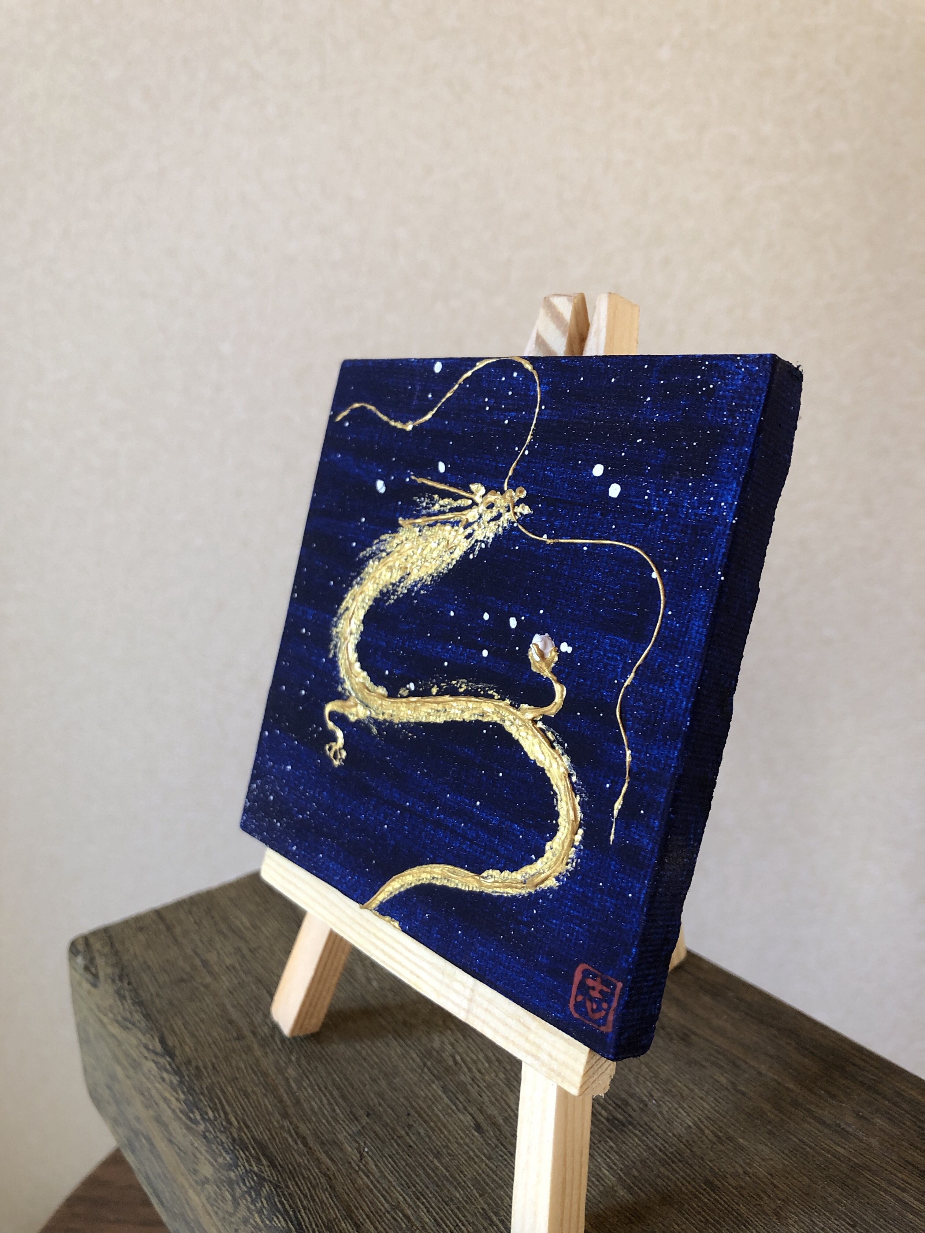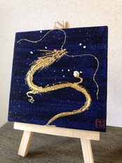 ミニキャンバス 宇宙の中の金龍 半立体 右向き