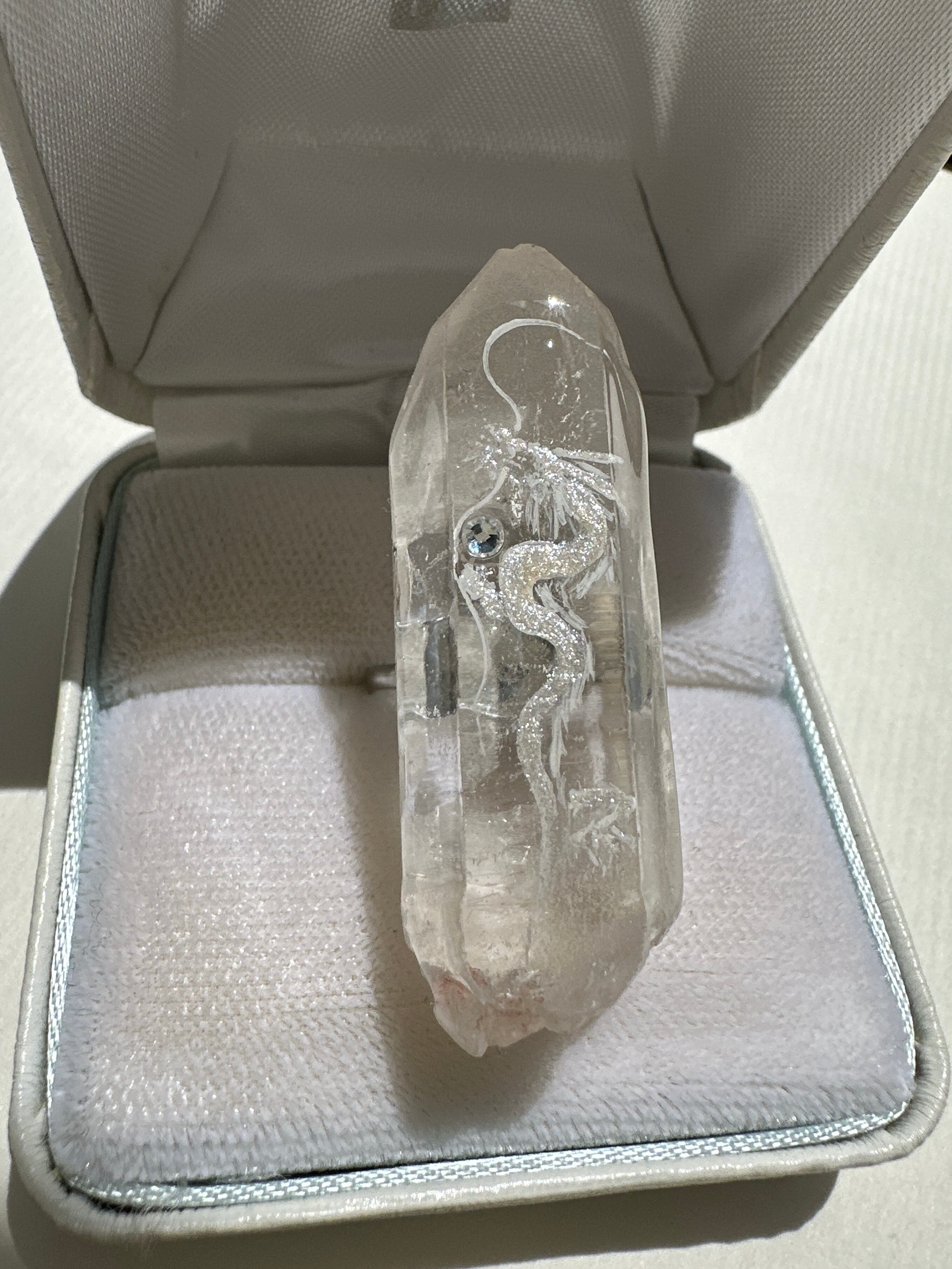 煌めく白銀龍の宝珠はスワロフスキーの石で輝きます。