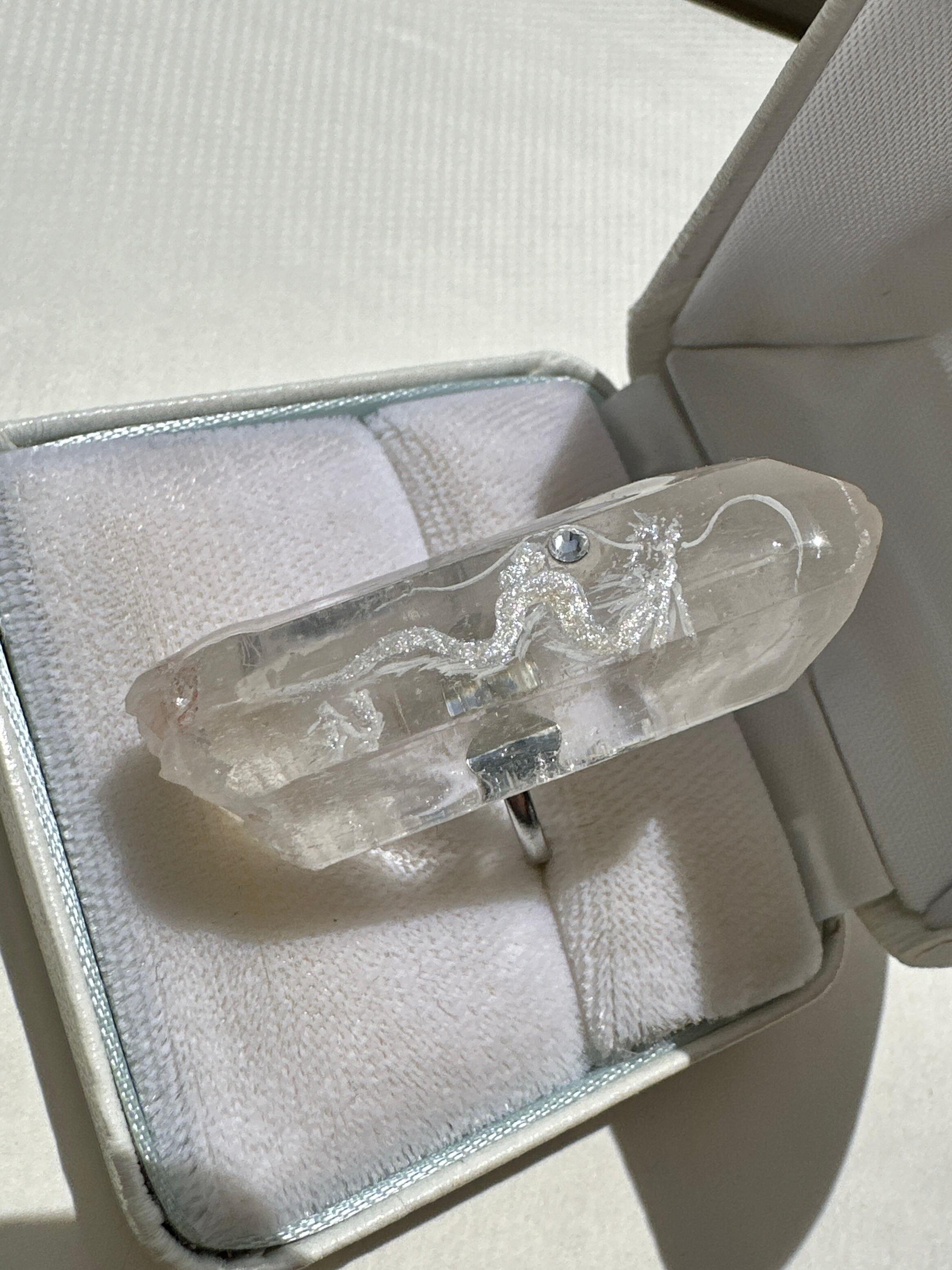 天然石 ヒマラヤ水晶原石 大 白銀龍指輪