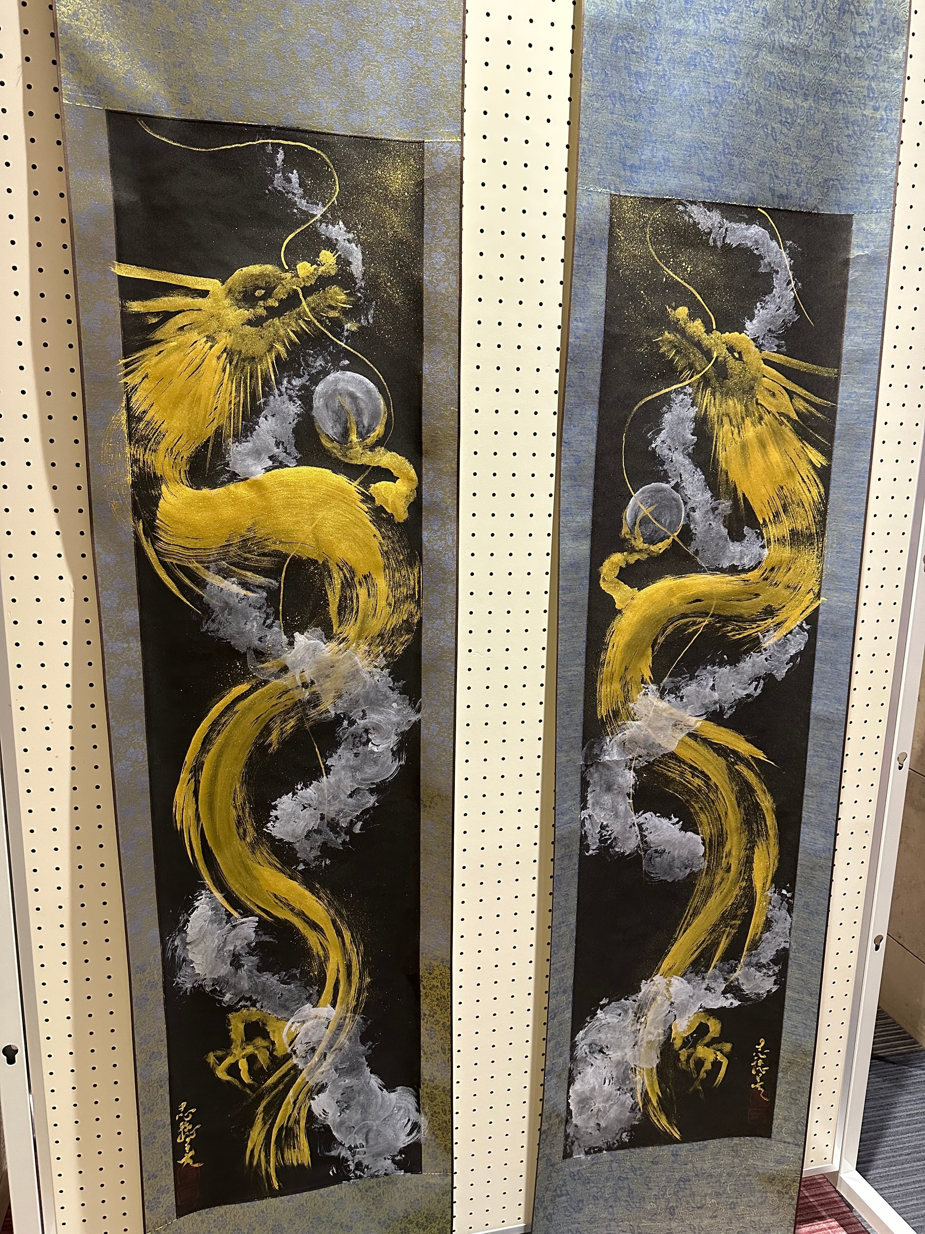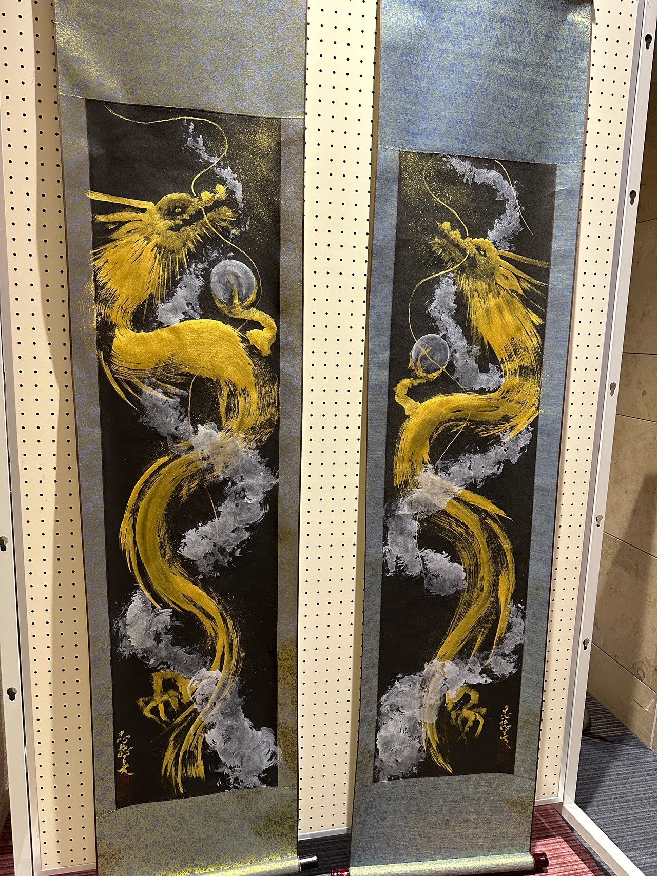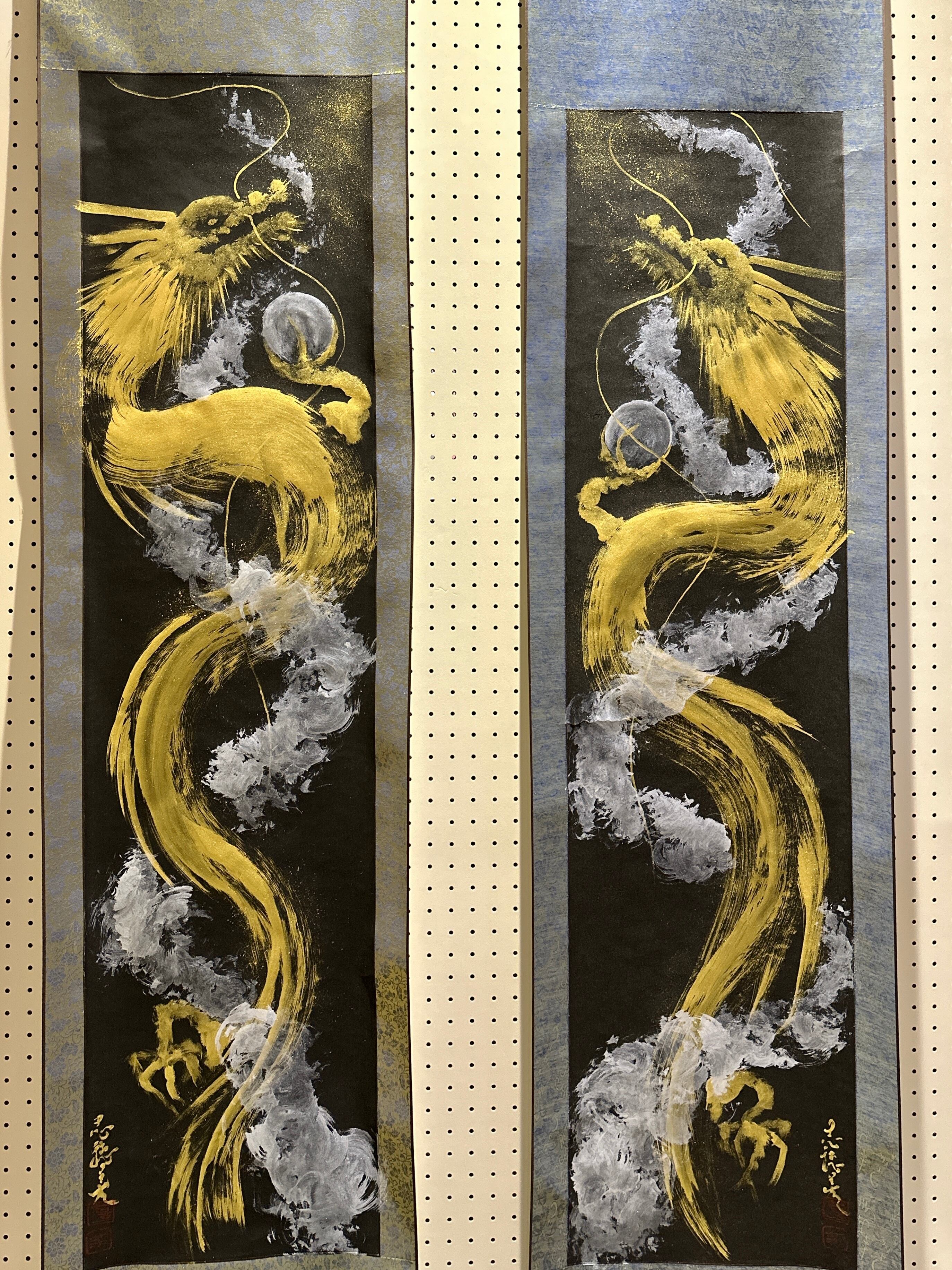 日本橋の地でライブで描いた双龍の掛け軸、2本セット。
