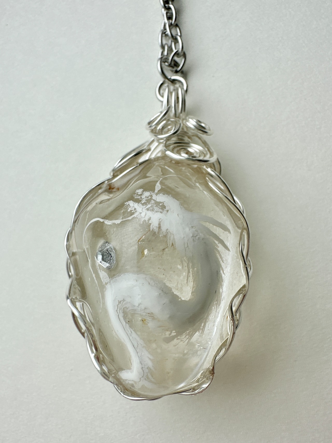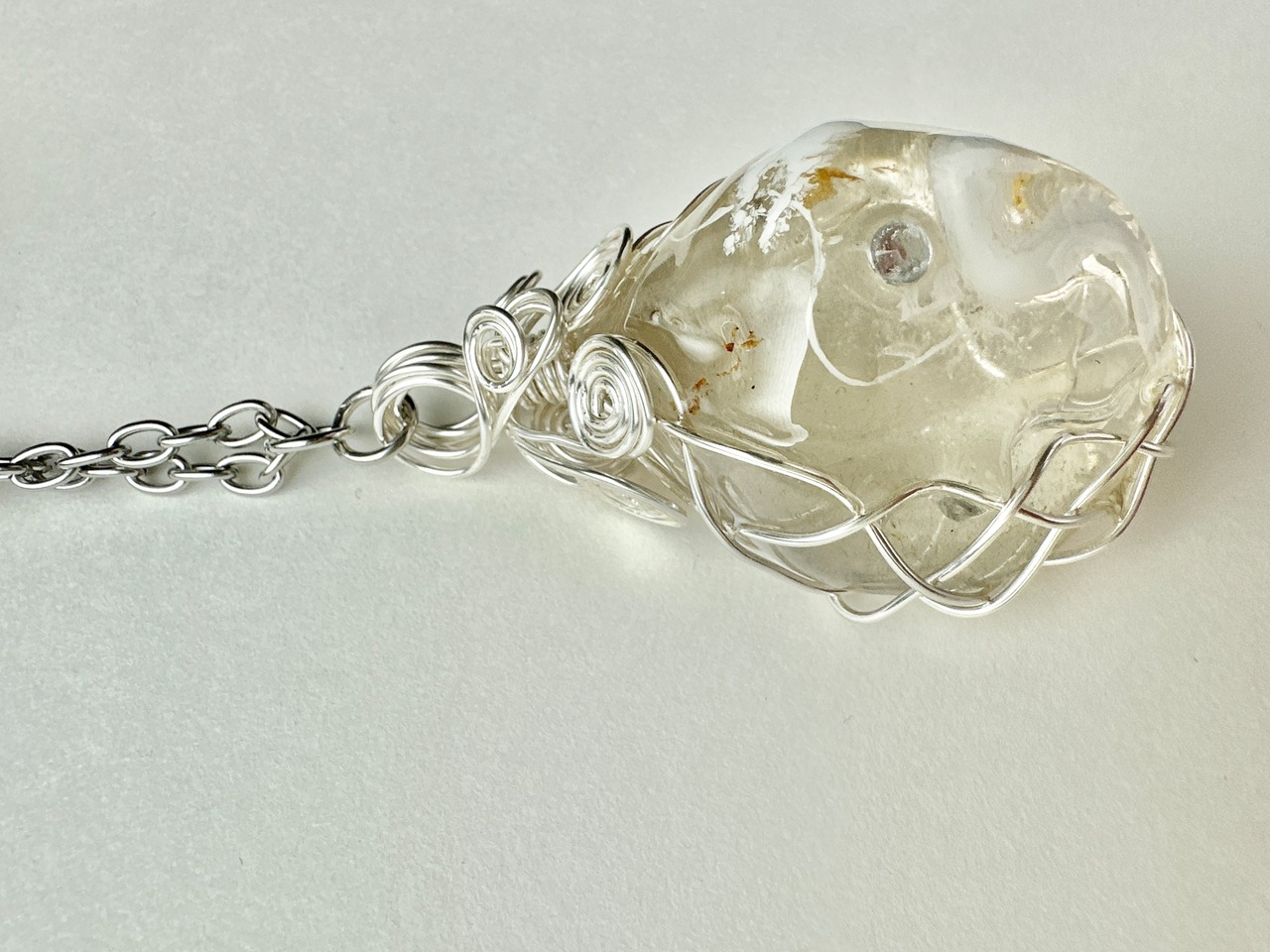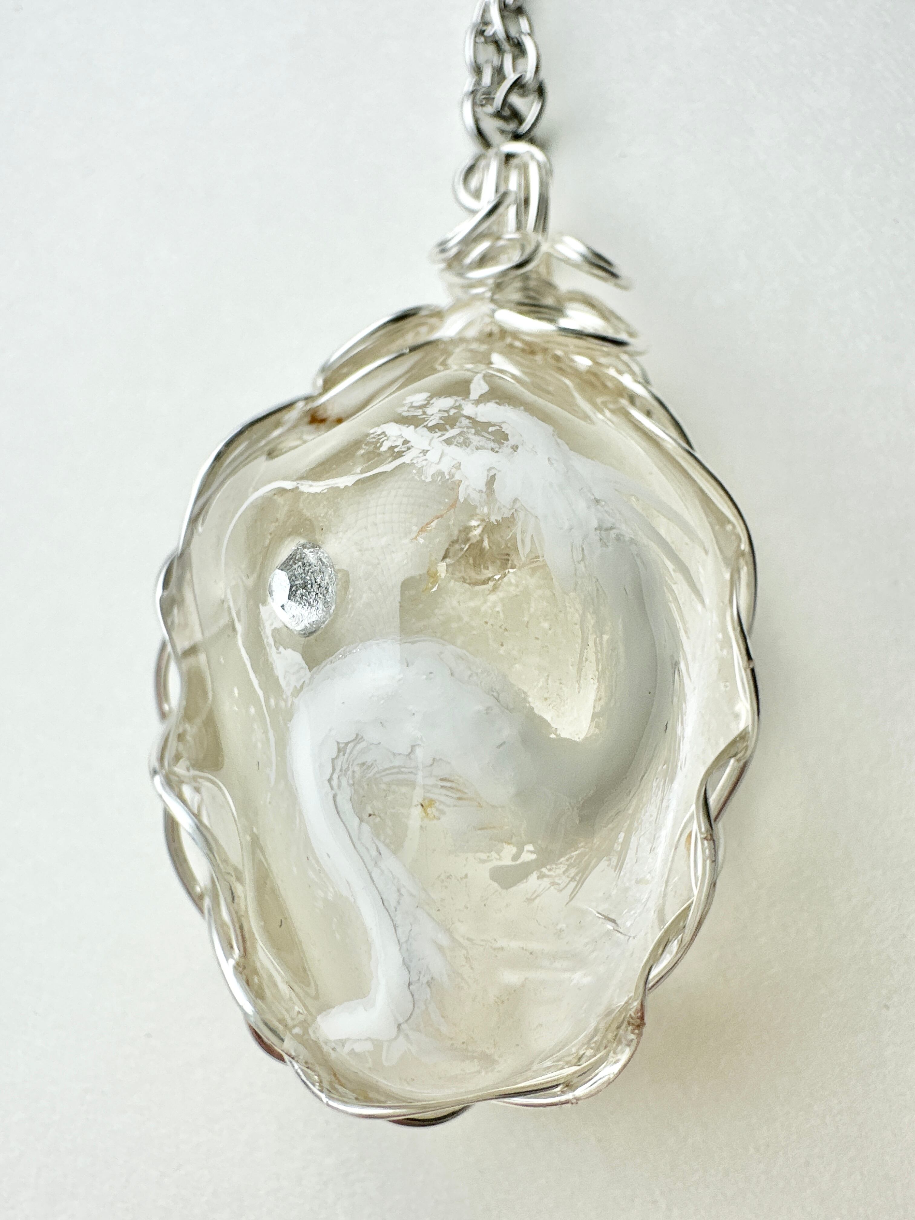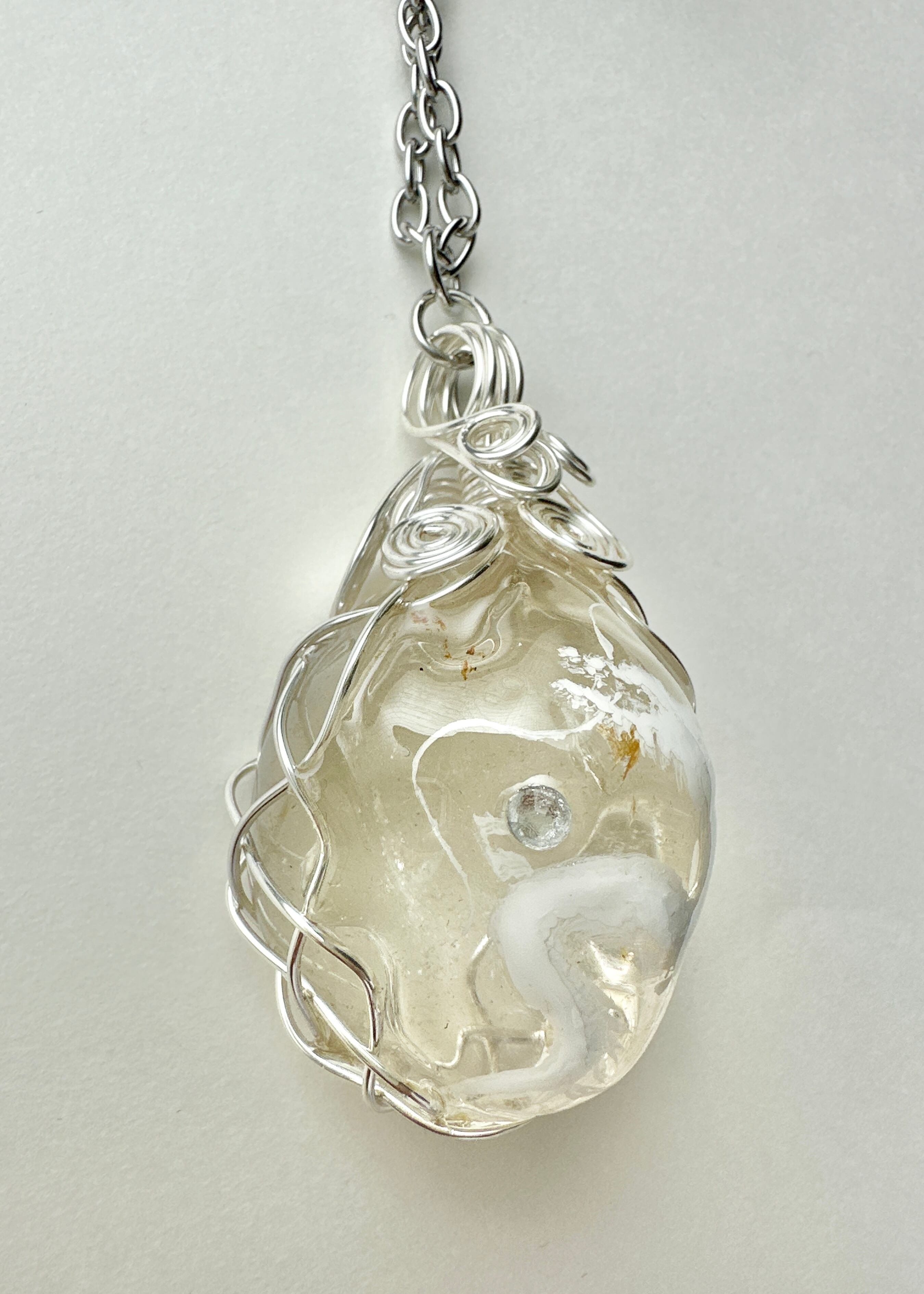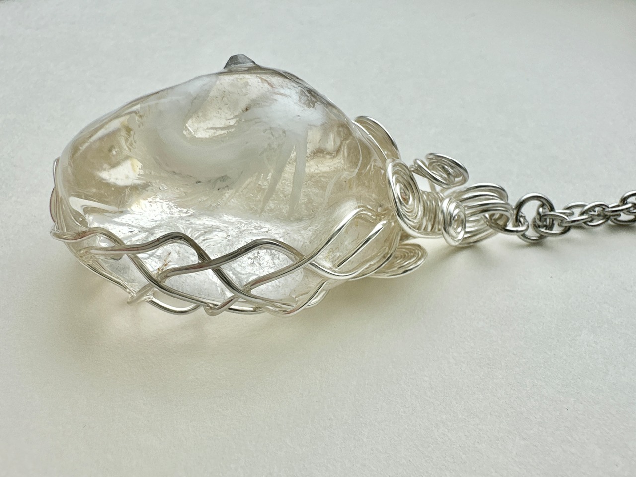 特大水晶 天然石 白龍ネックレス ワイヤーラッピング