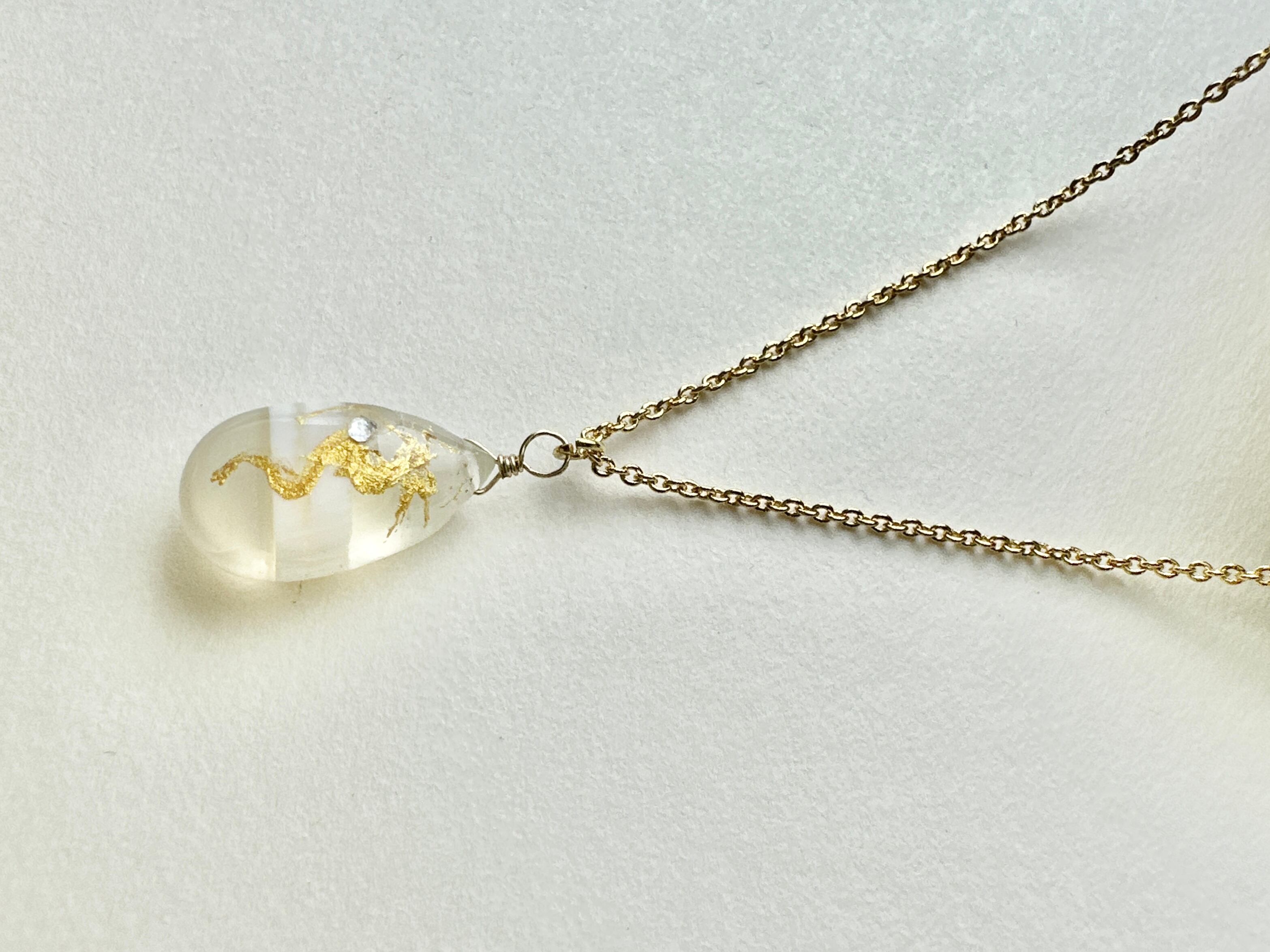 天然石 ホワイトレースオパール 金龍ネックレス。